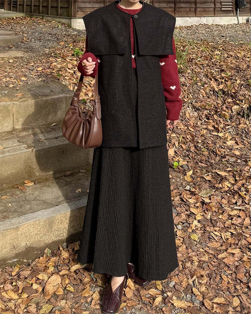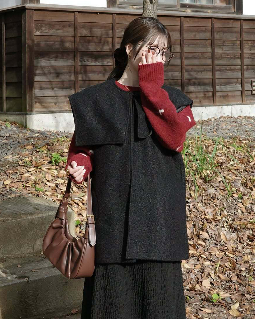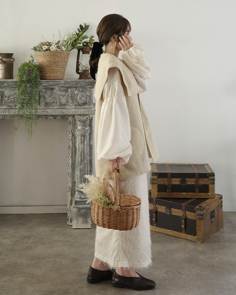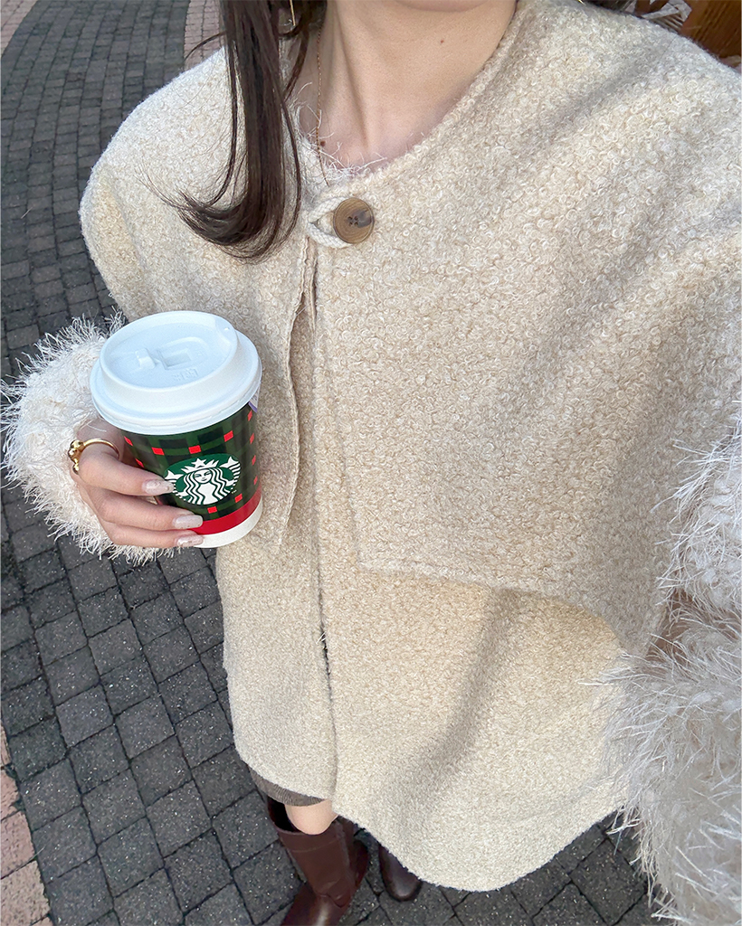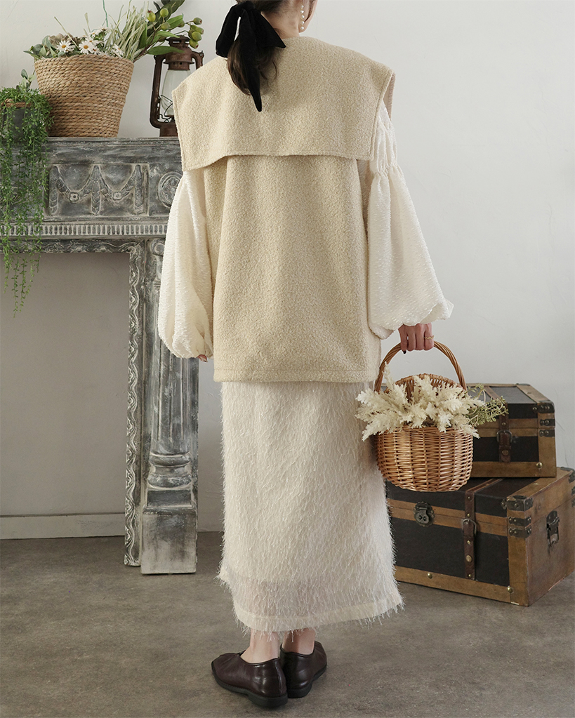 [3回再販](ORIGINAL) ヘアリーウェーブケープボタンベスト