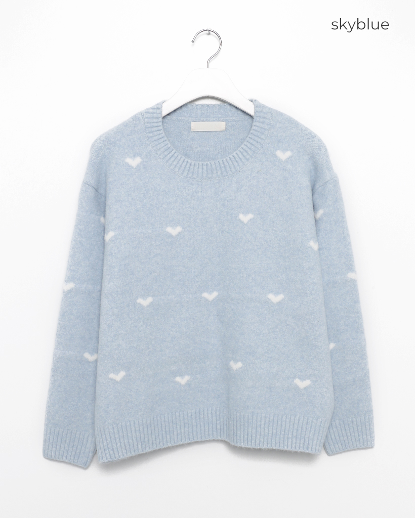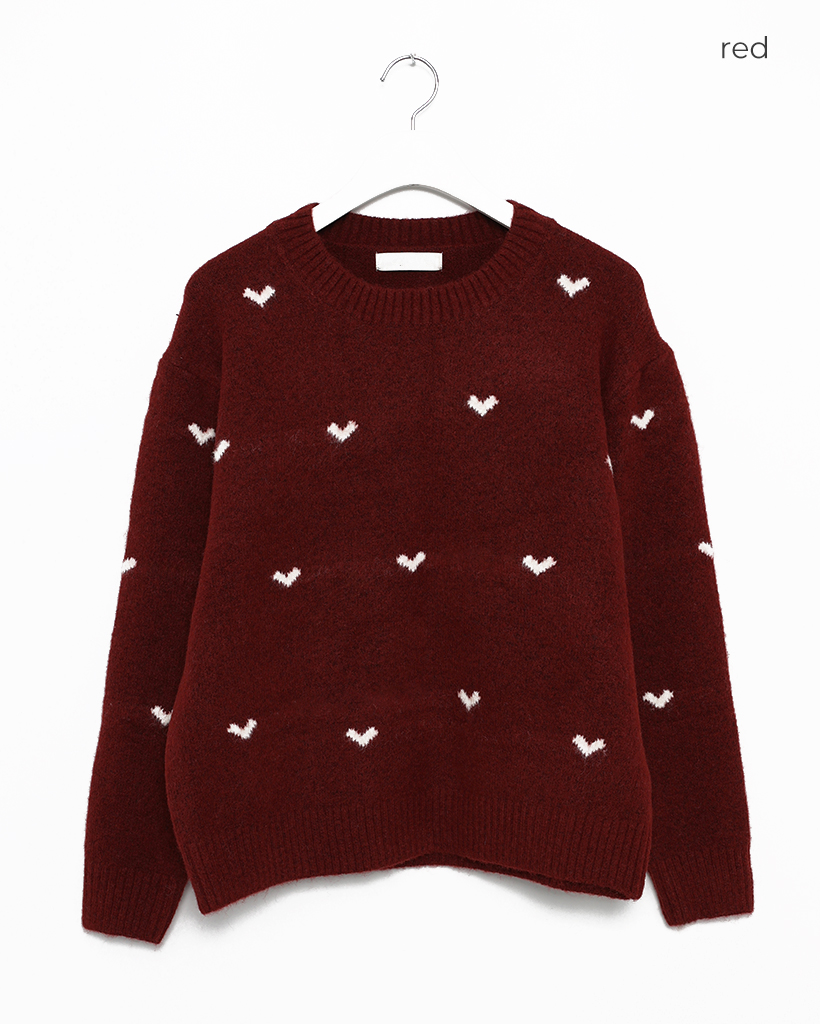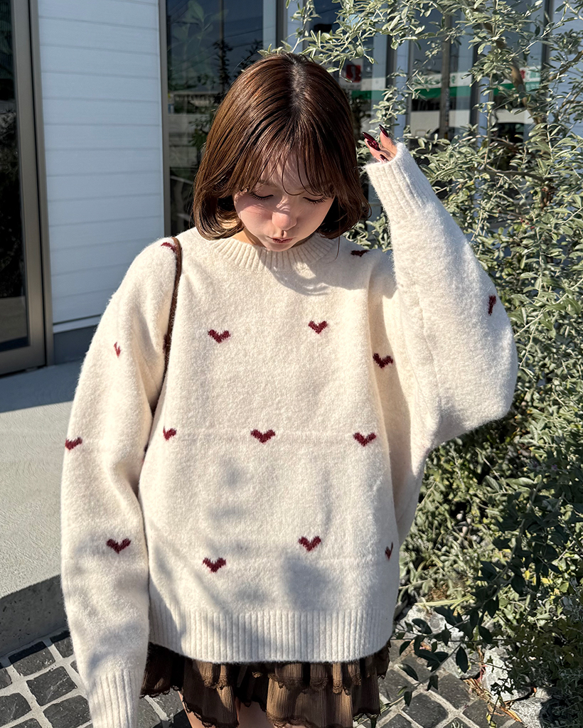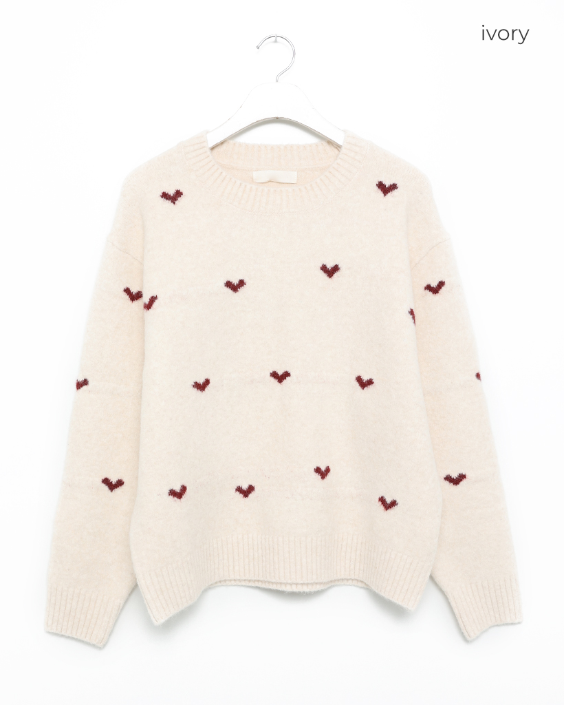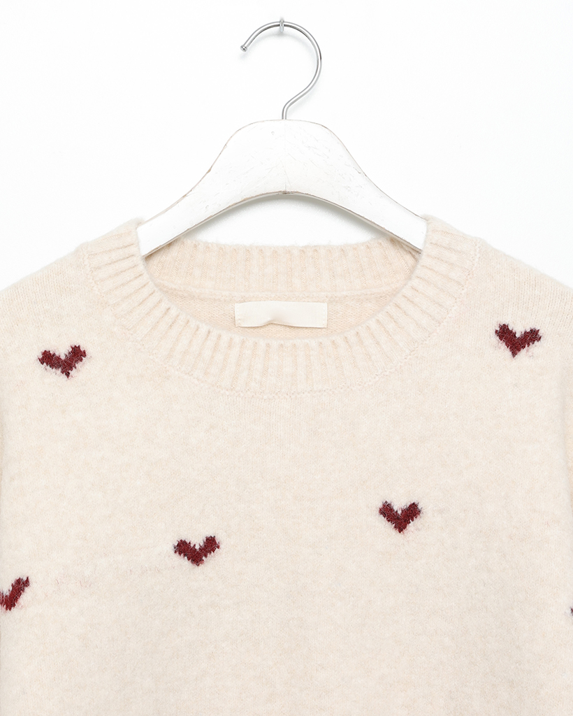 ハートパターンラウンドネックニットセーター