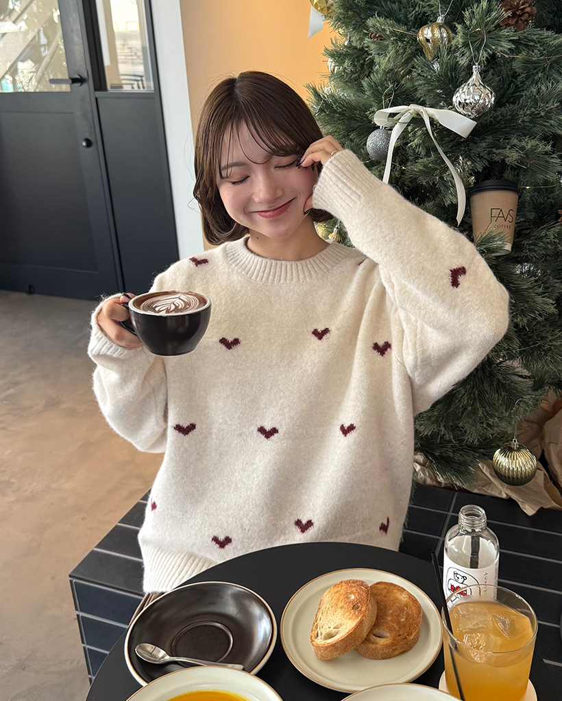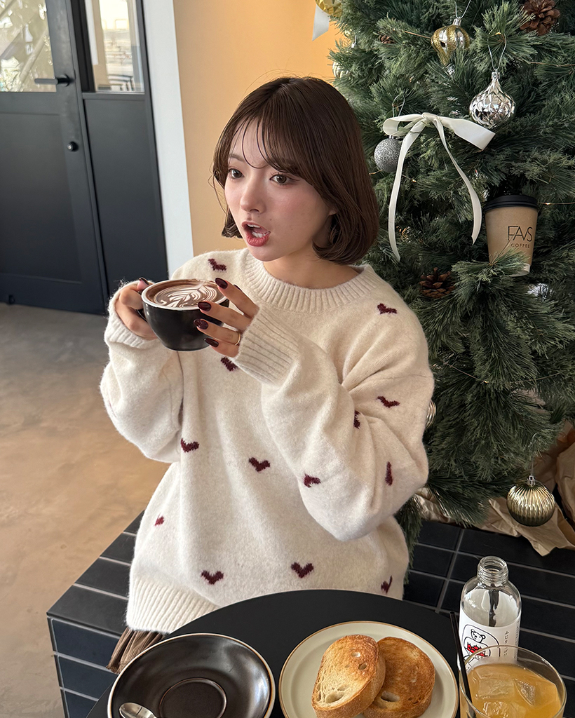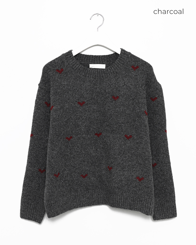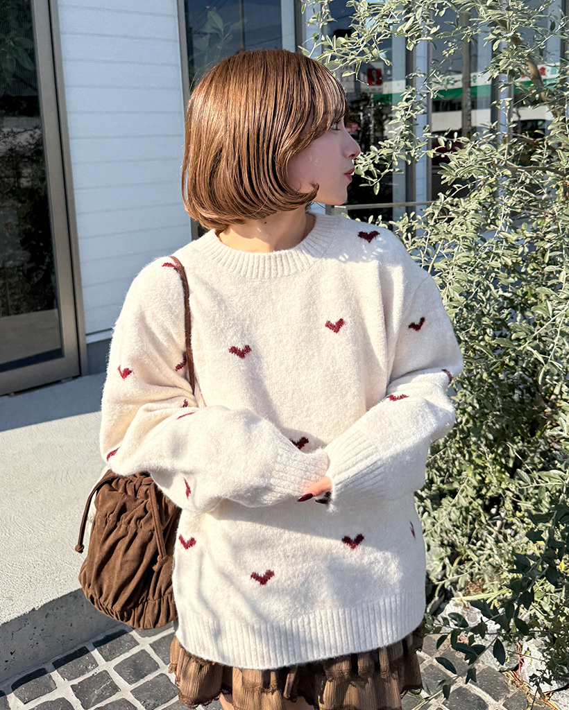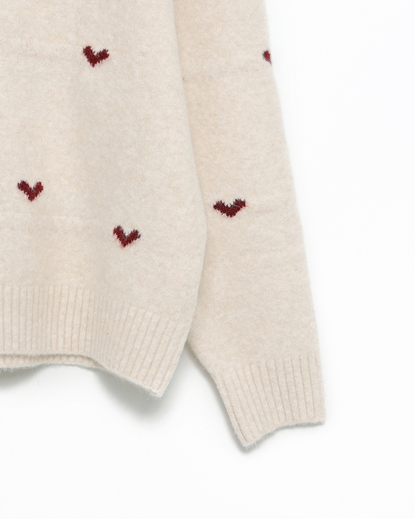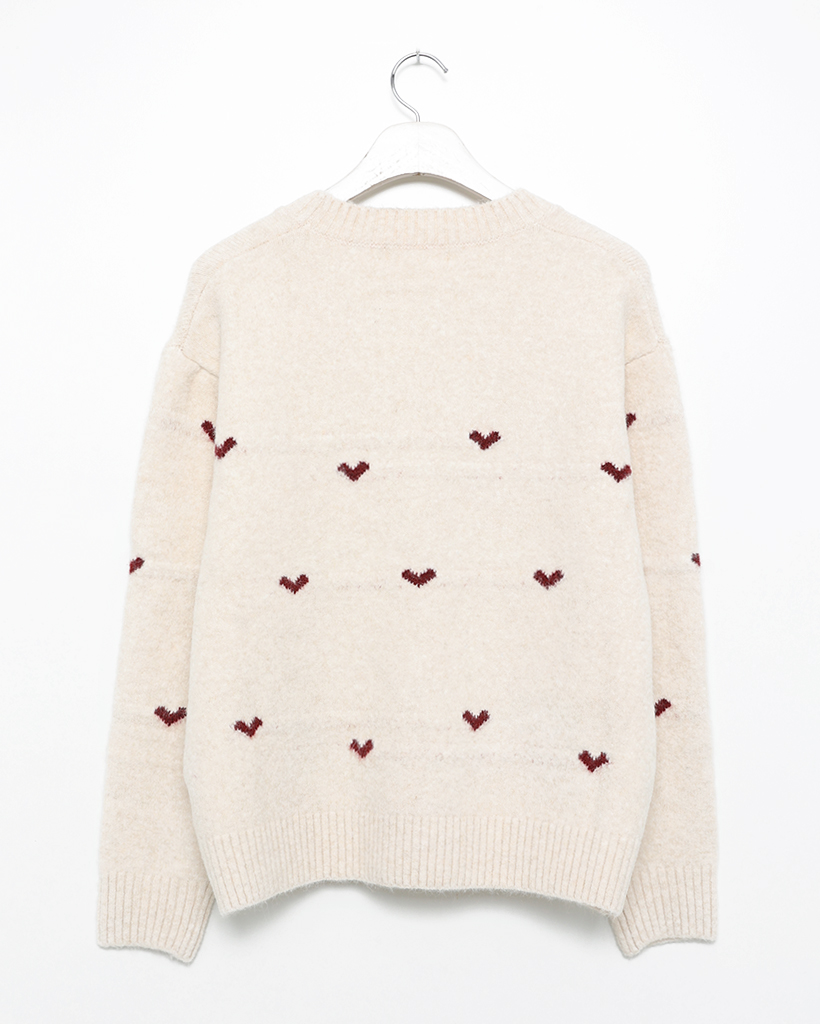 ハートパターンラウンドネックニットセーター