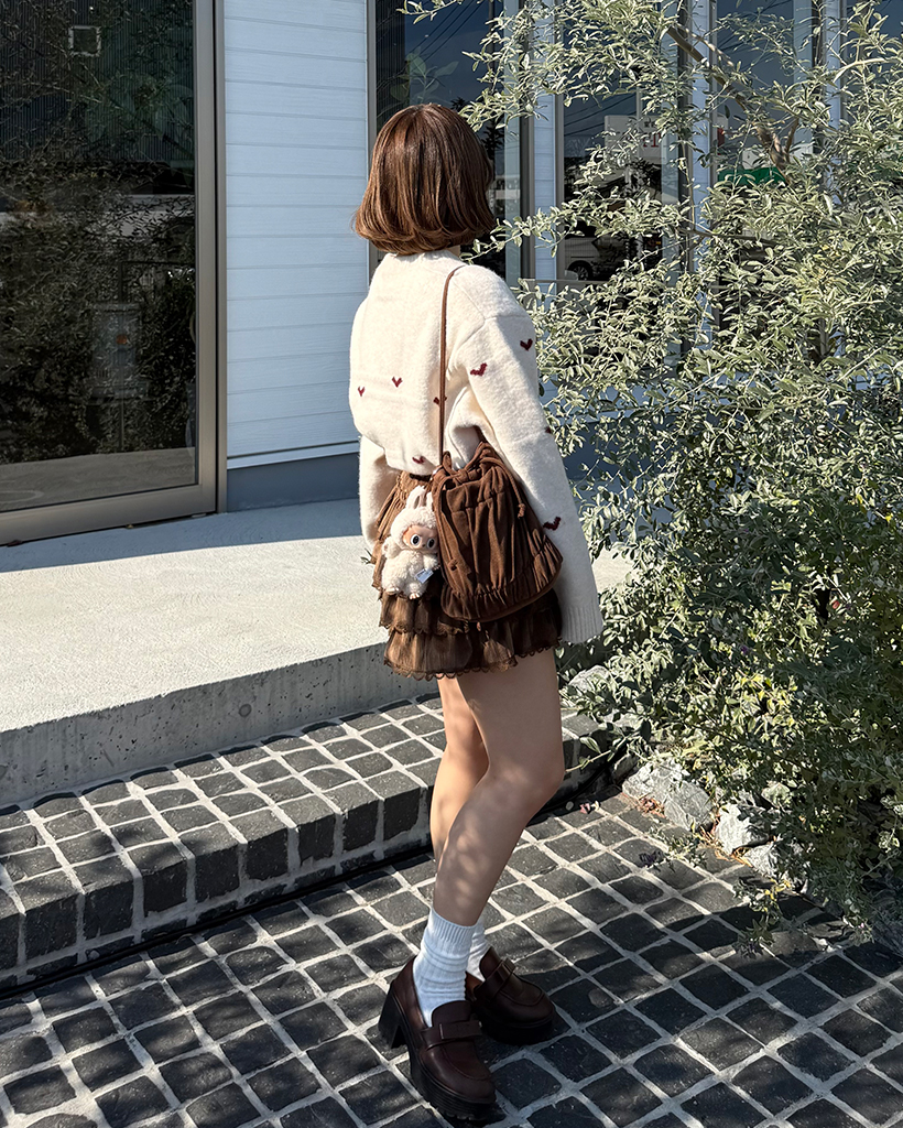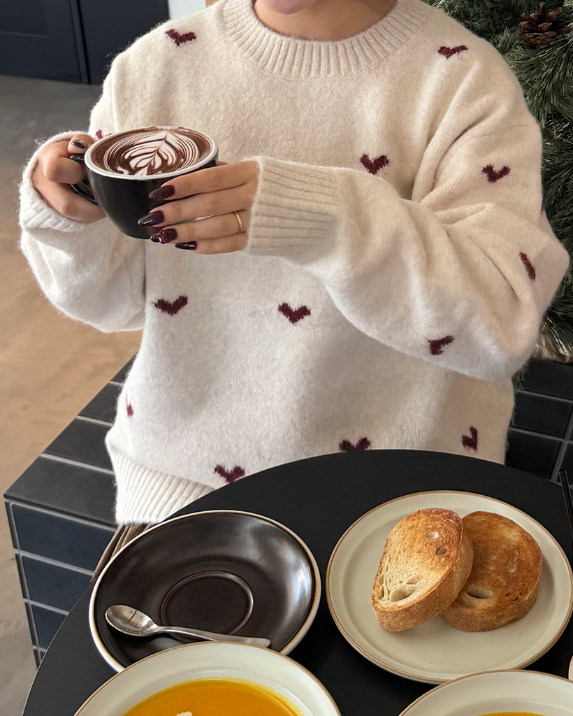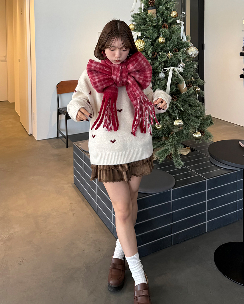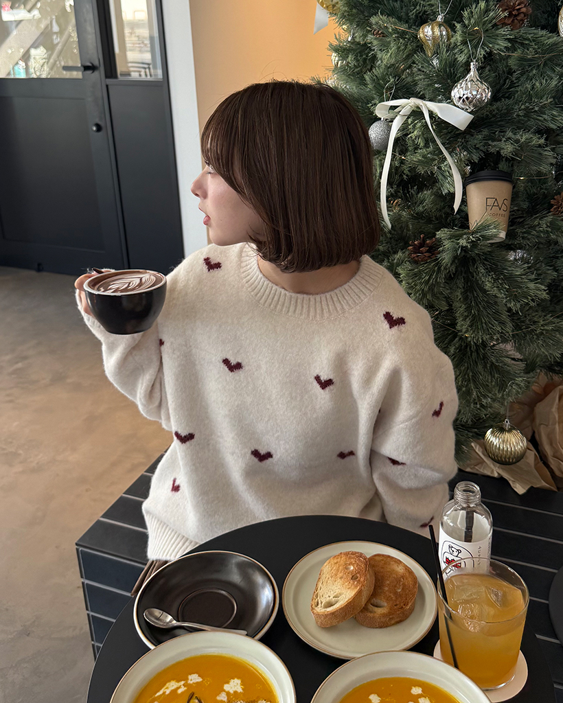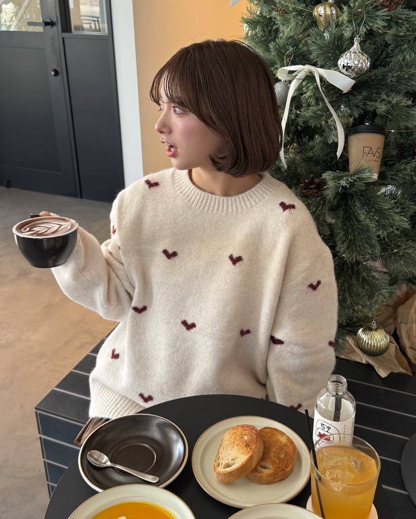 ハートパターンラウンドネックニットセーター