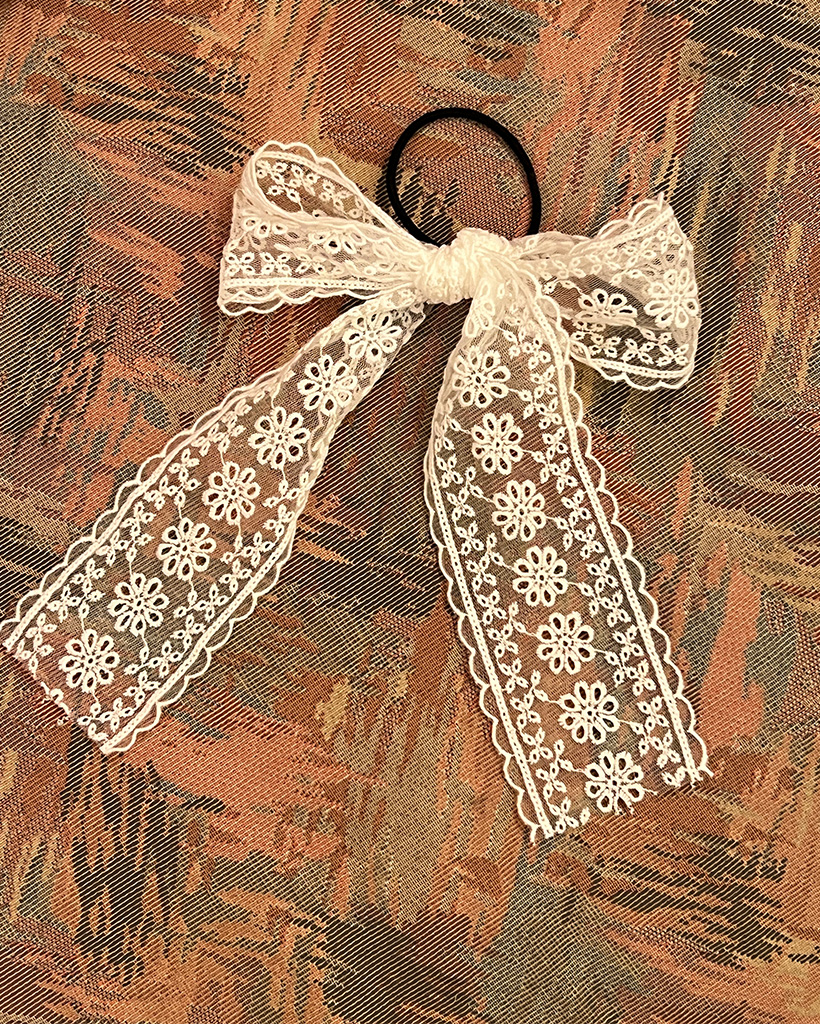 ビッグリボンフラワーレースヘアゴム