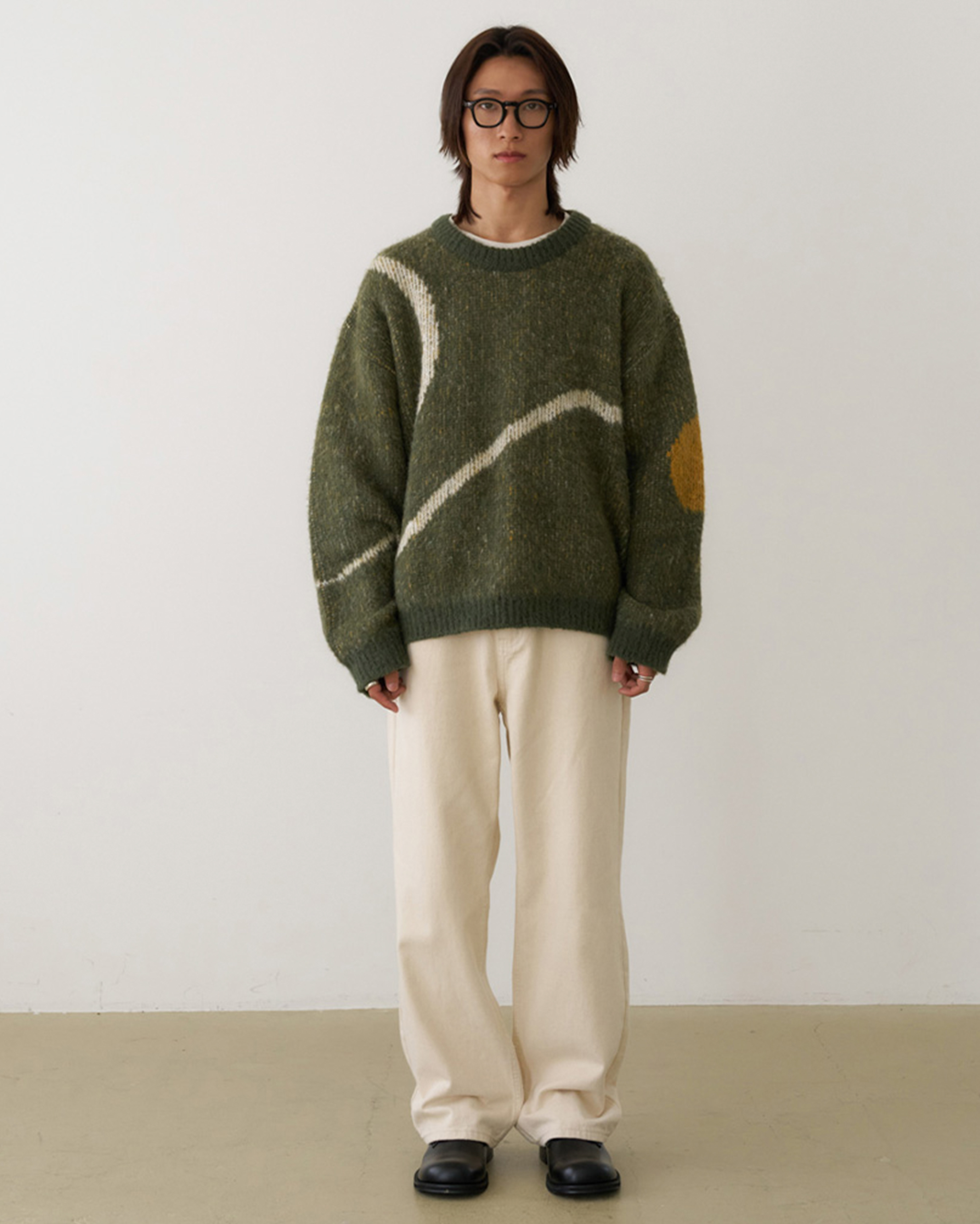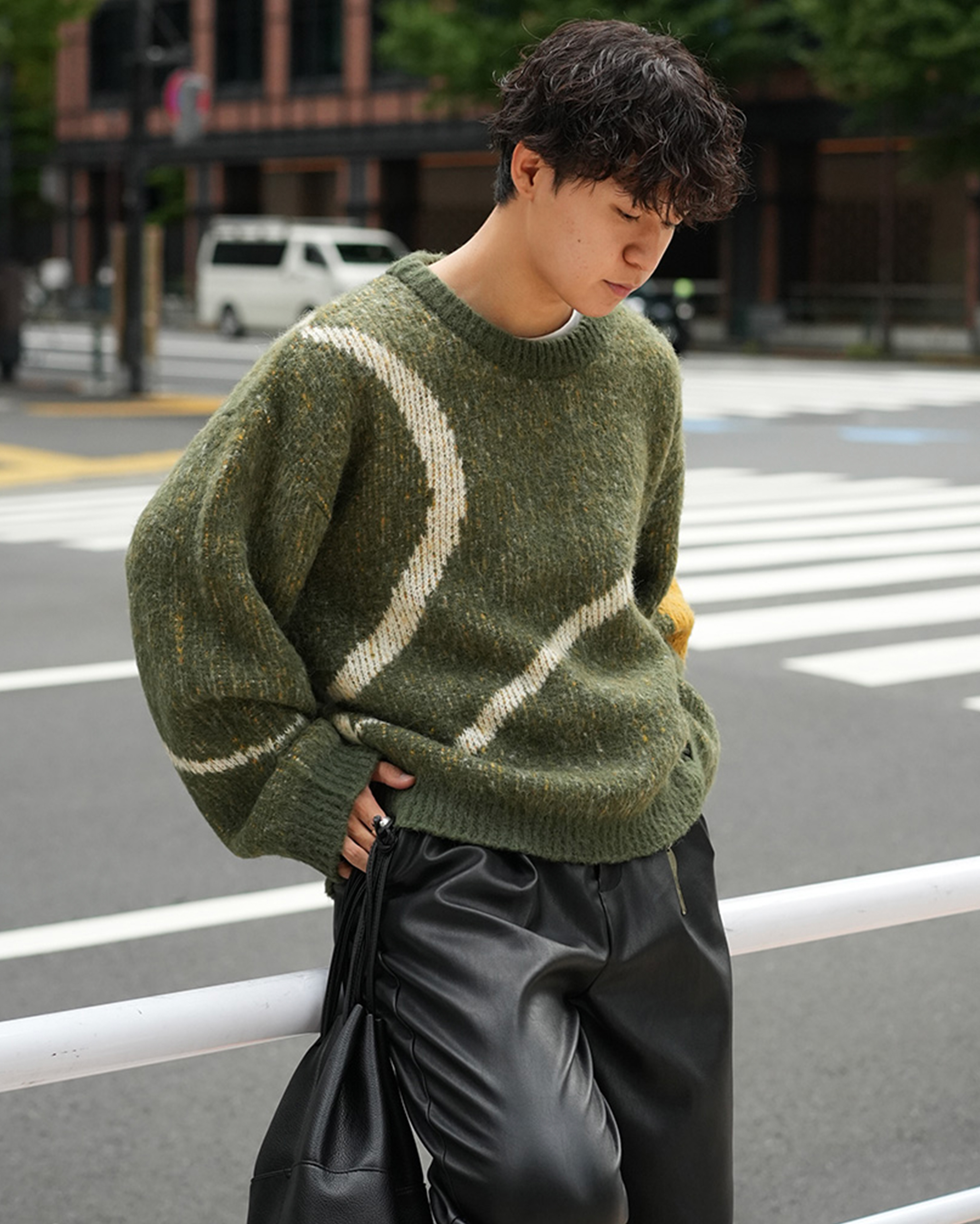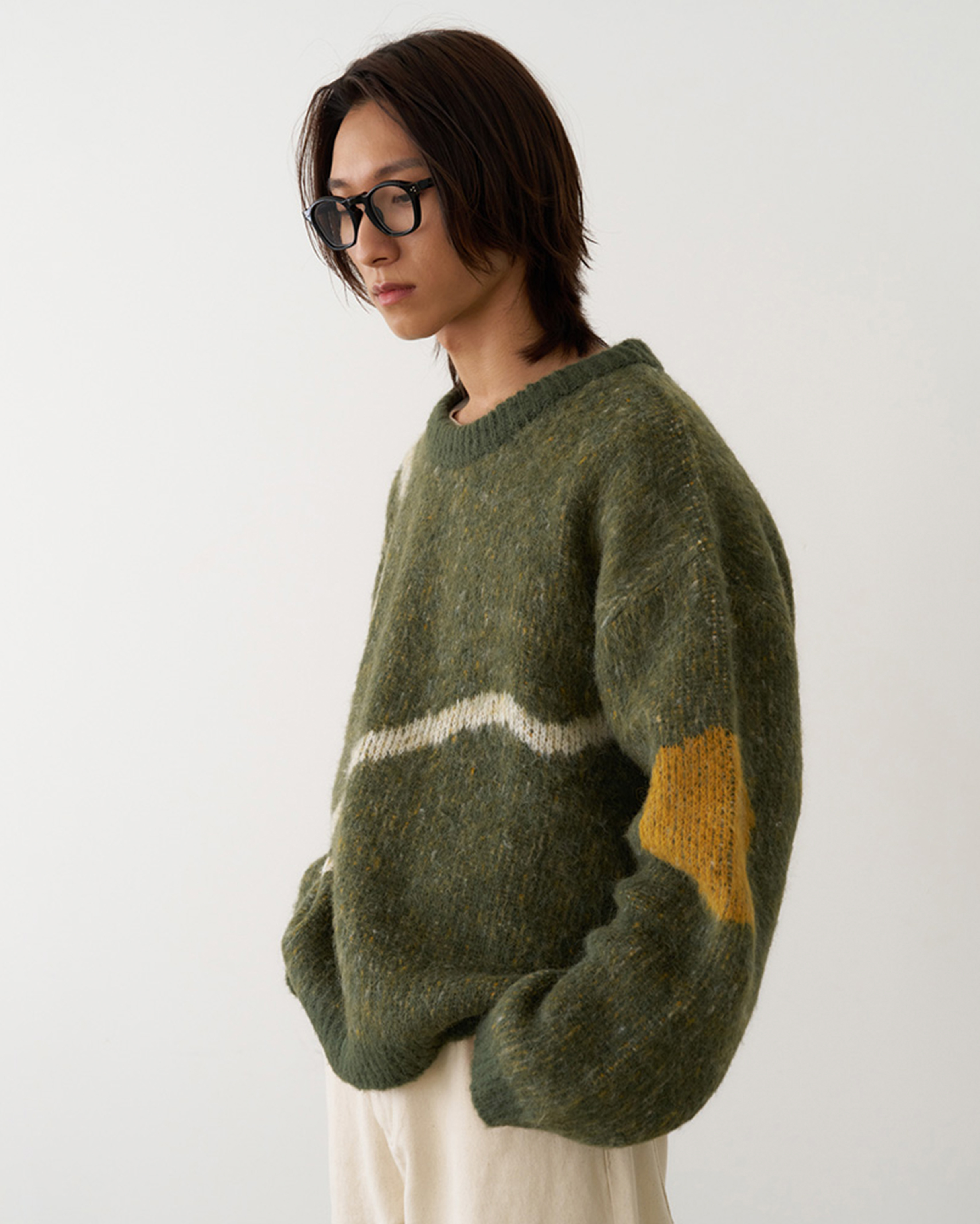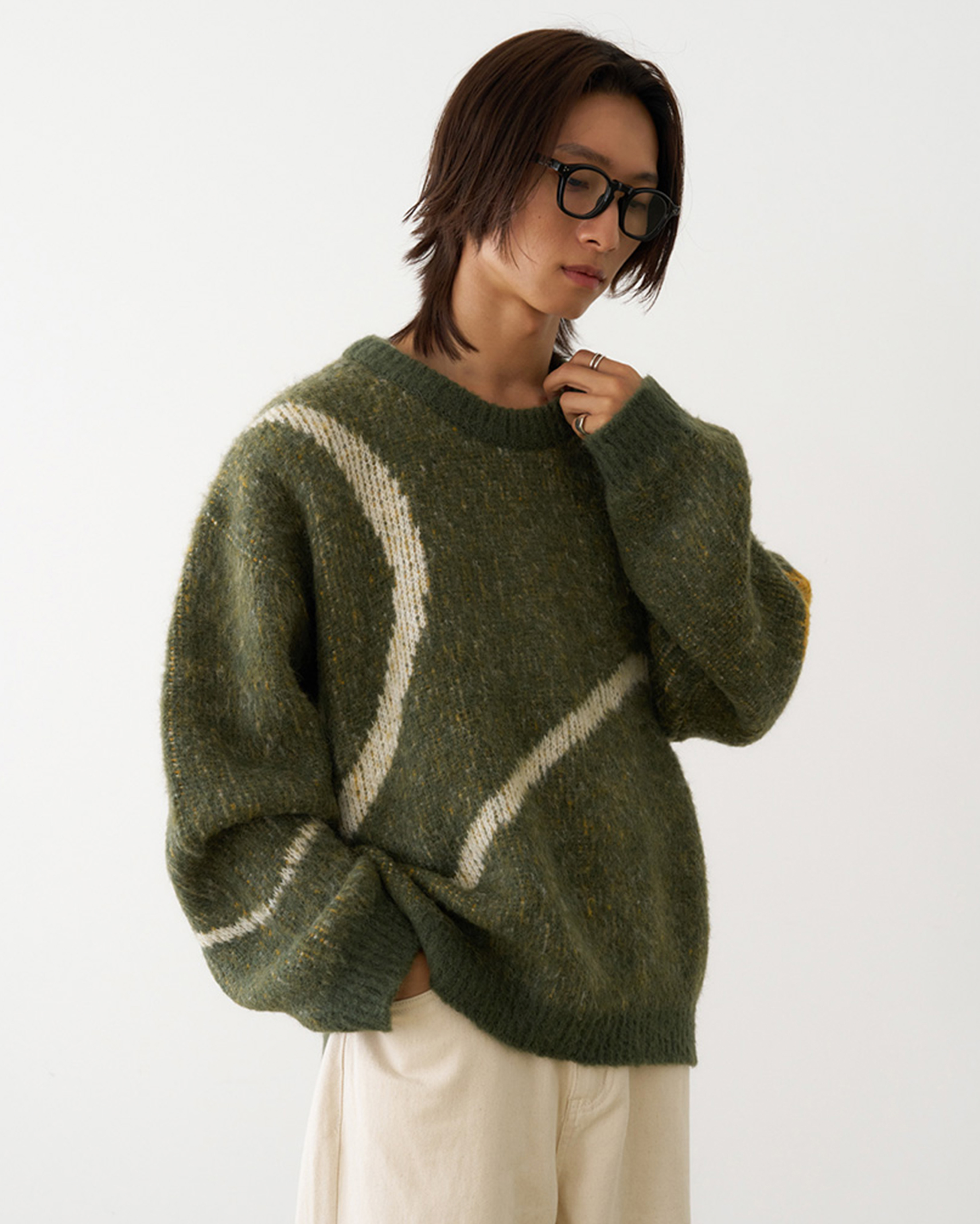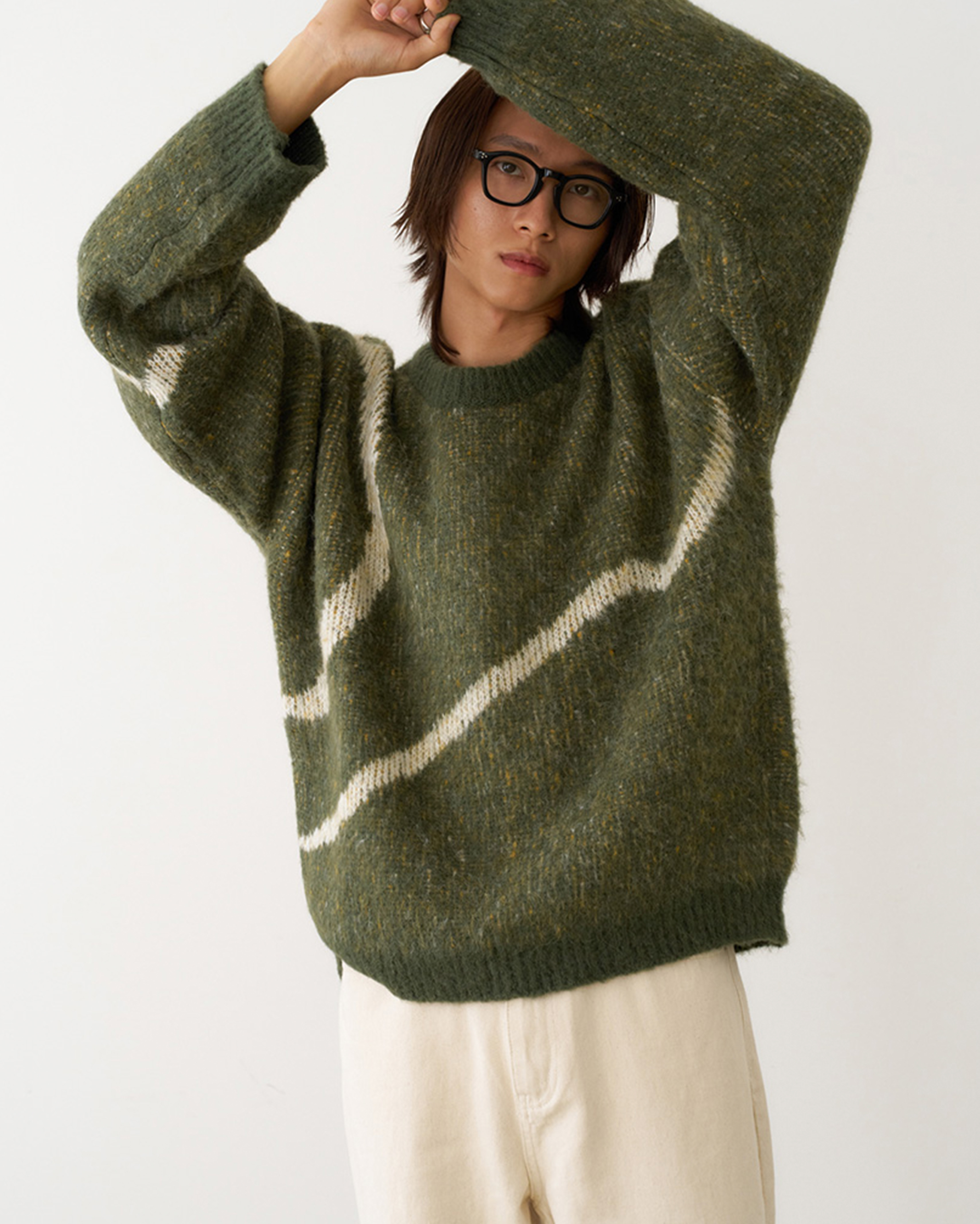 [5回再販](ORIGINAL) ラインアートアルパカニット (khaki)