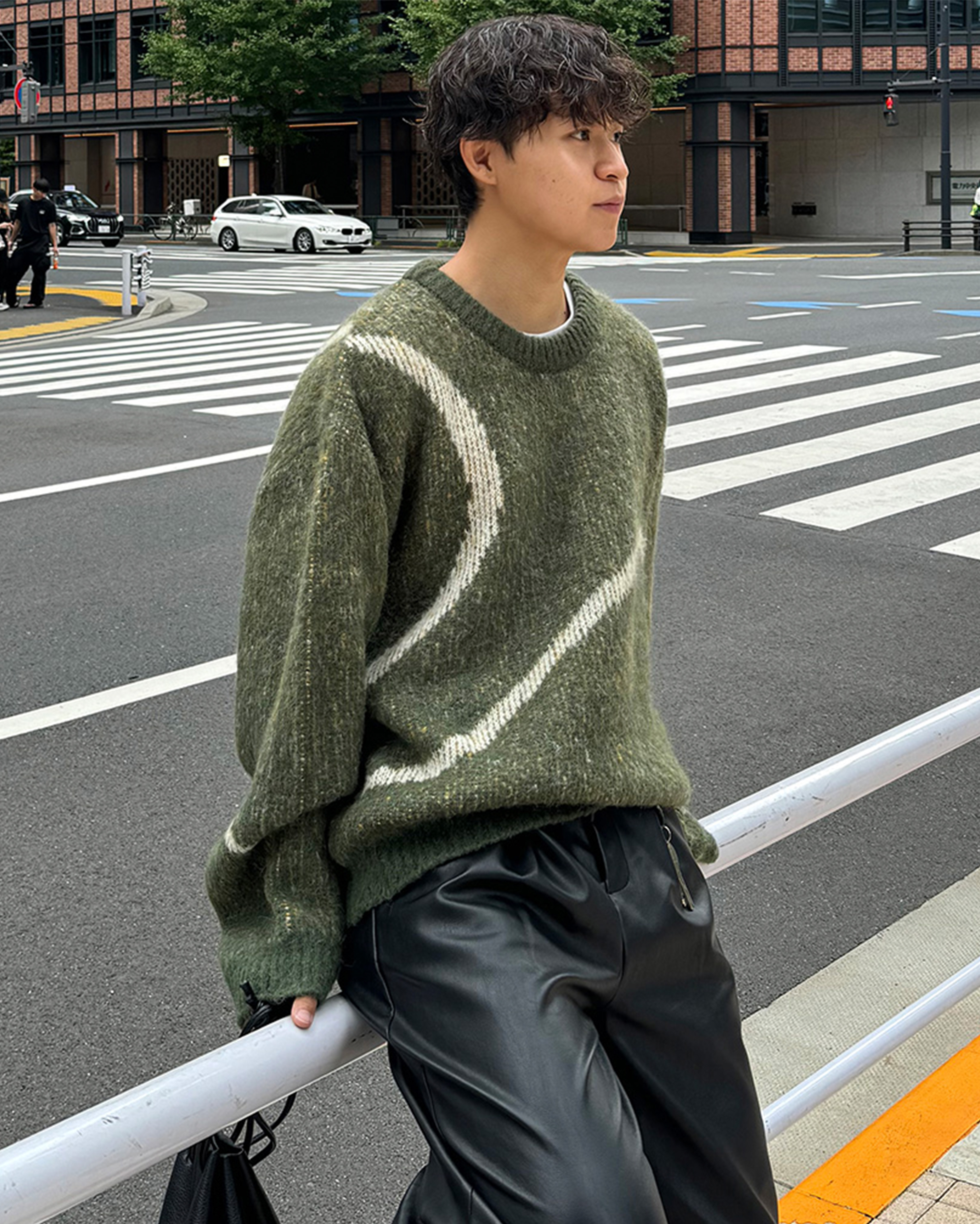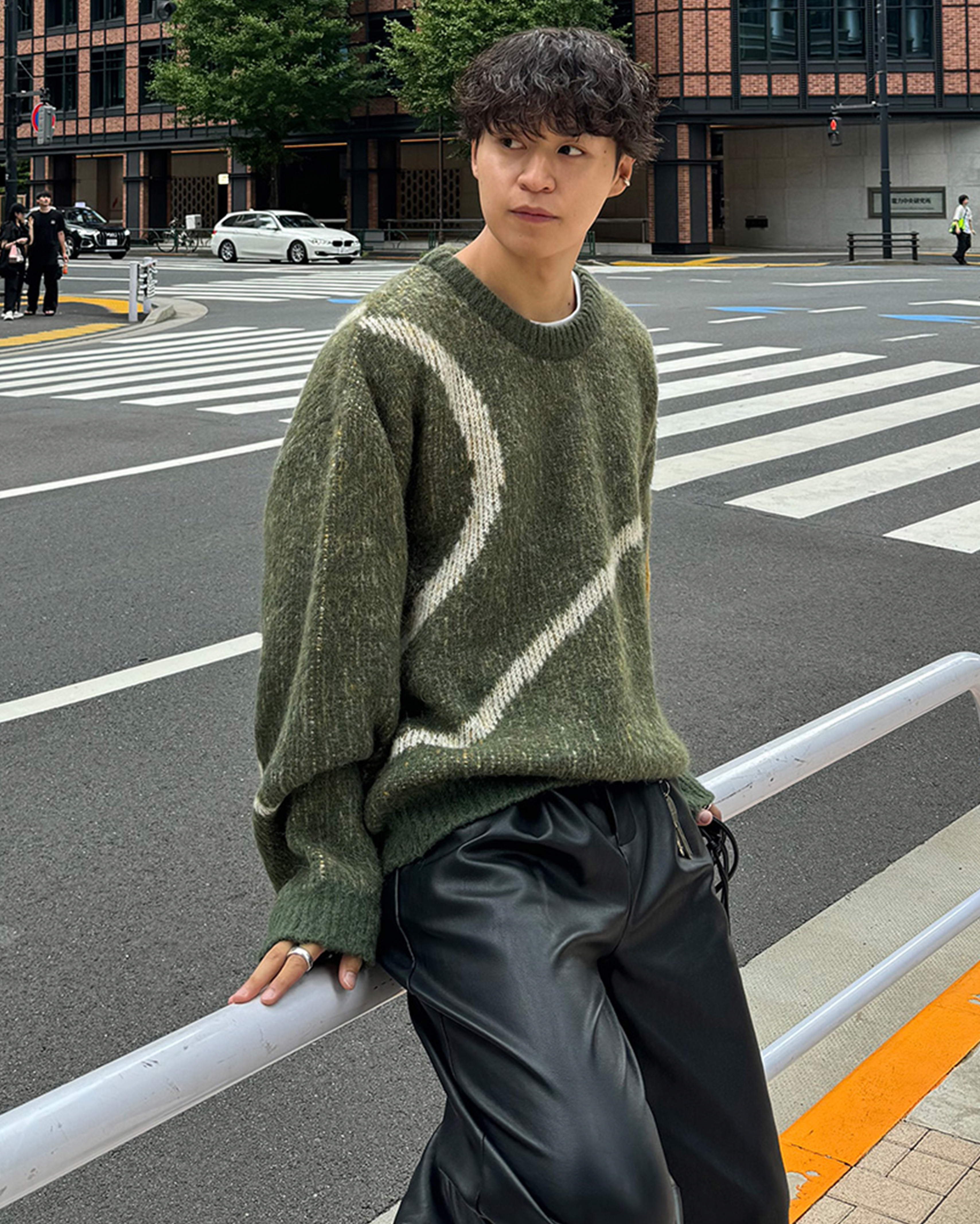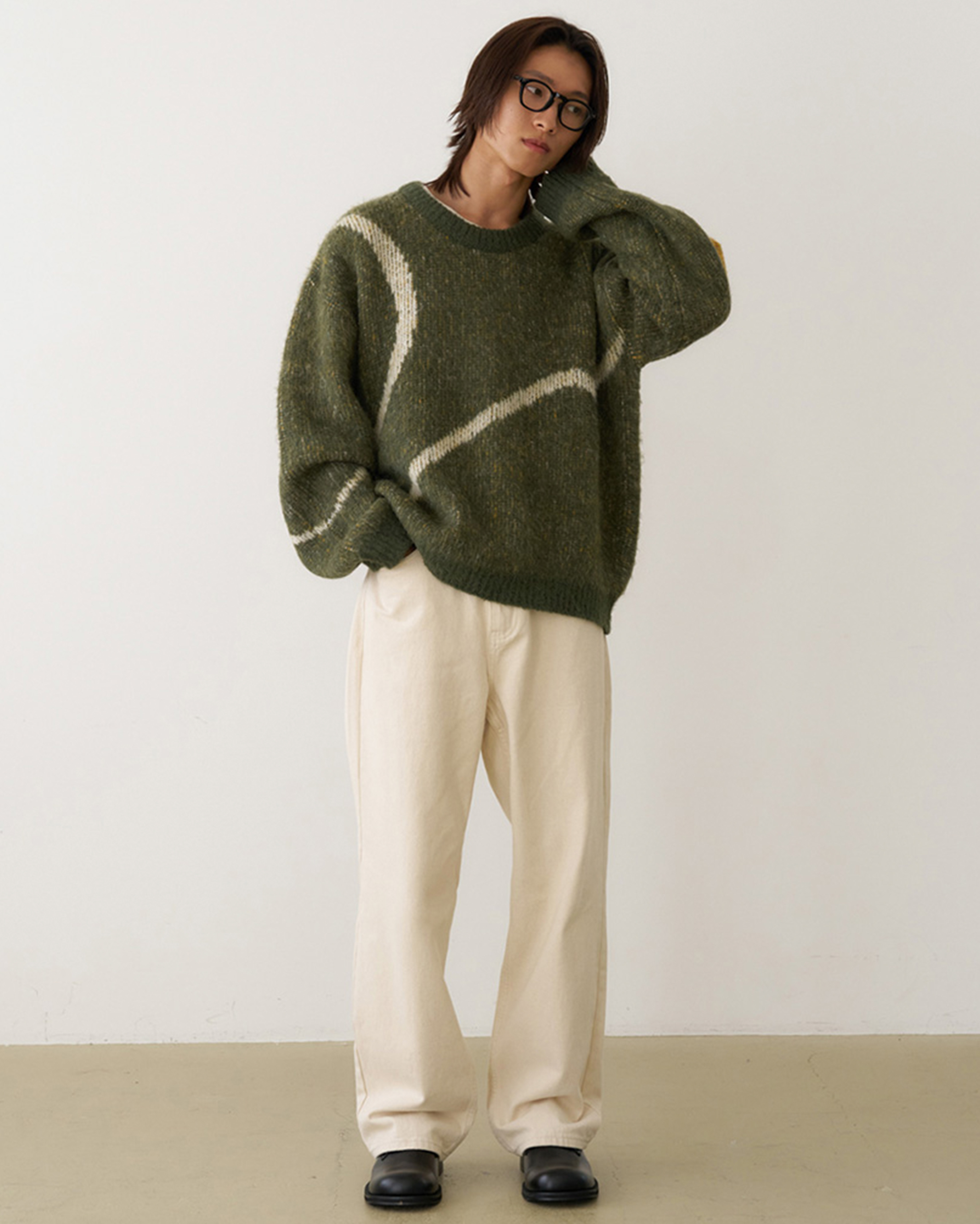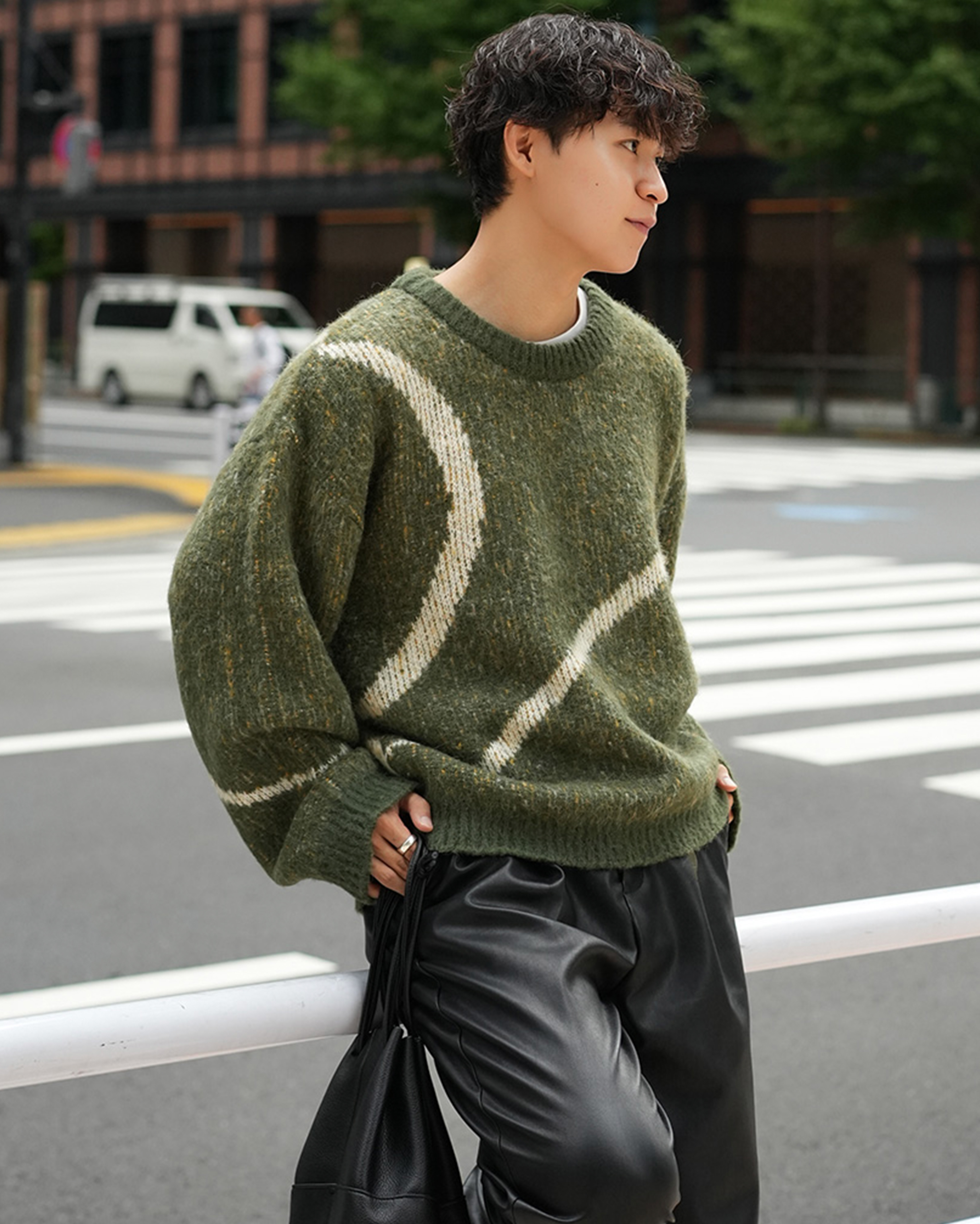 [5回再販](ORIGINAL) ラインアートアルパカニット (khaki)