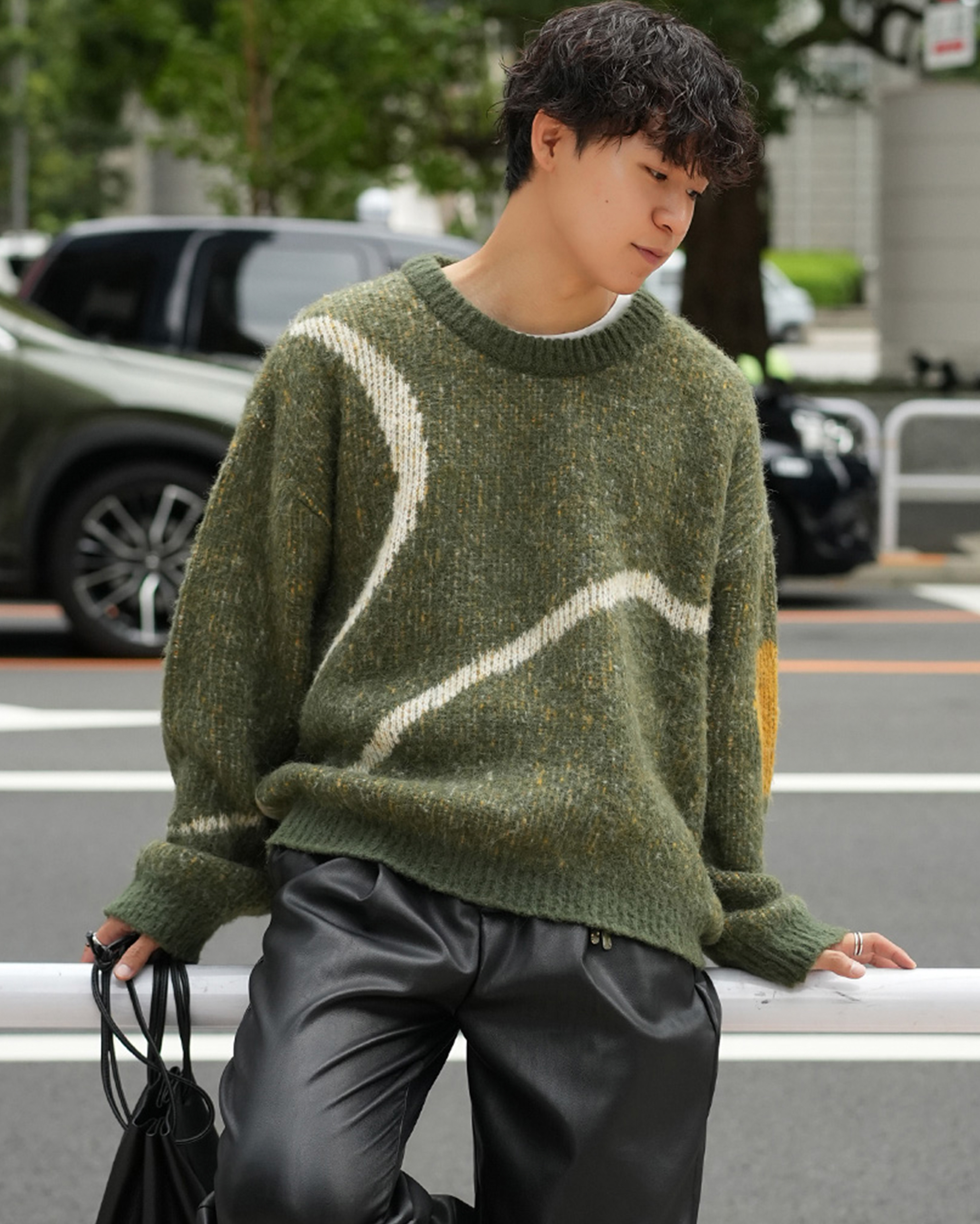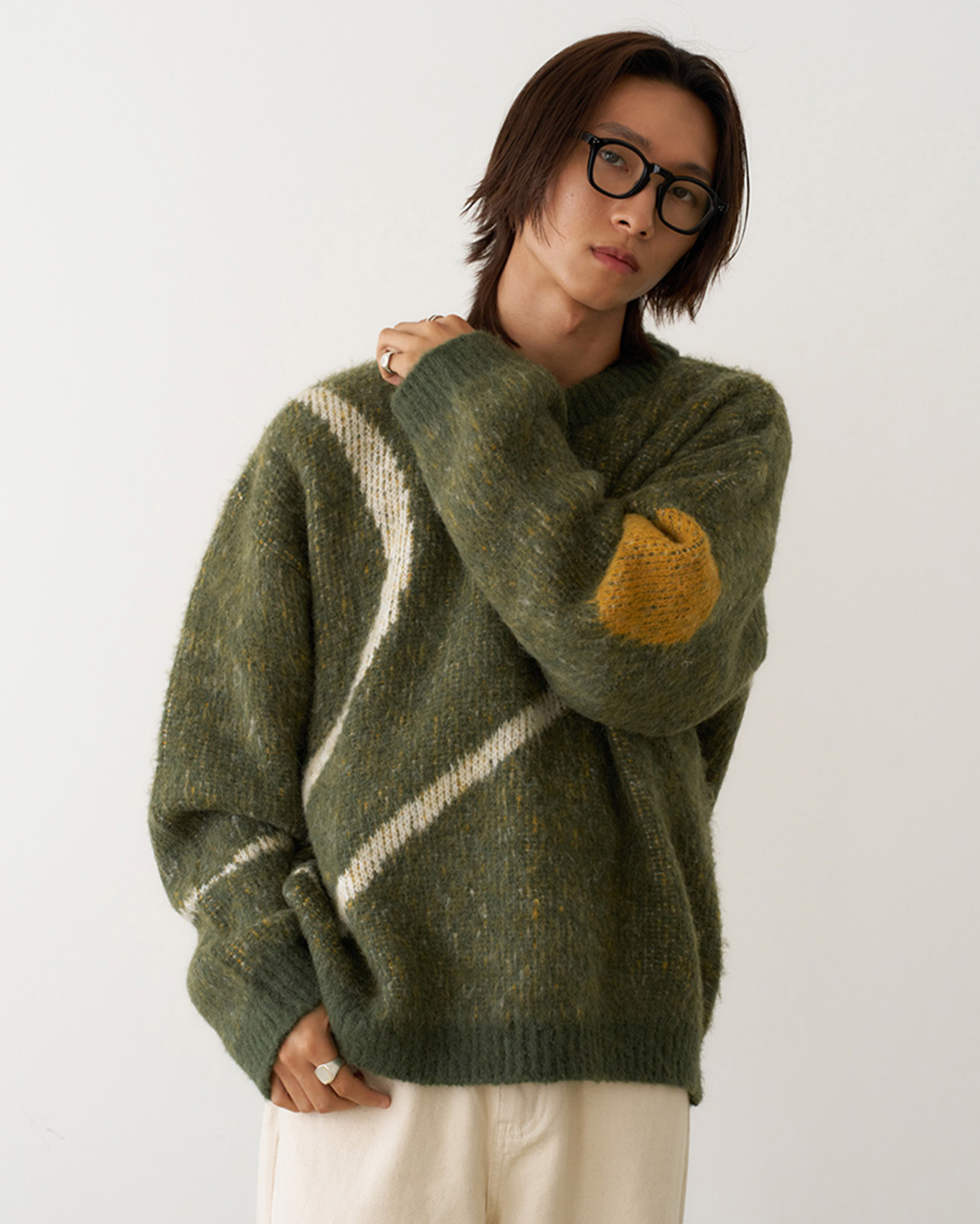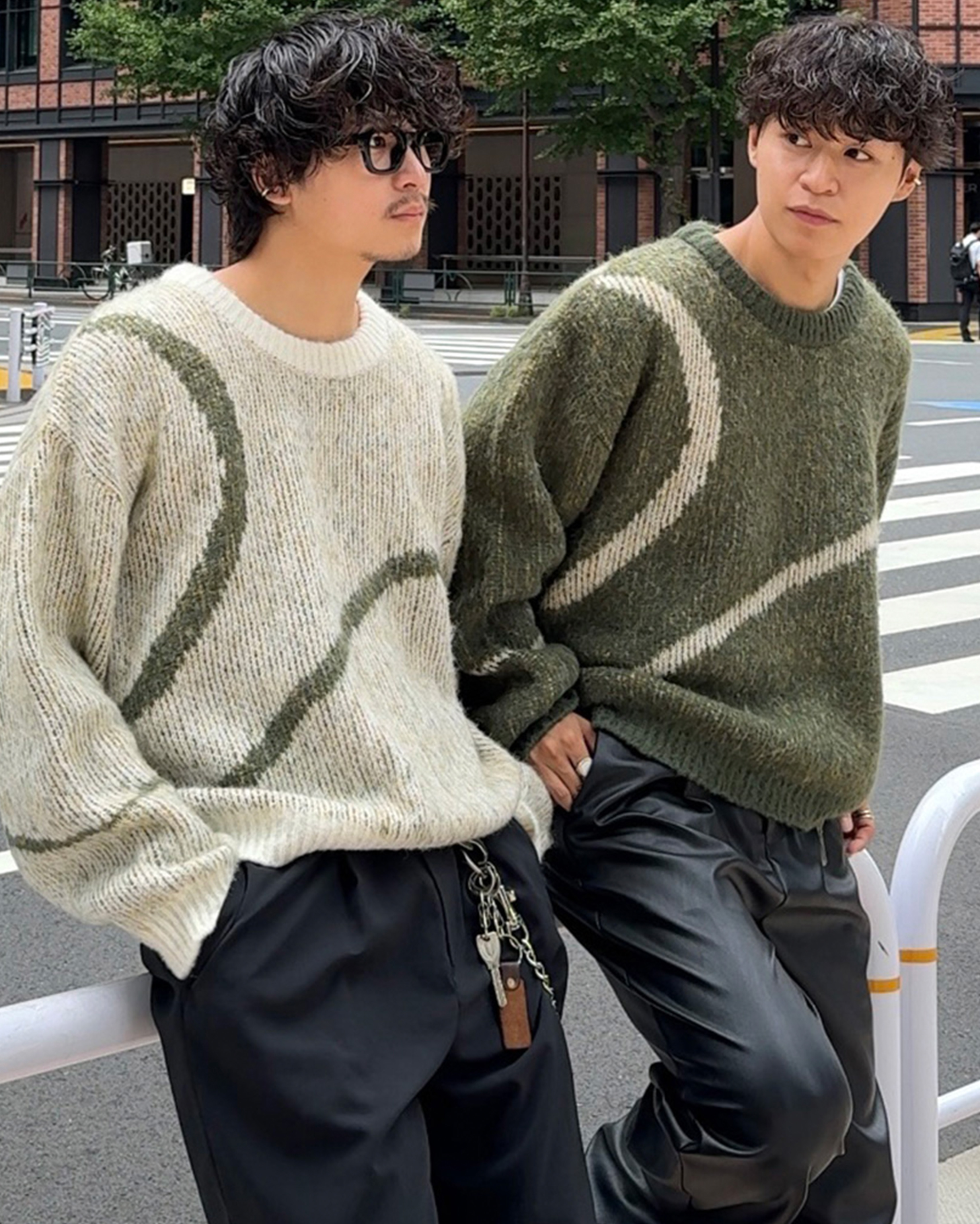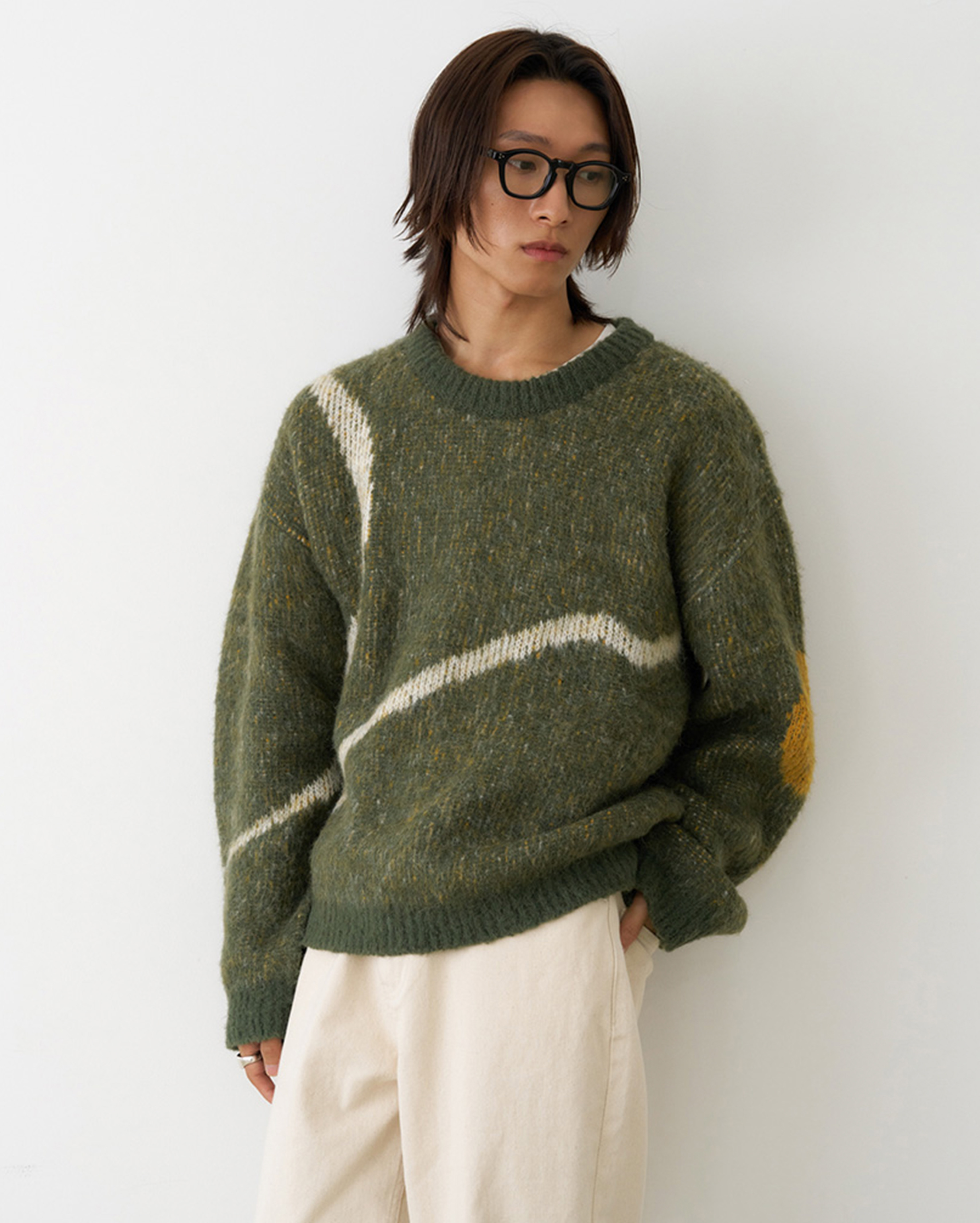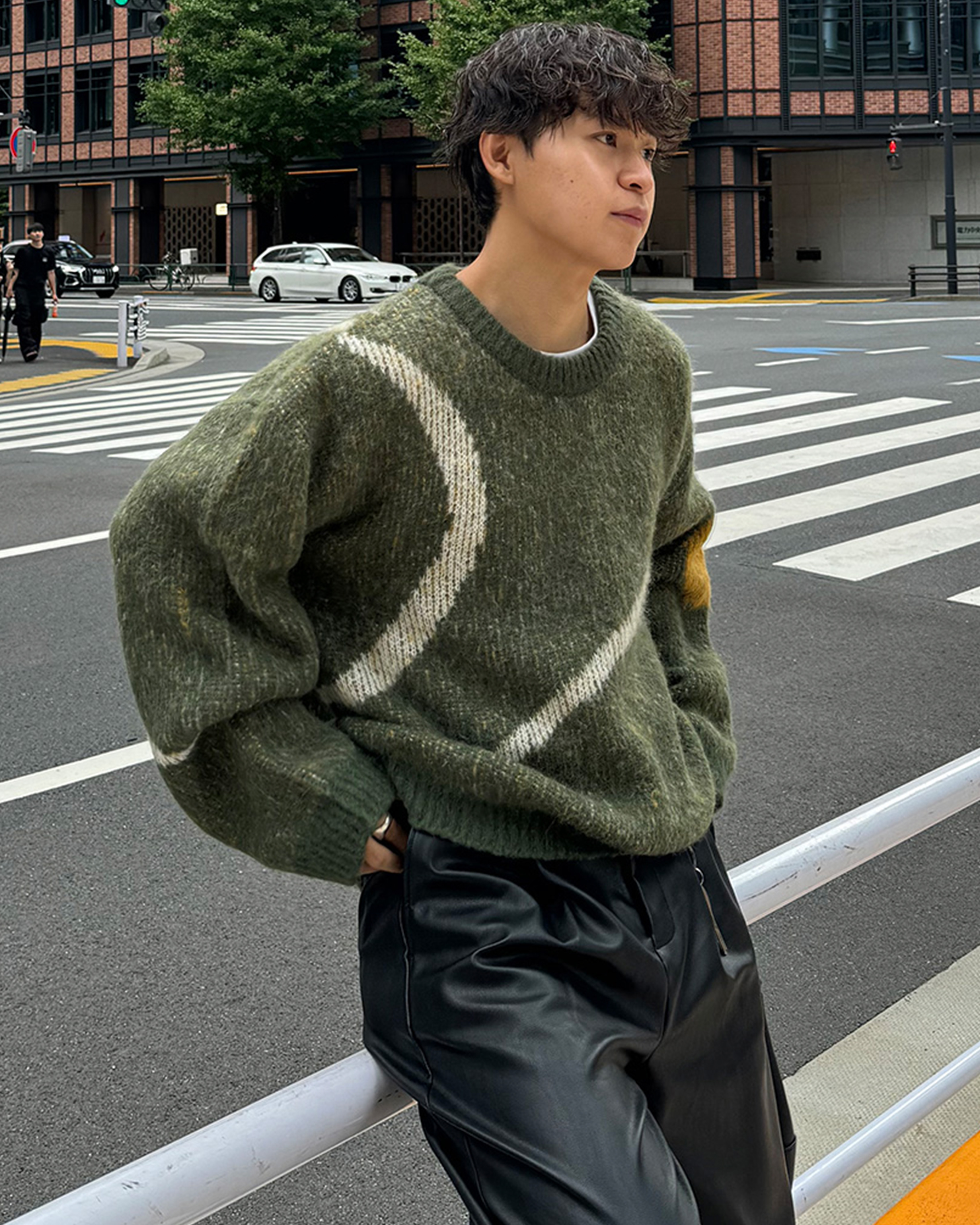 [5回再販](ORIGINAL) ラインアートアルパカニット (khaki)