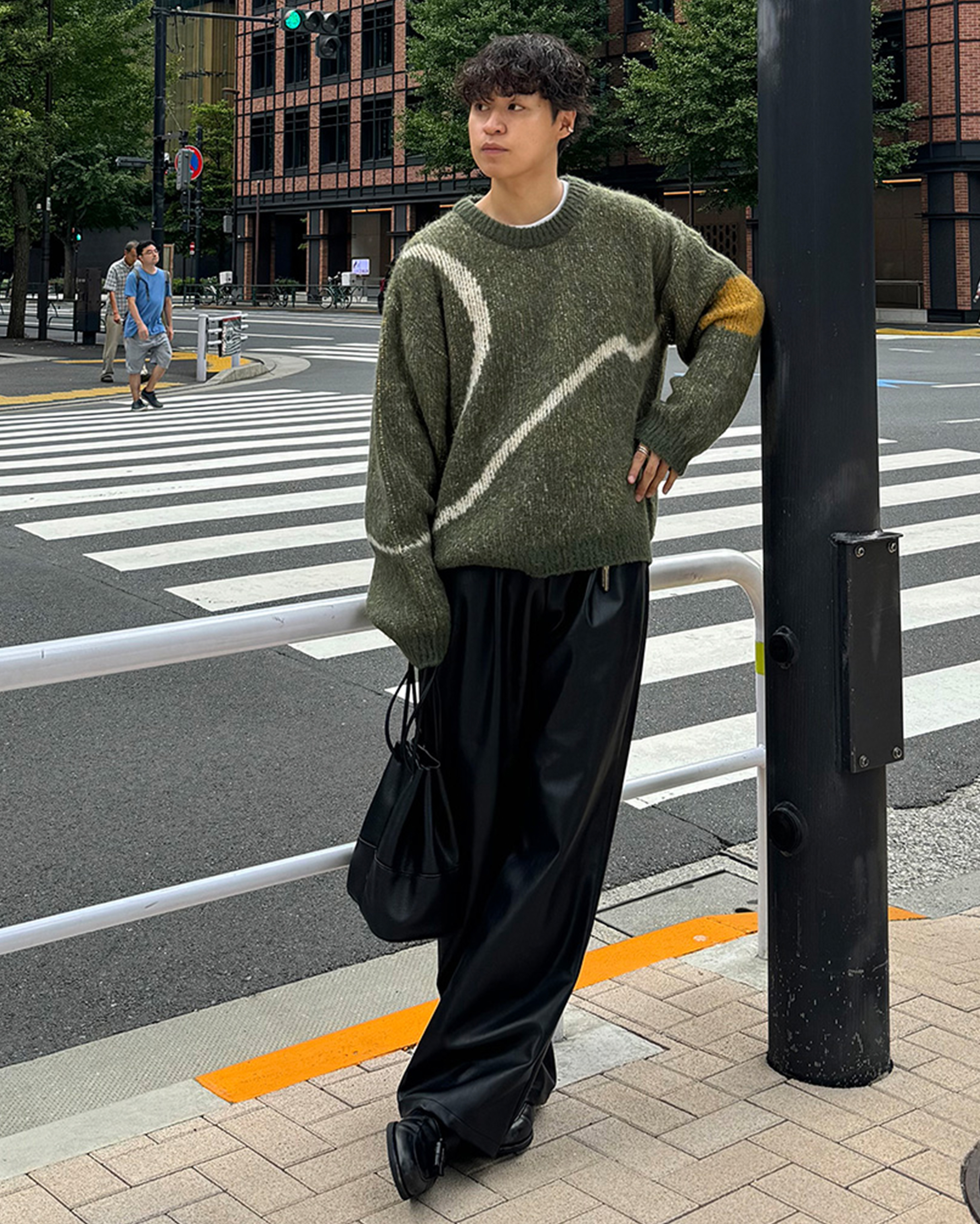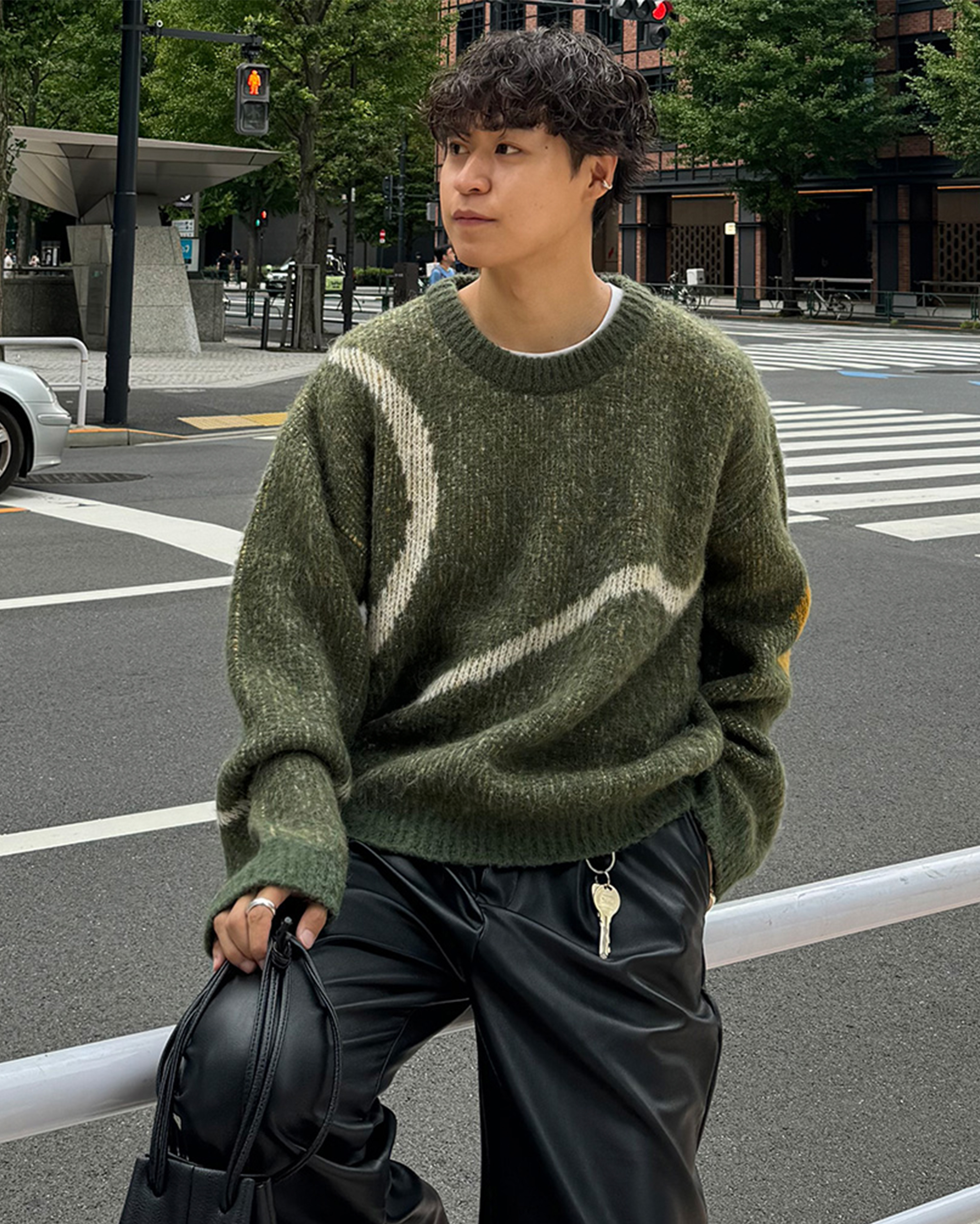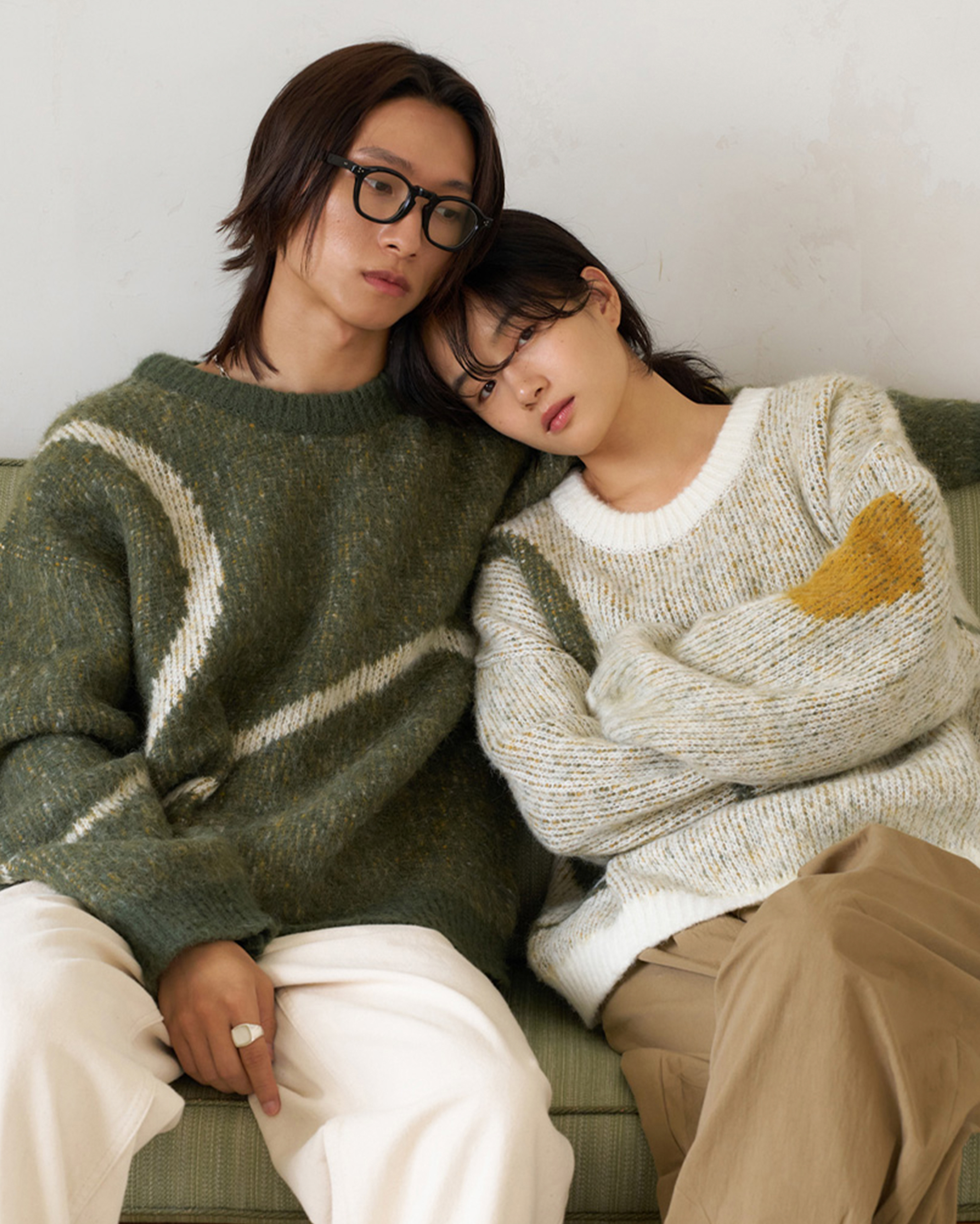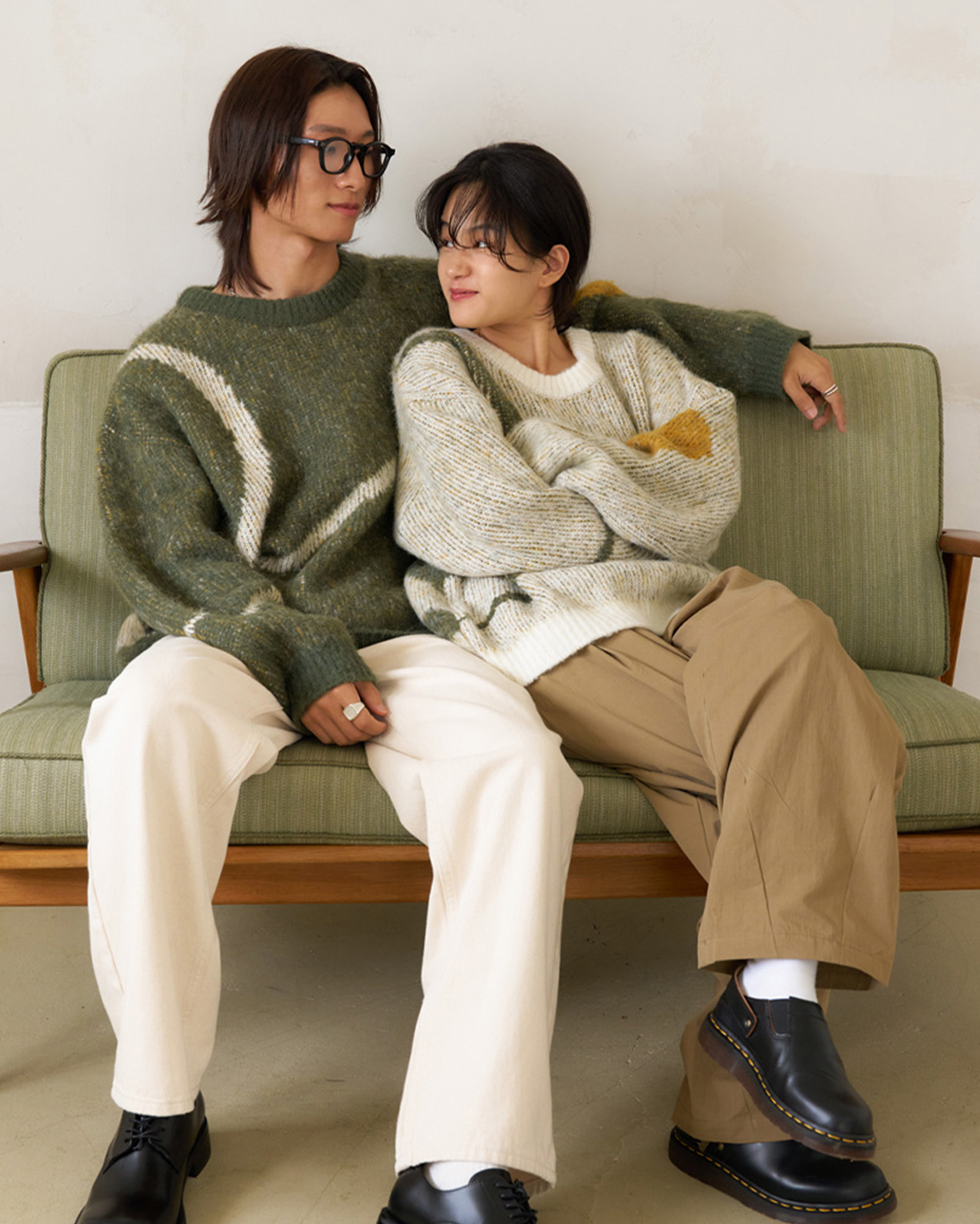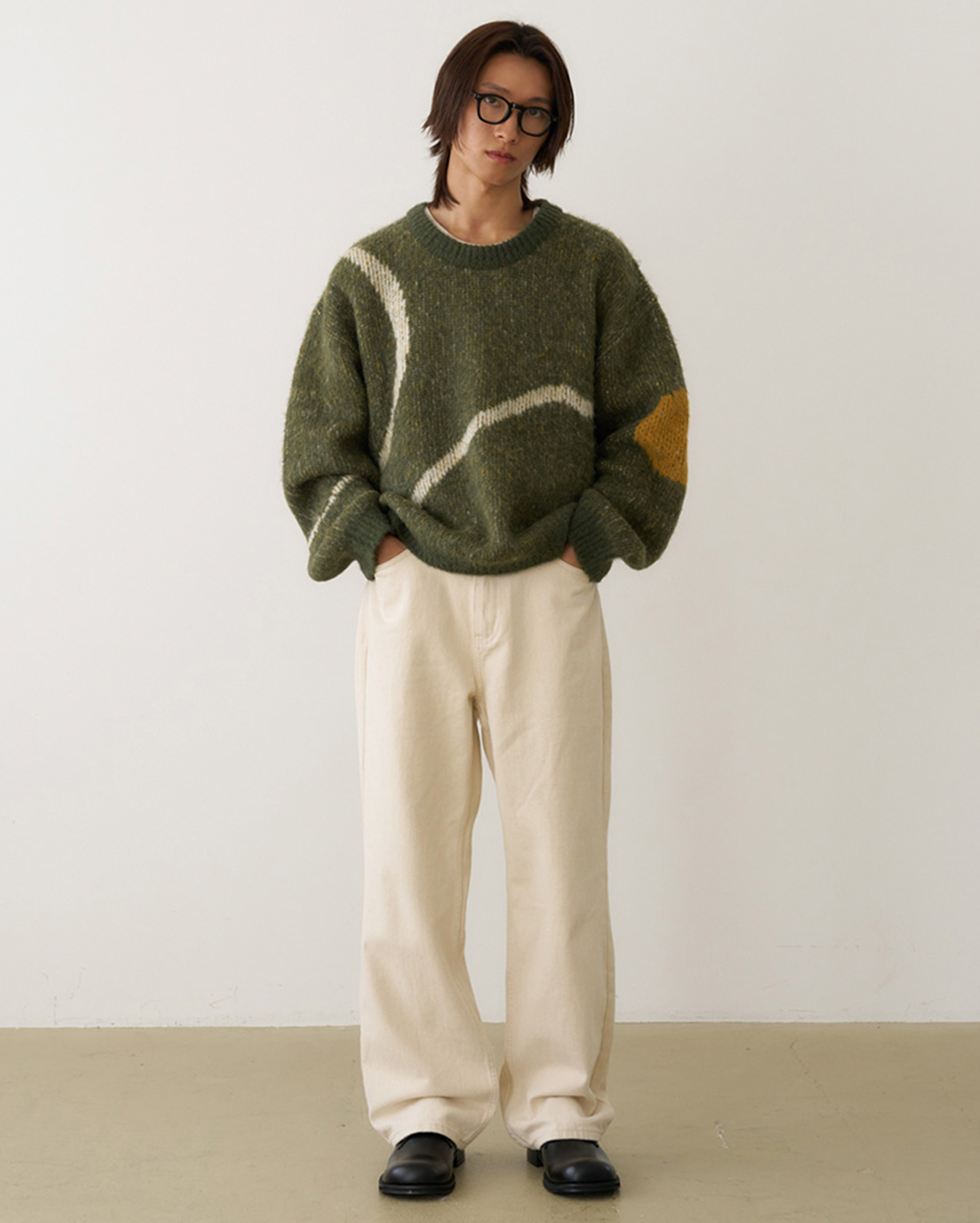 [5回再販](ORIGINAL) ラインアートアルパカニット (khaki)