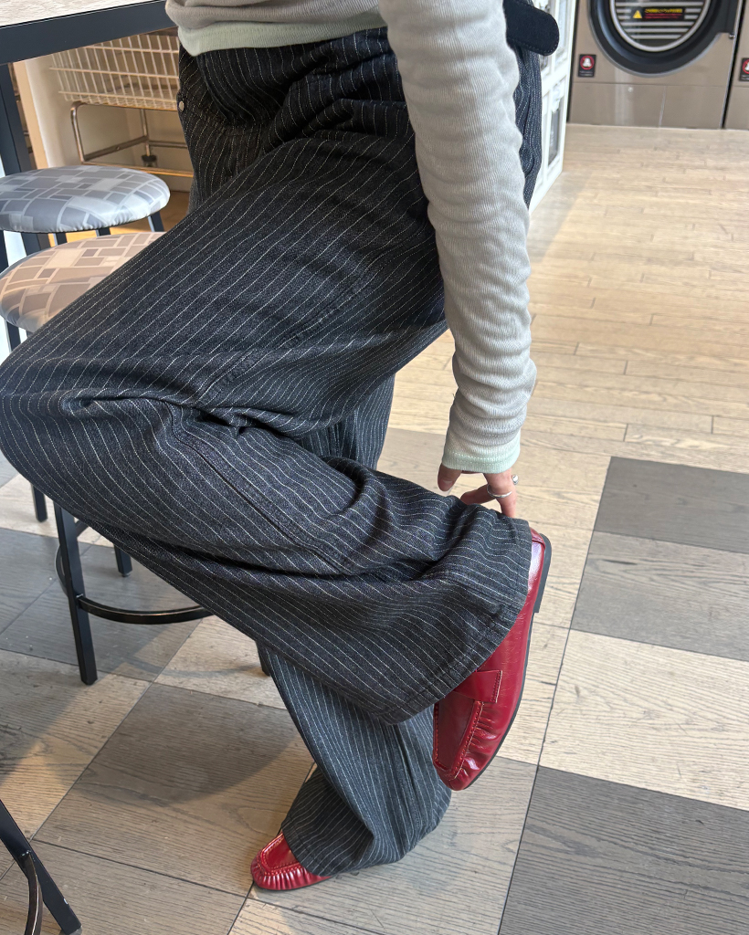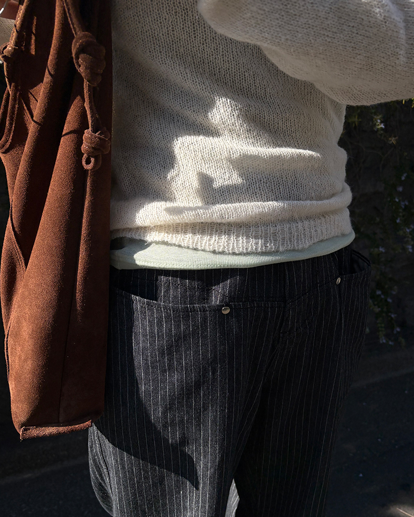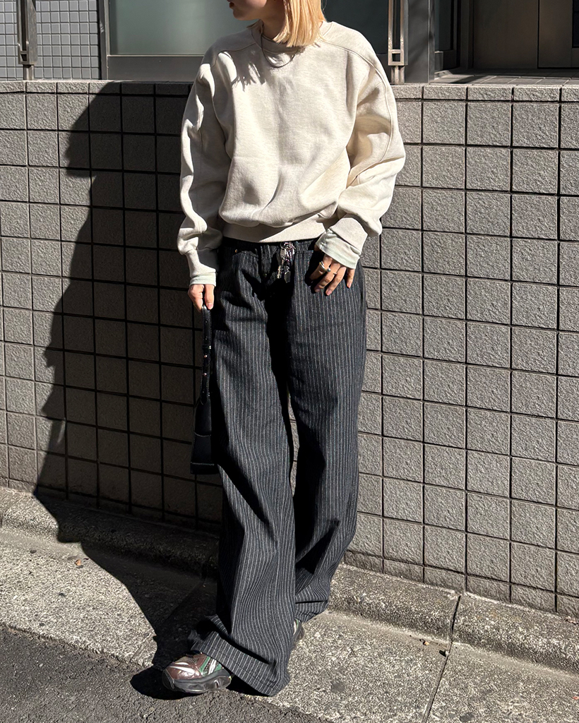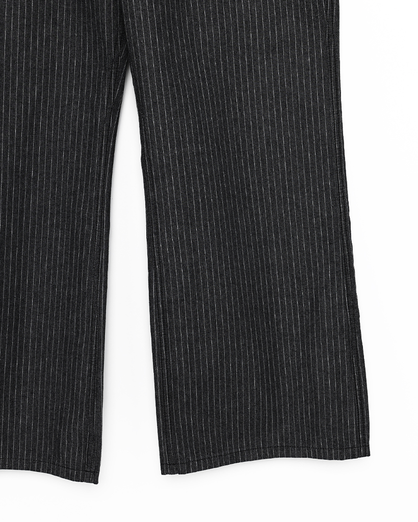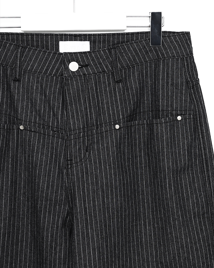 (ユニセックス)ペンシルストライプワイドブラックジーンズ