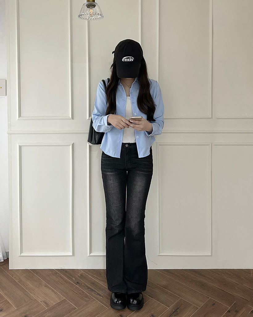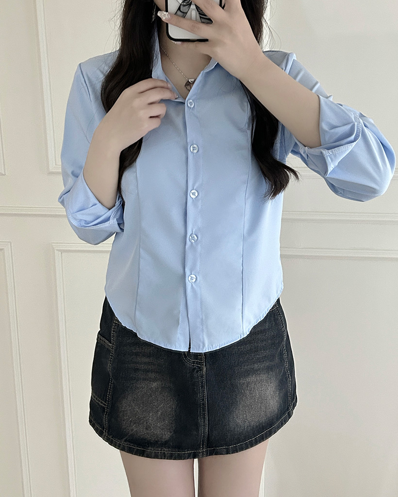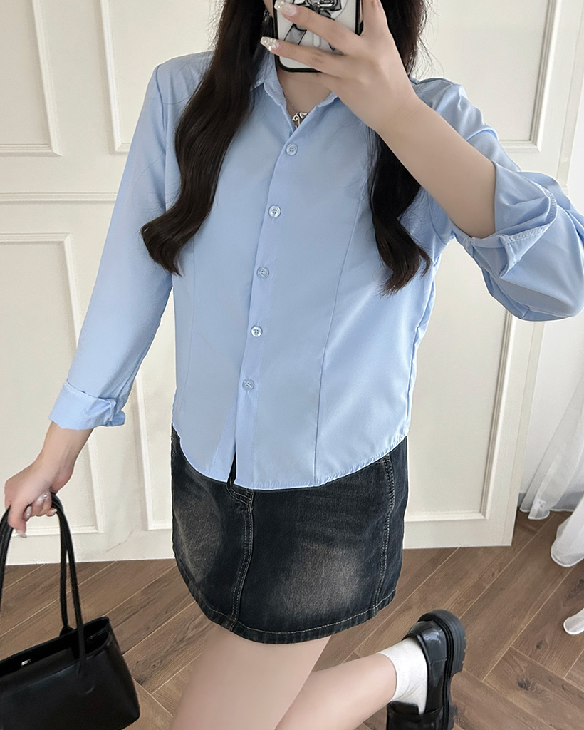 クロップベーシックロングスリーブシャツ