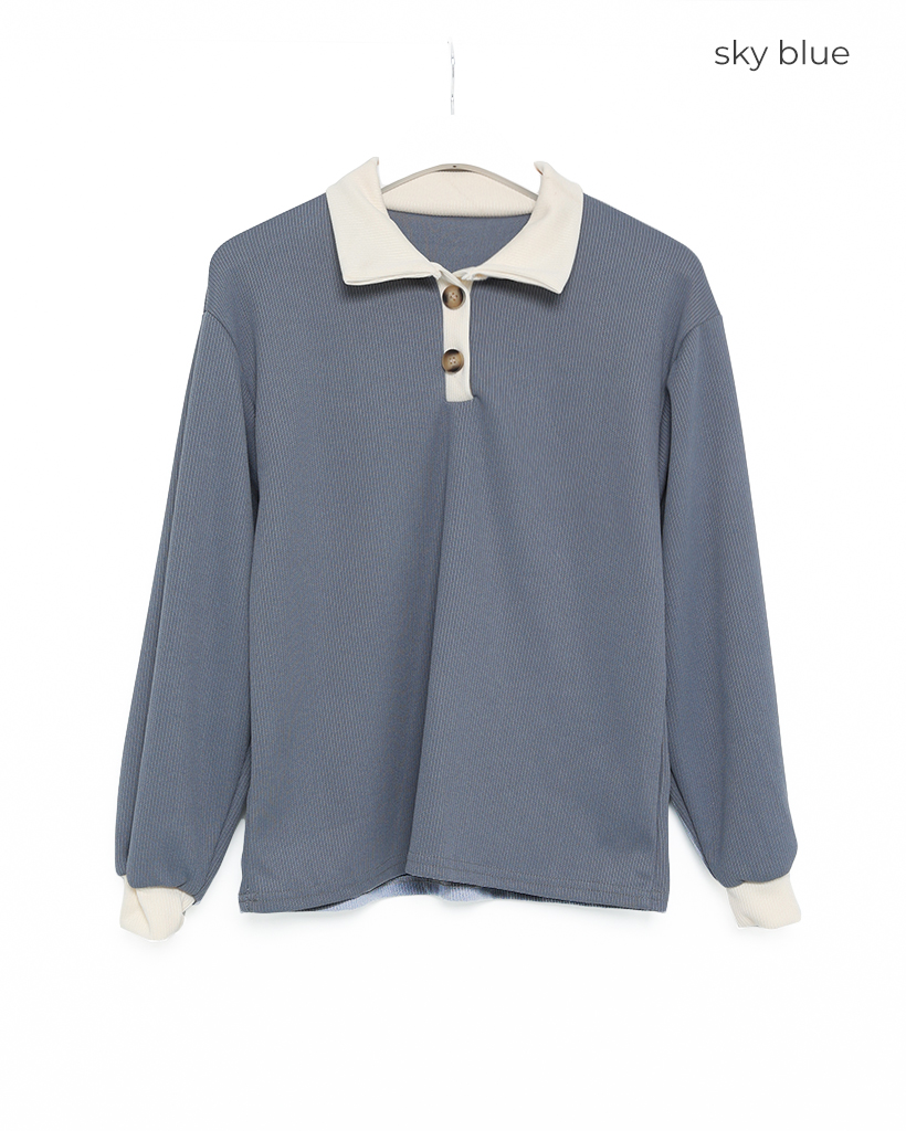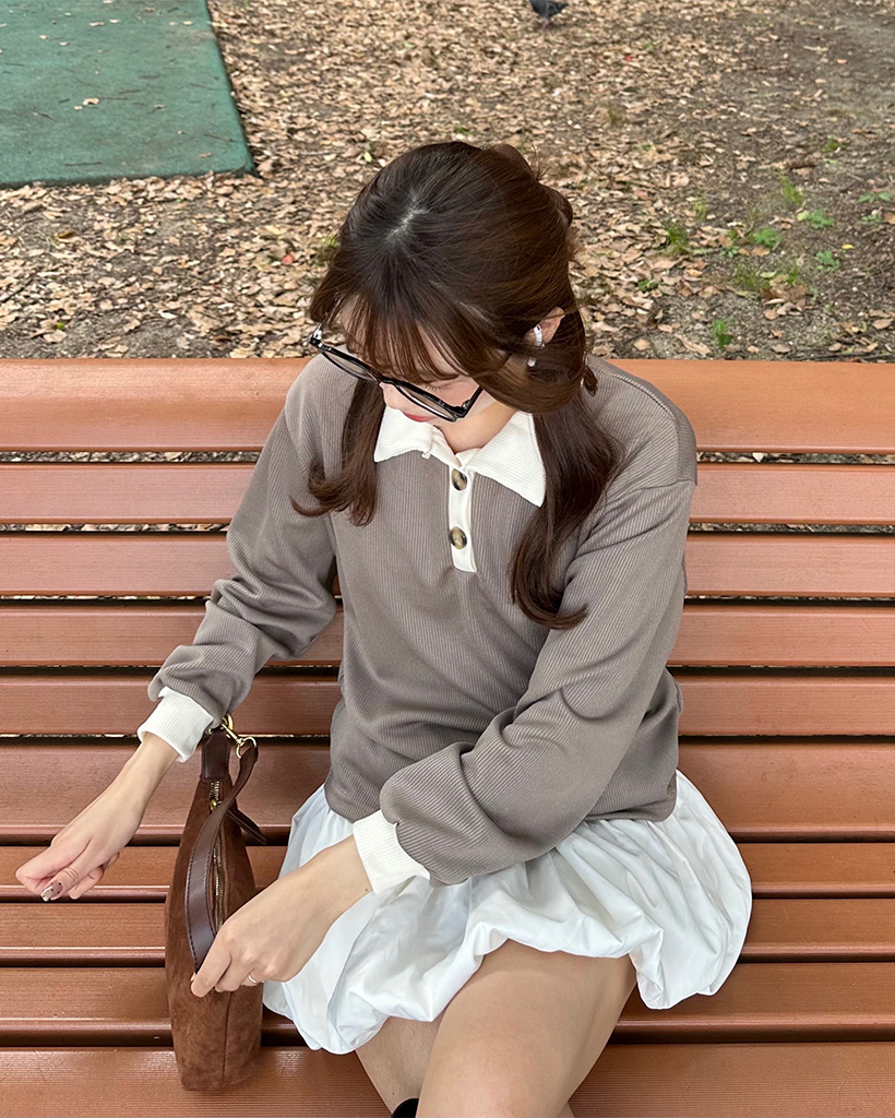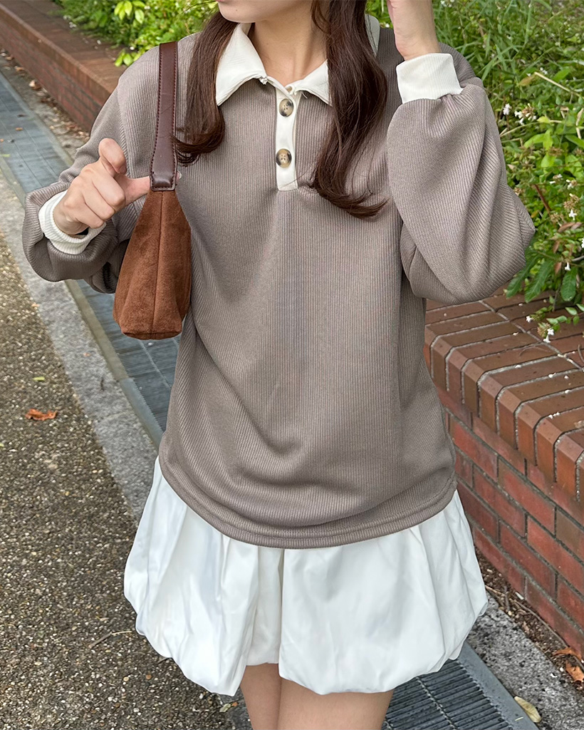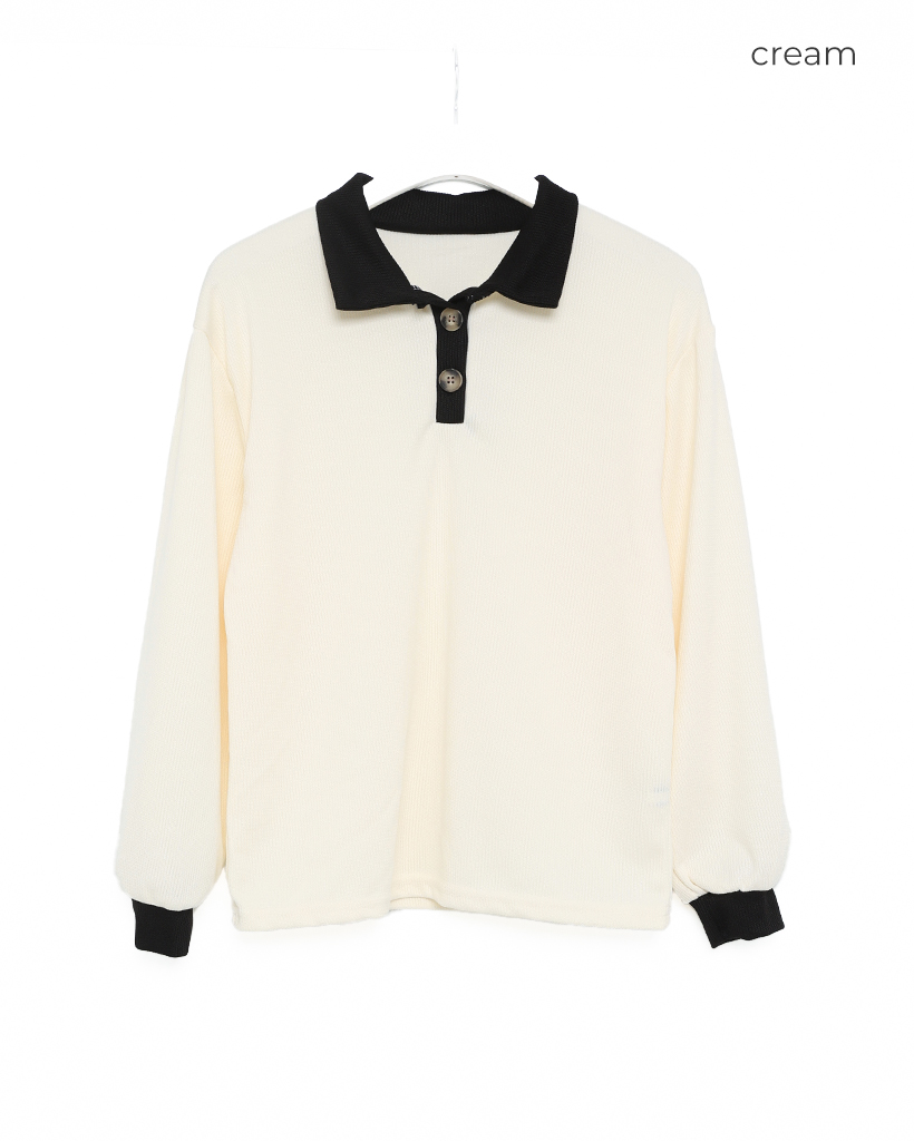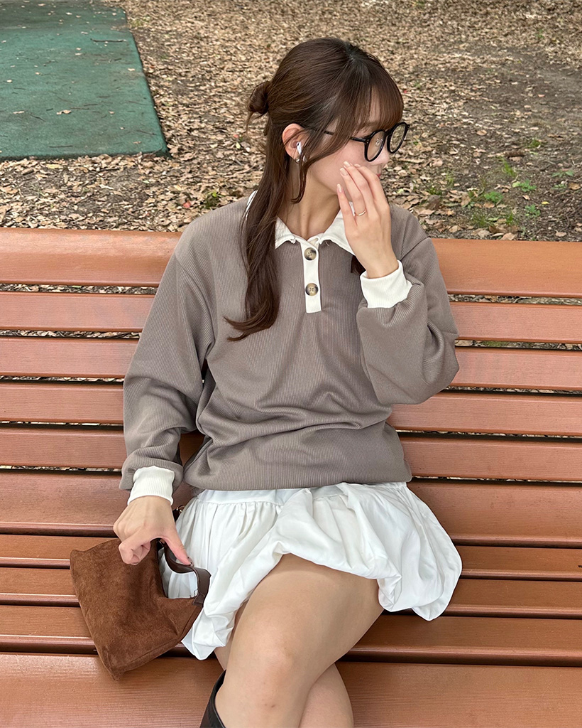 オープンカラダブルボタンーニット