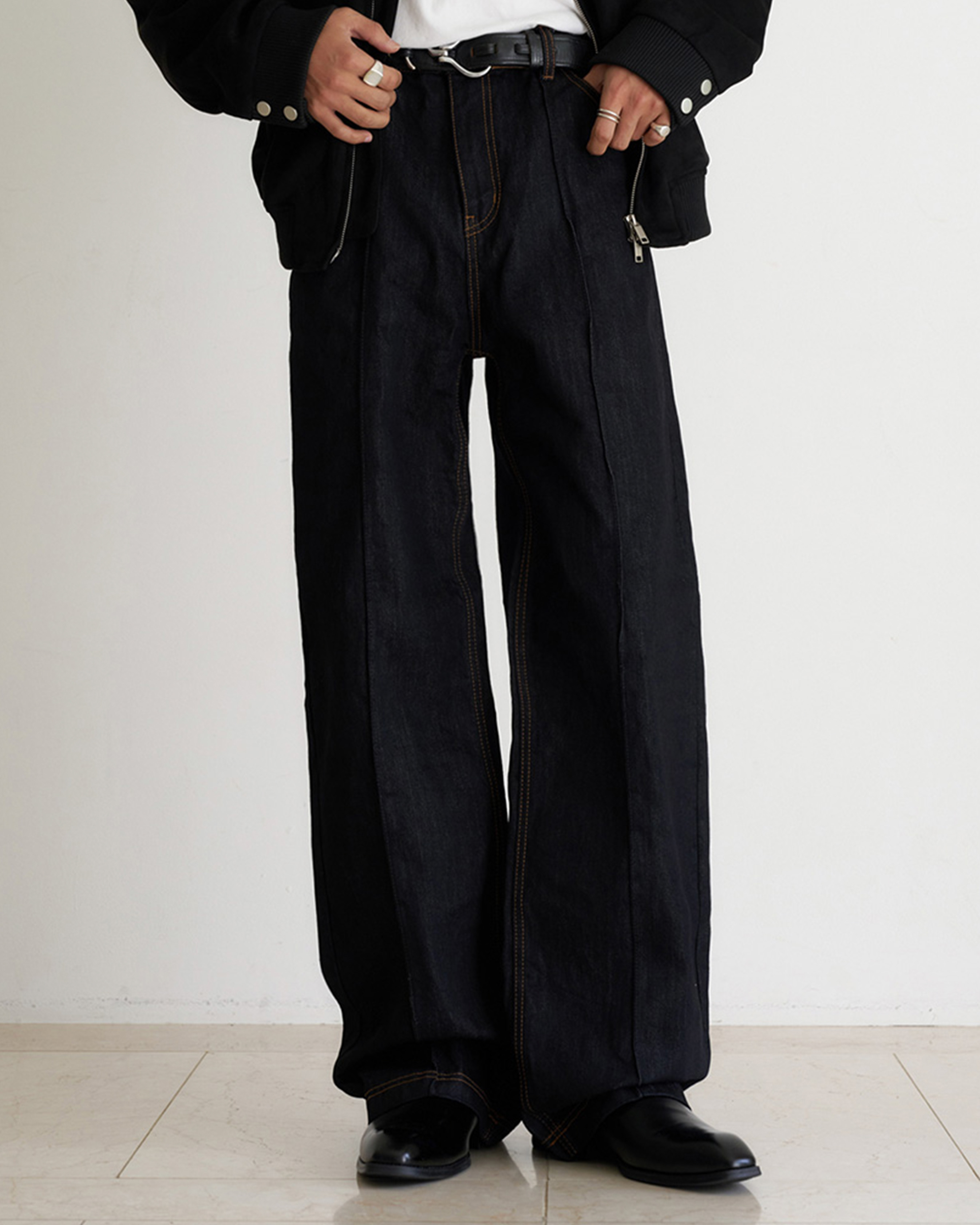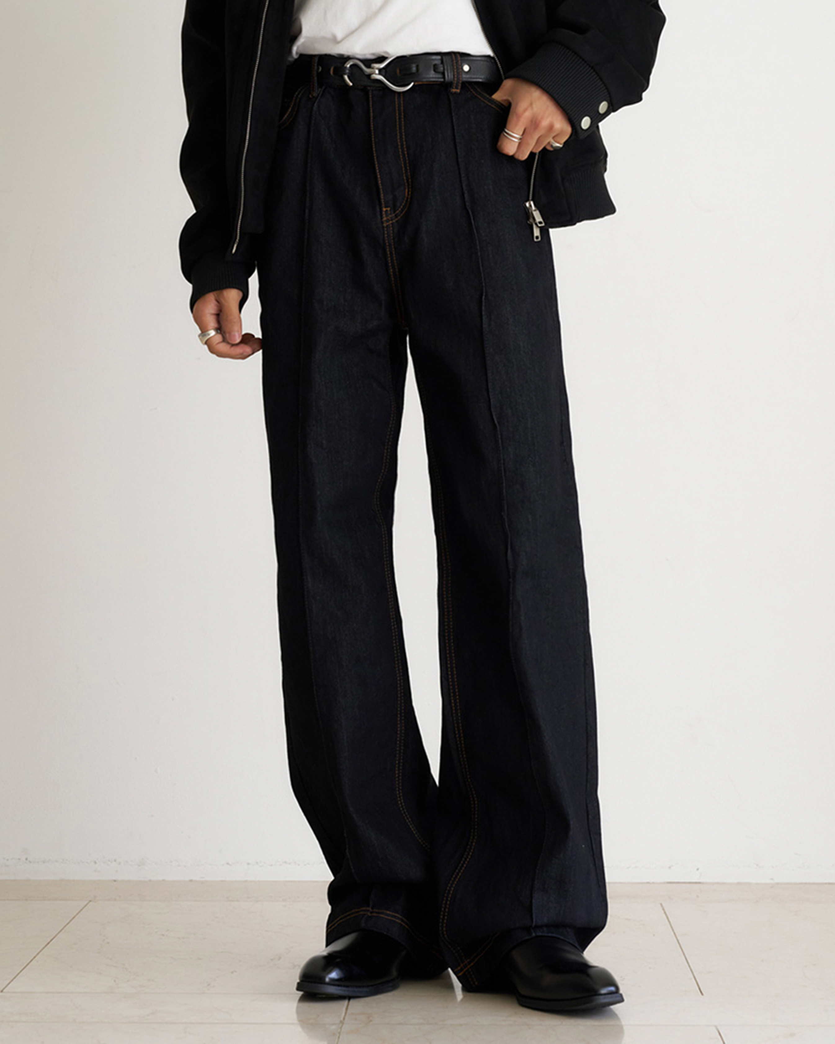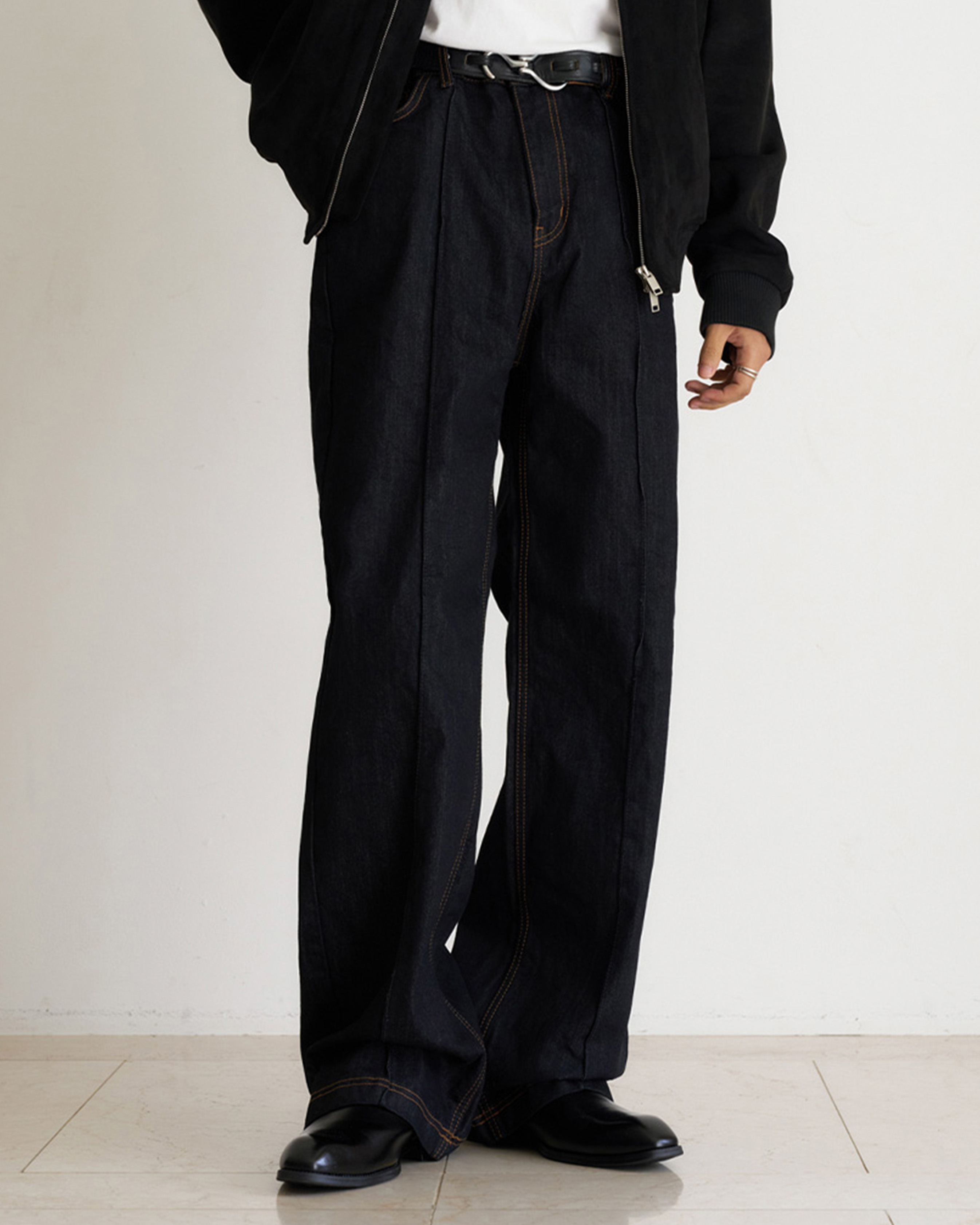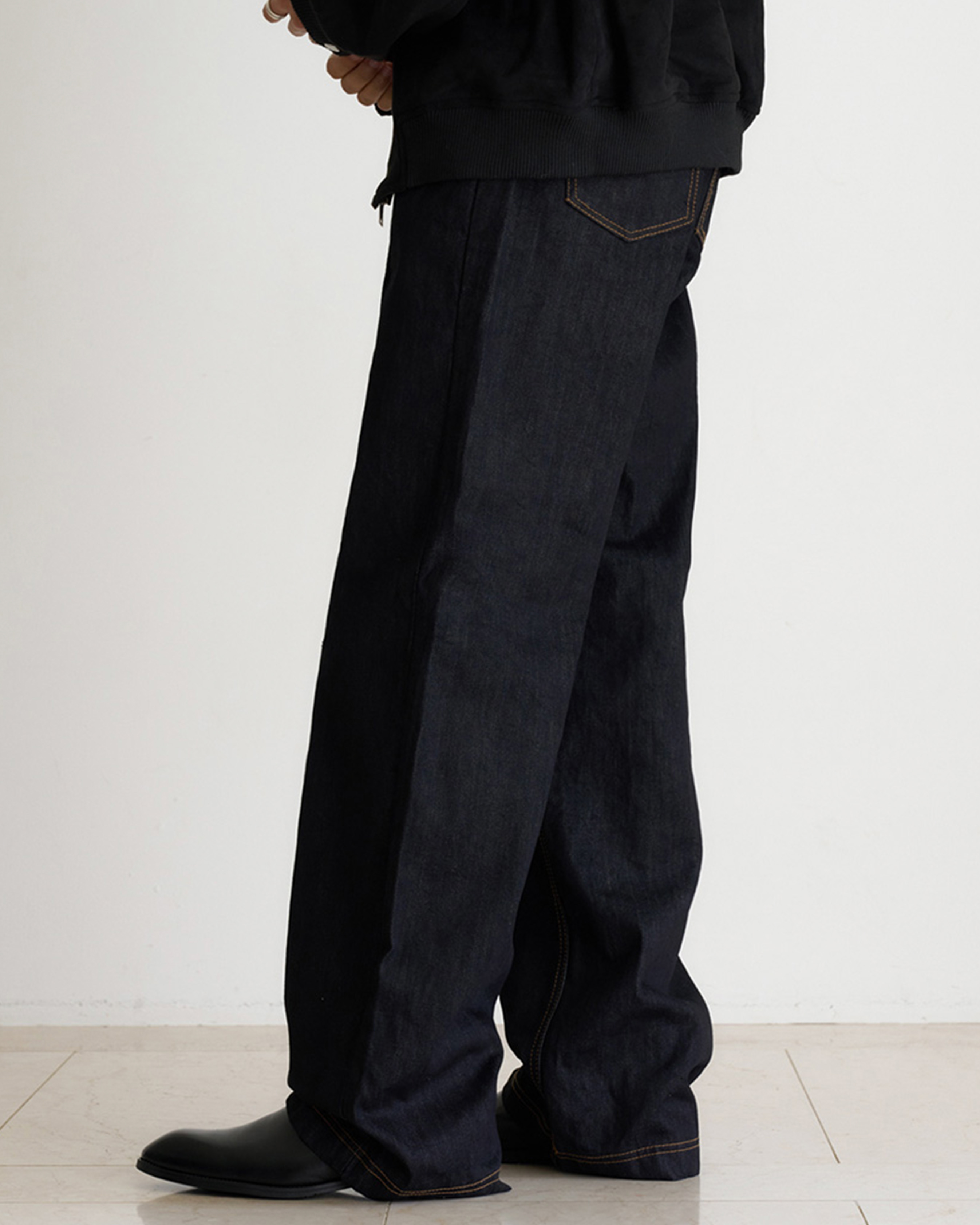 [12回再販](ORIGINAL) ピンタックストレートデニムパンツ (black)