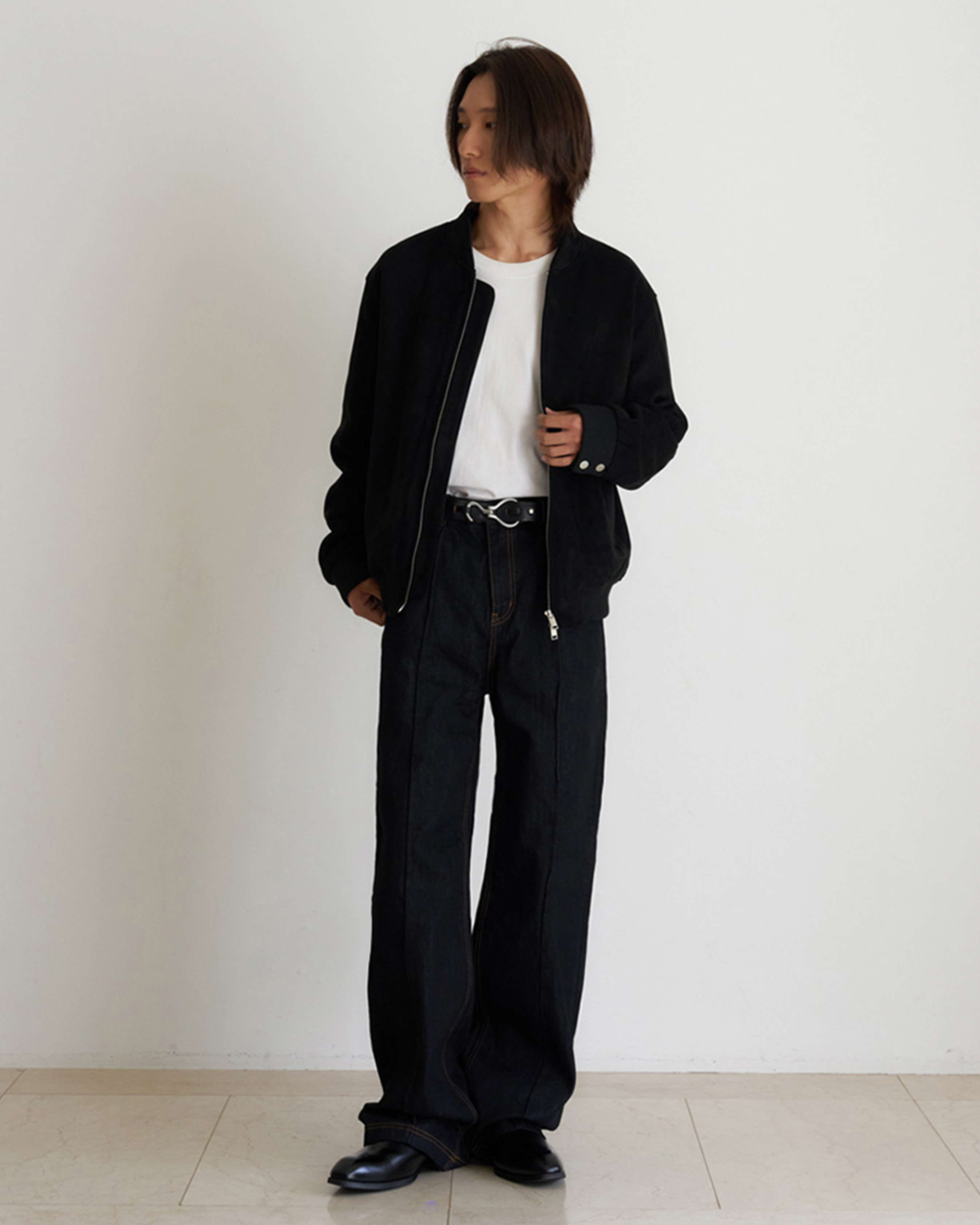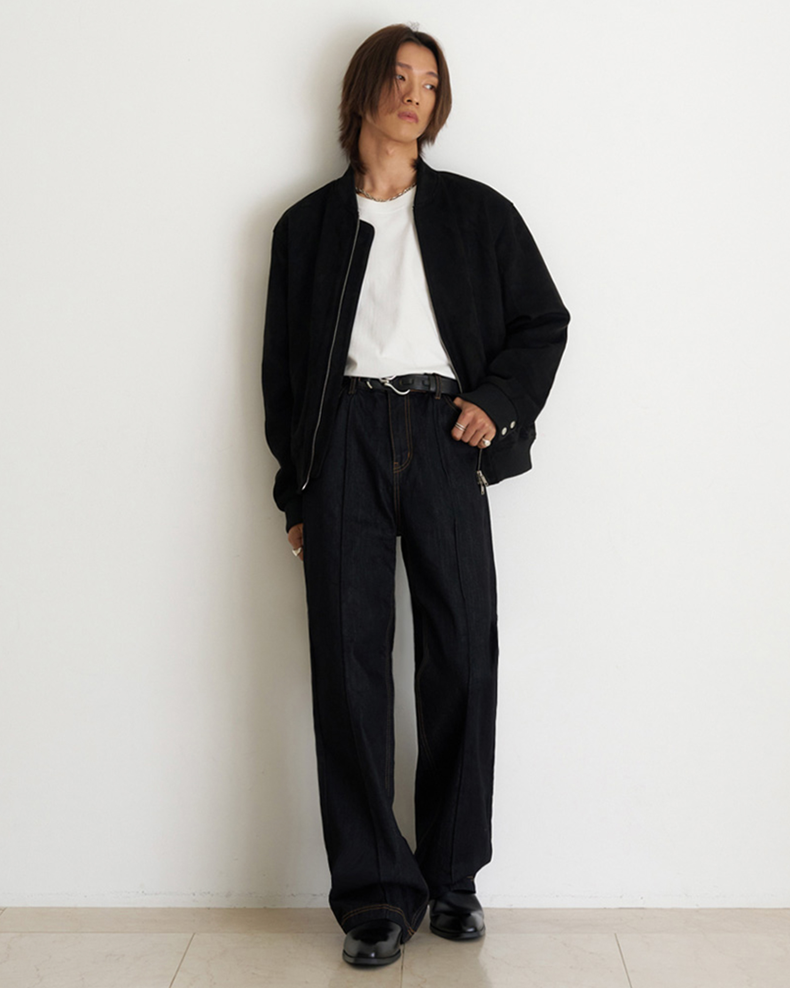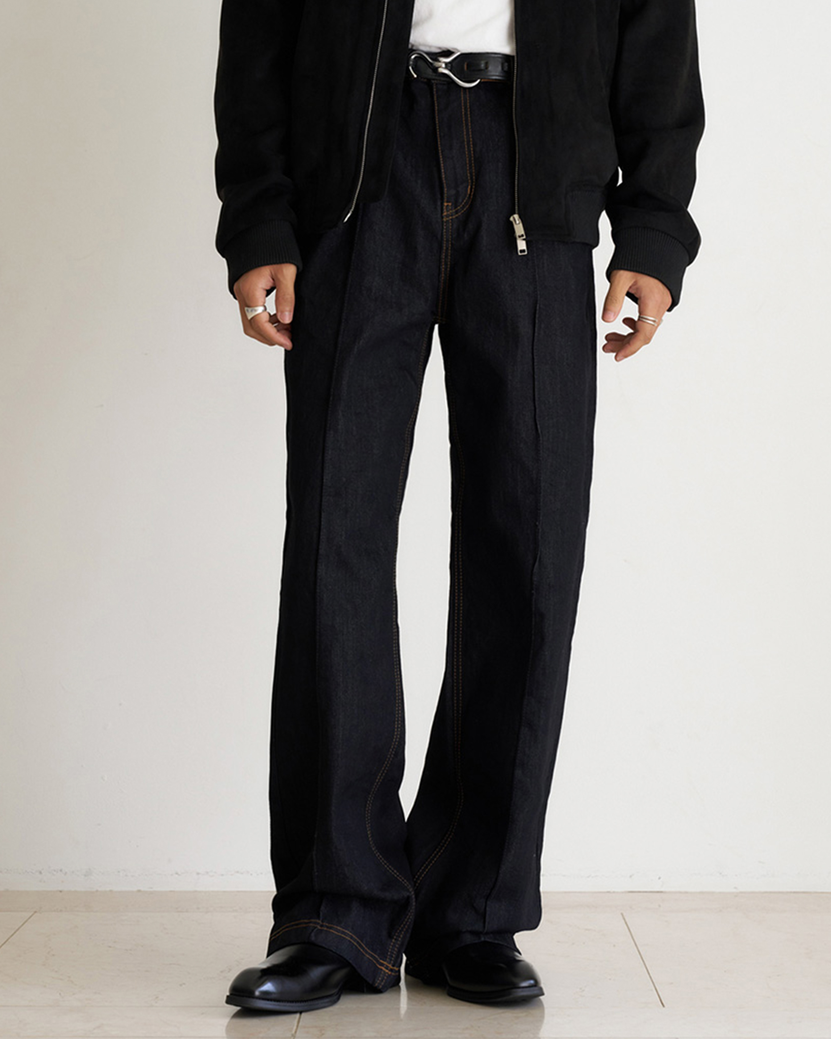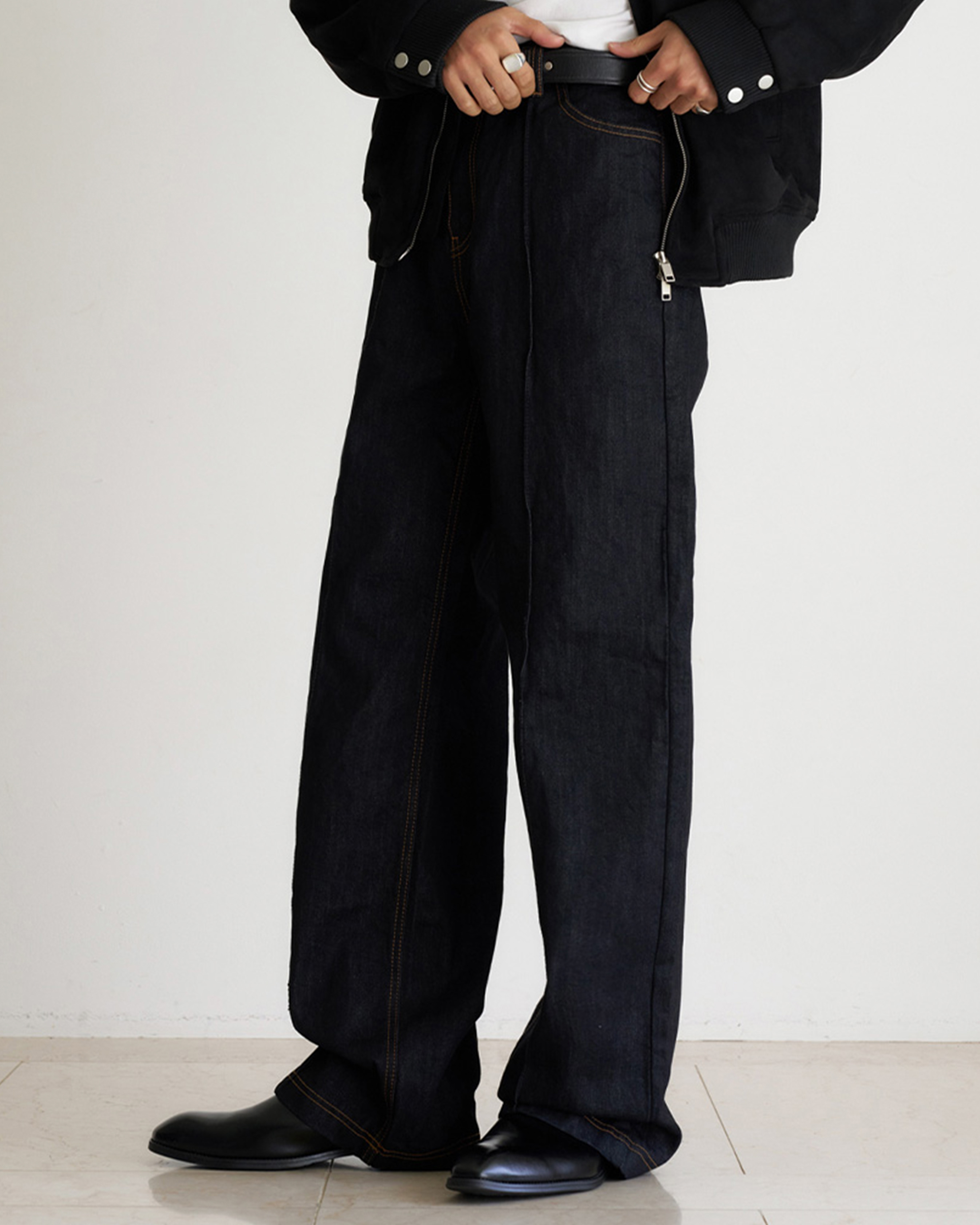 [12回再販](ORIGINAL) ピンタックストレートデニムパンツ (black)