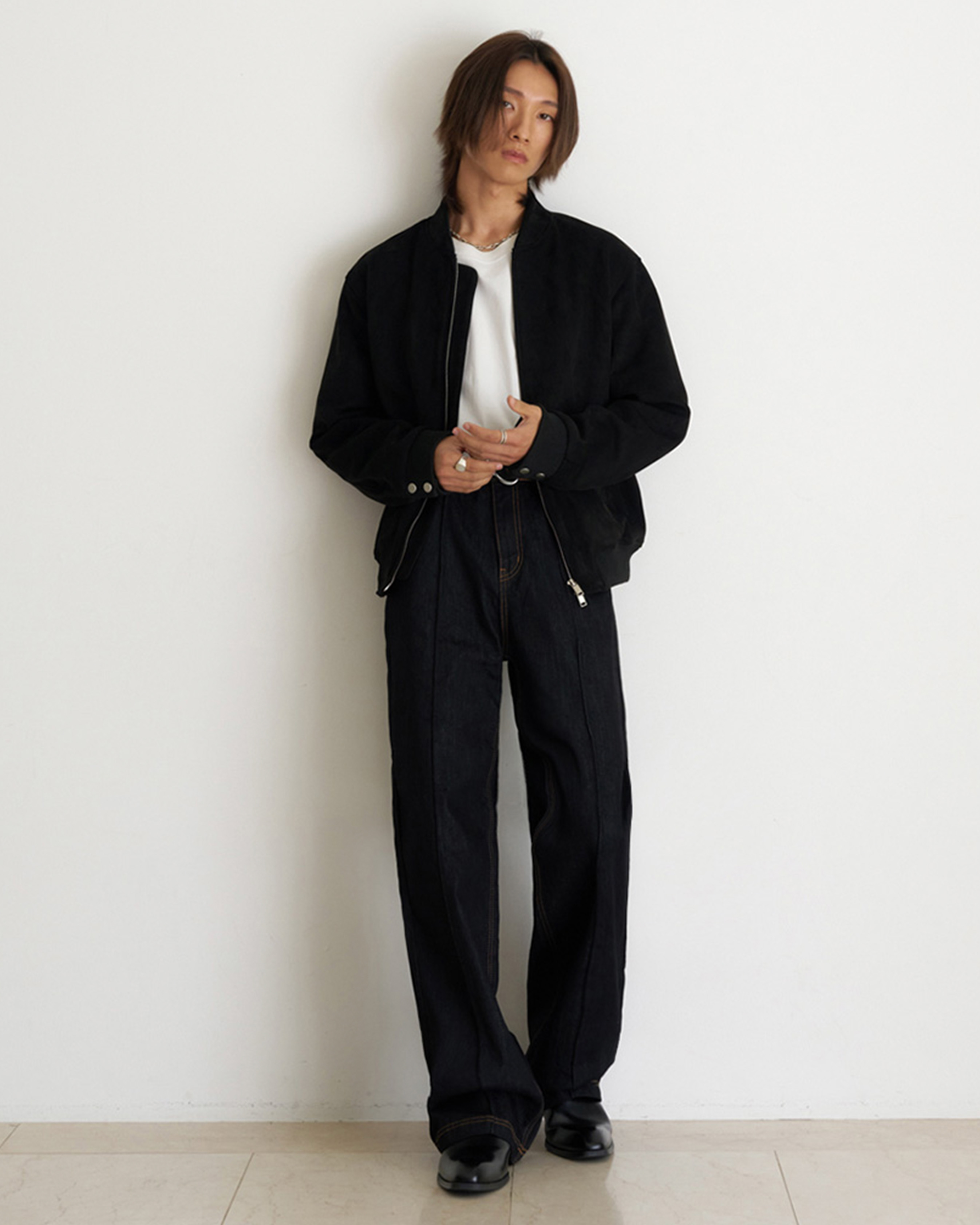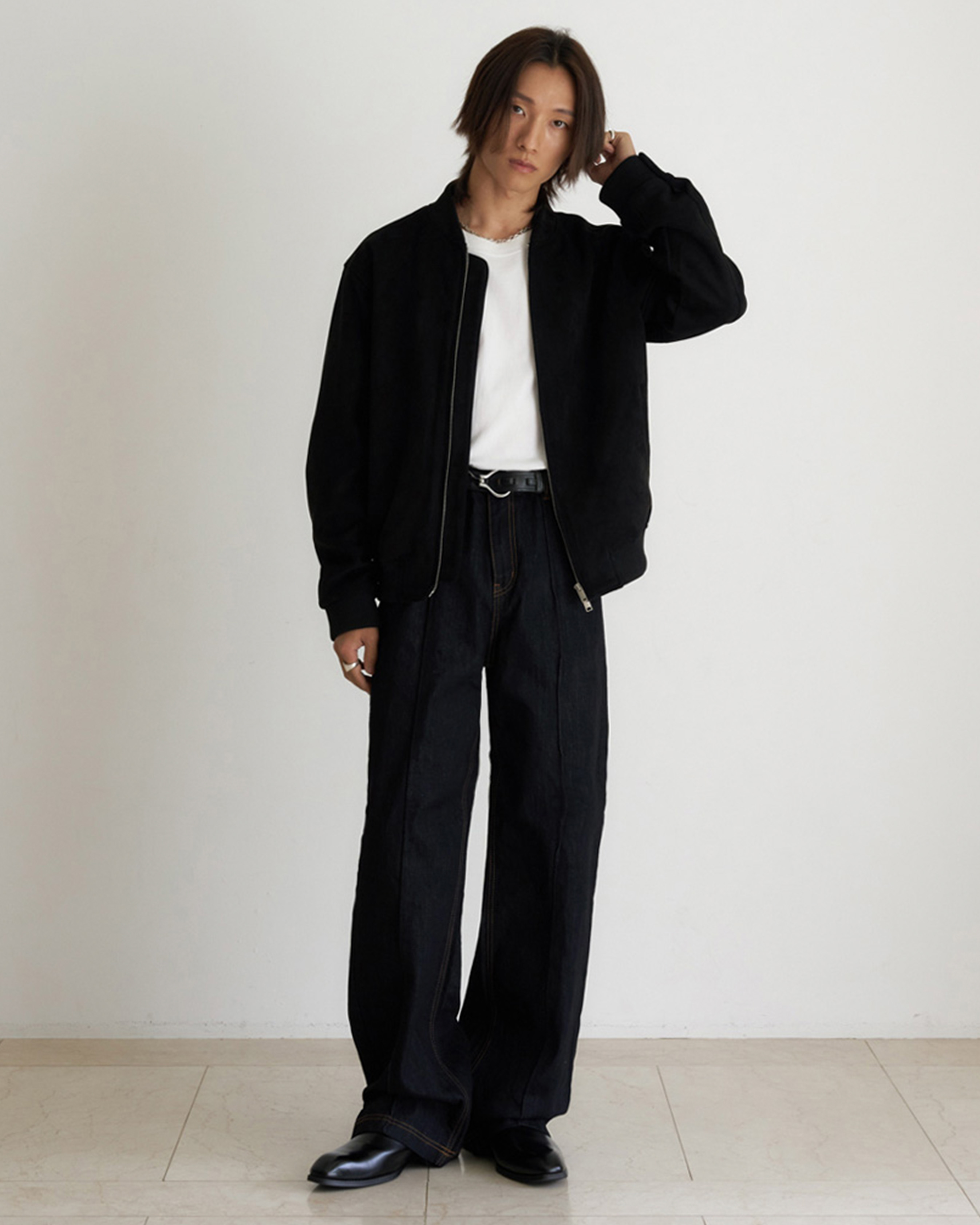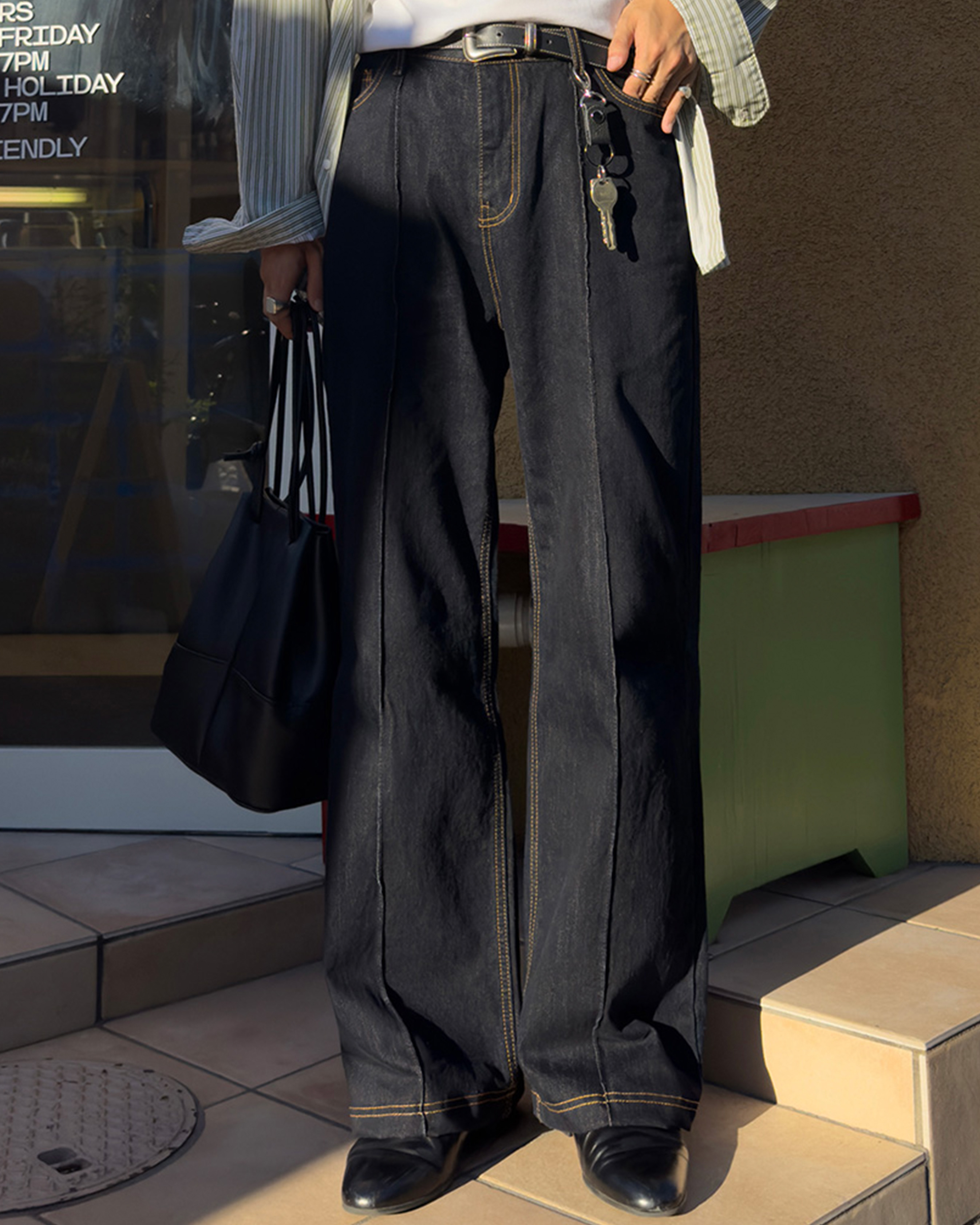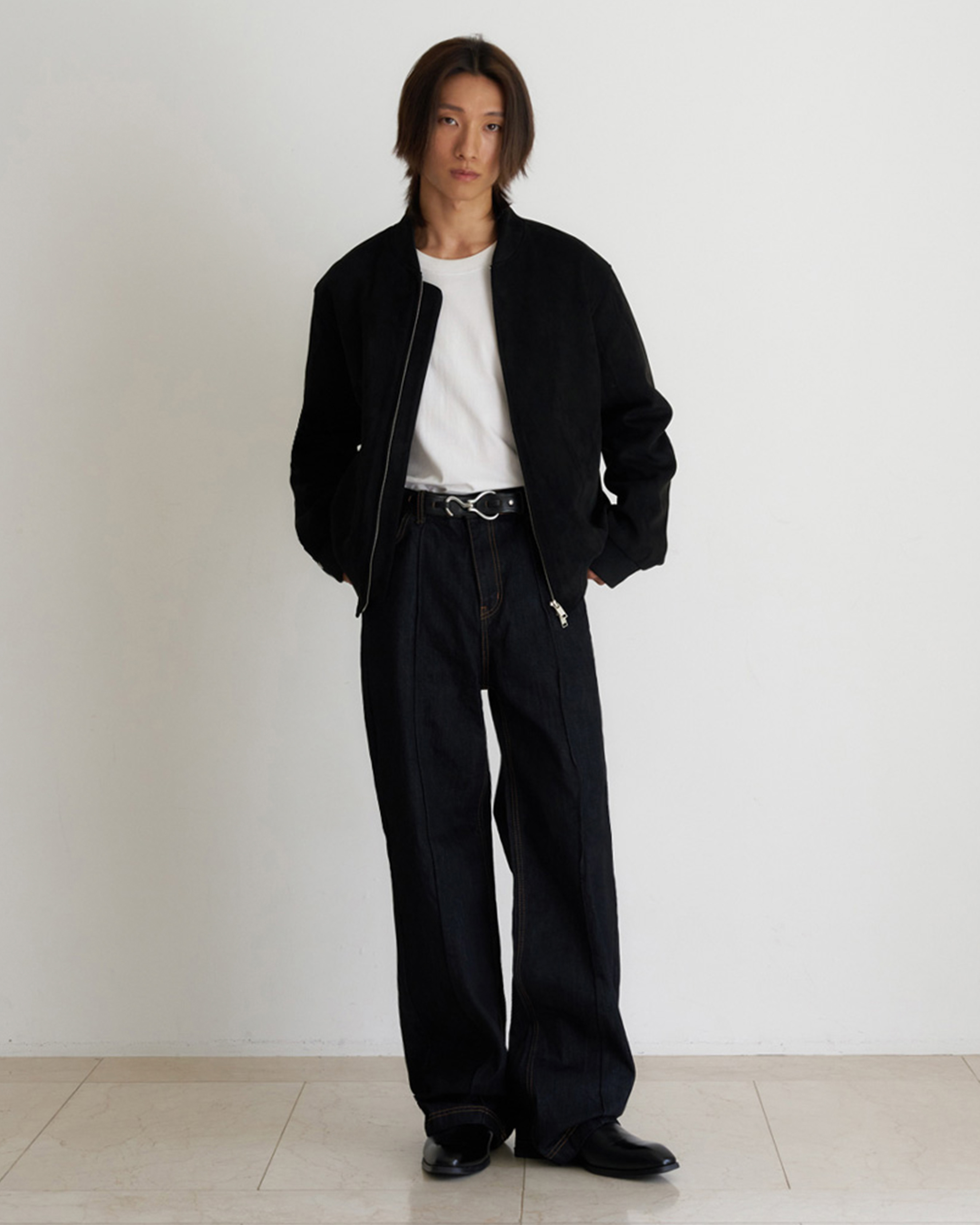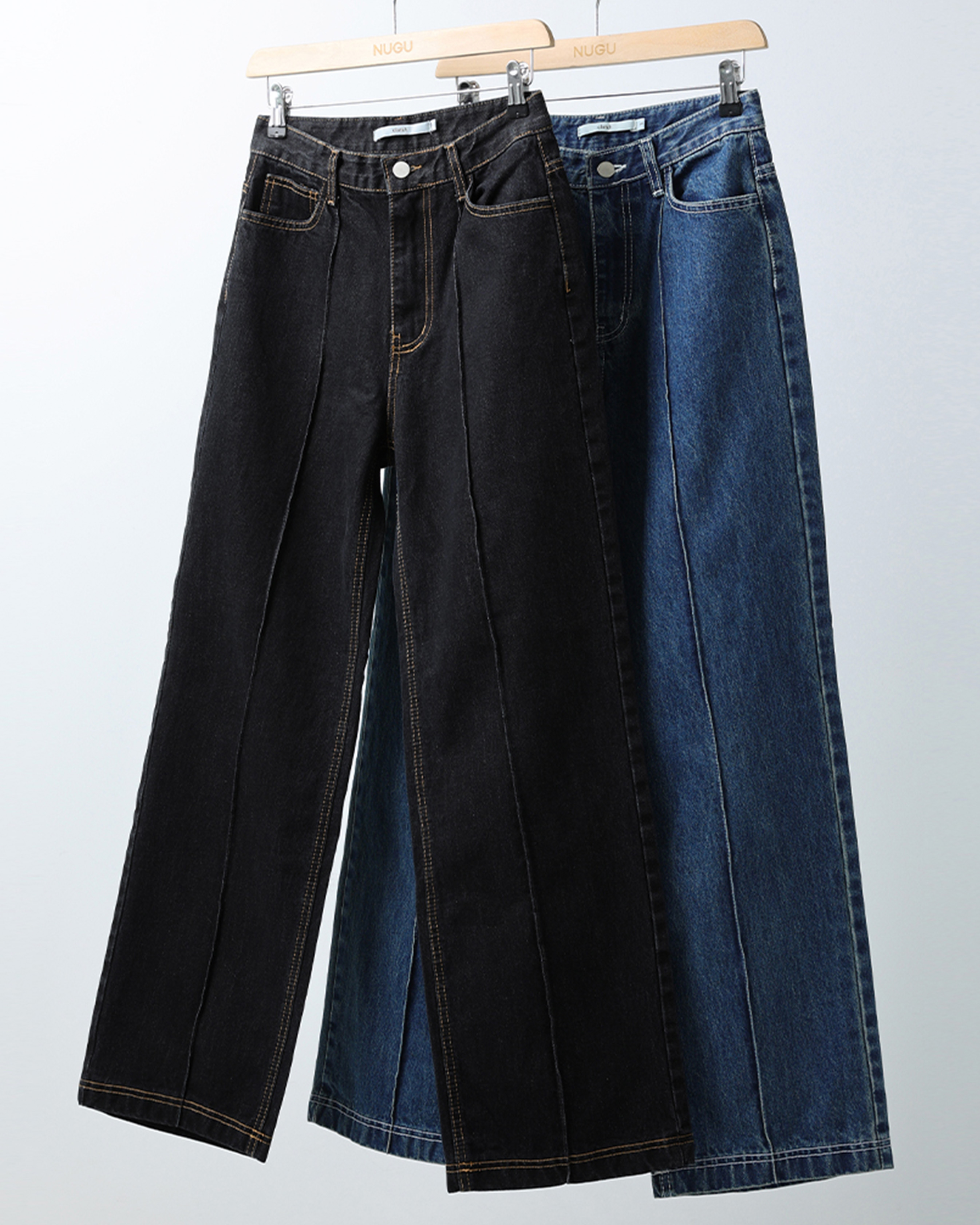 [12回再販](ORIGINAL) ピンタックストレートデニムパンツ (black)