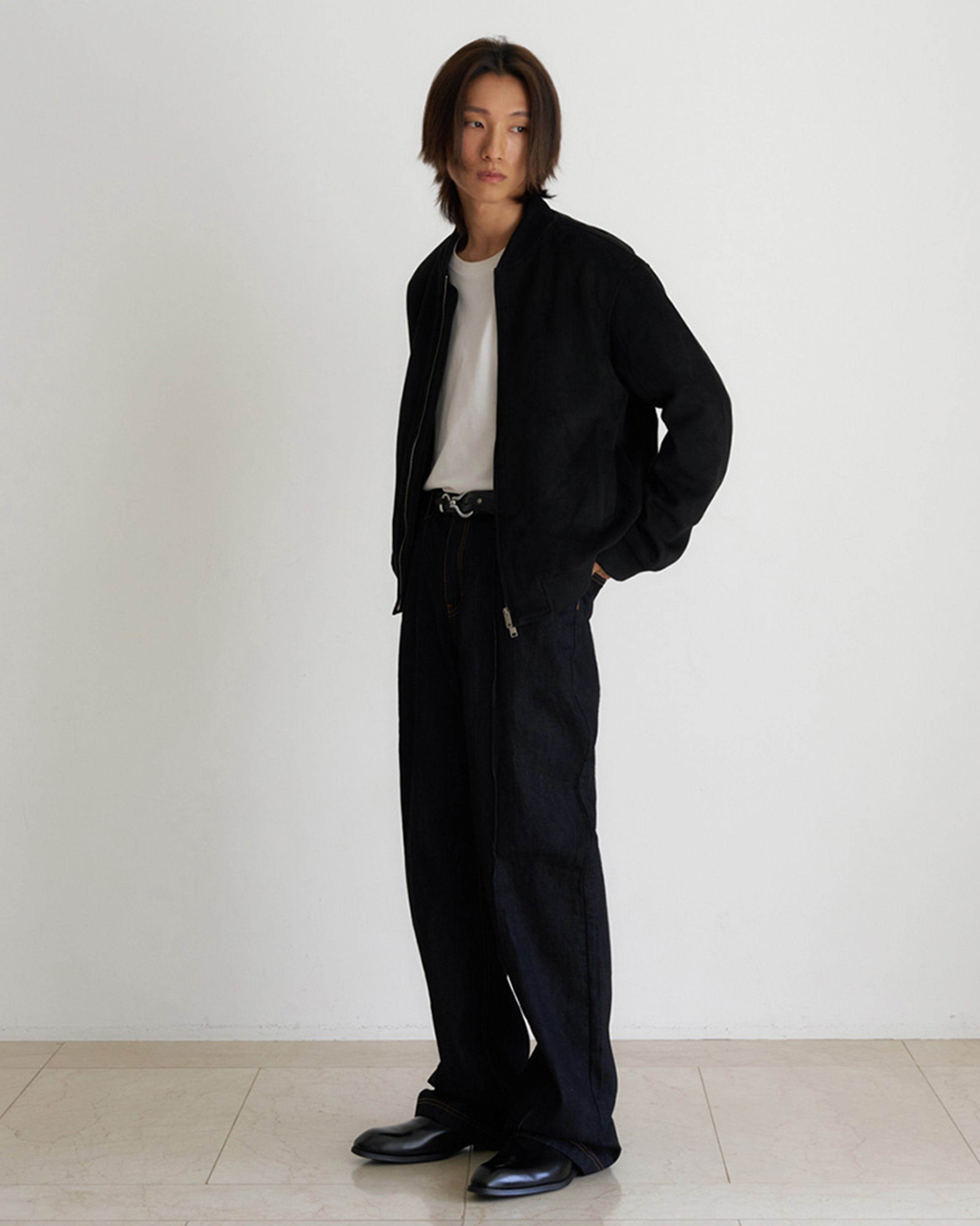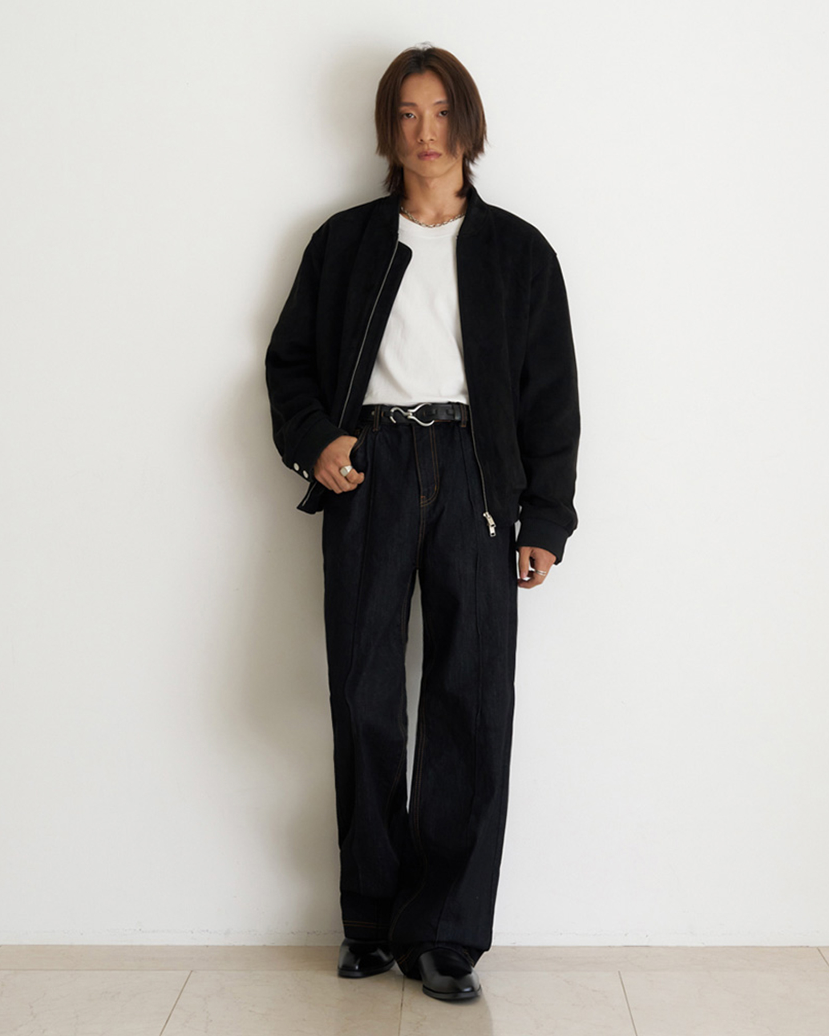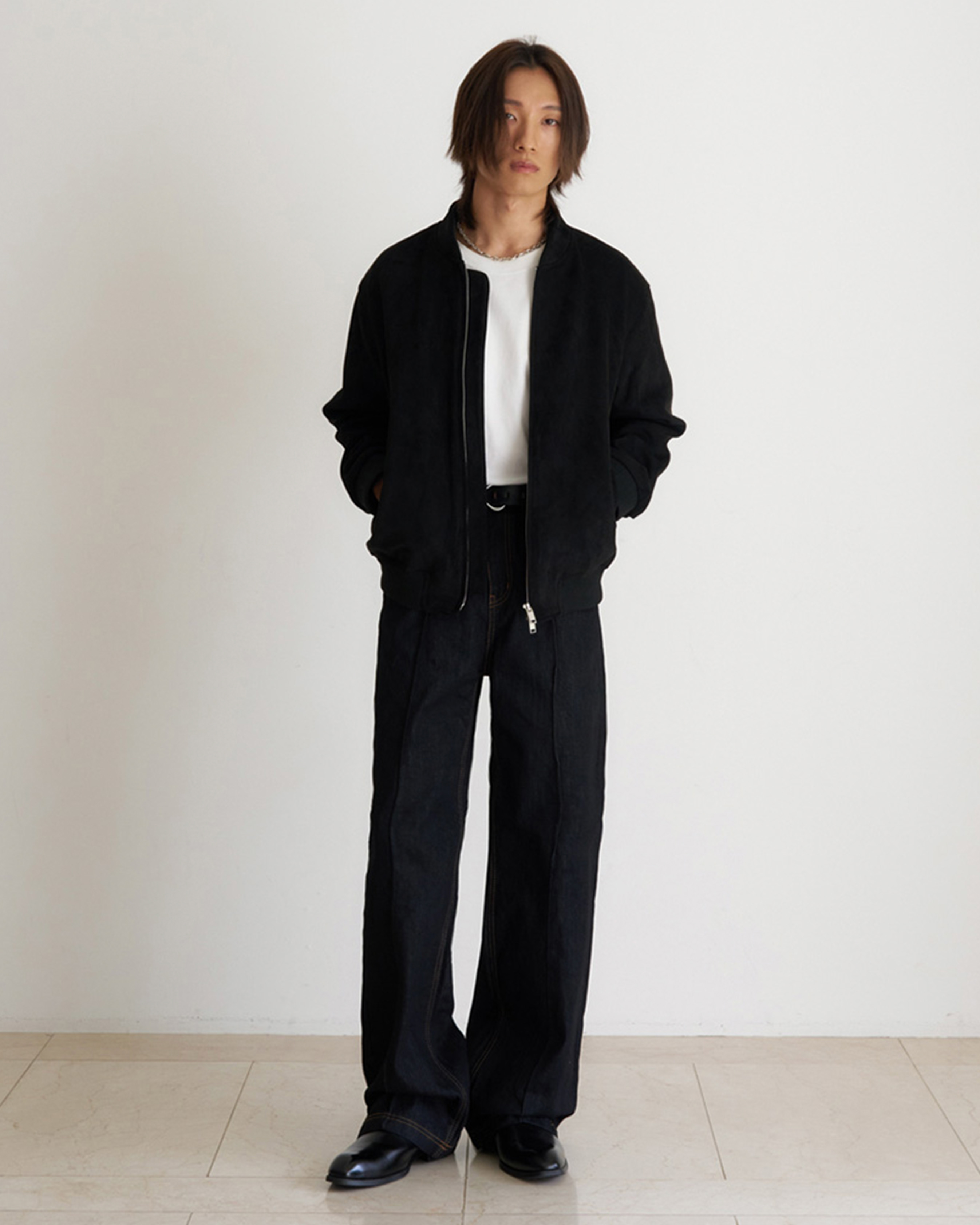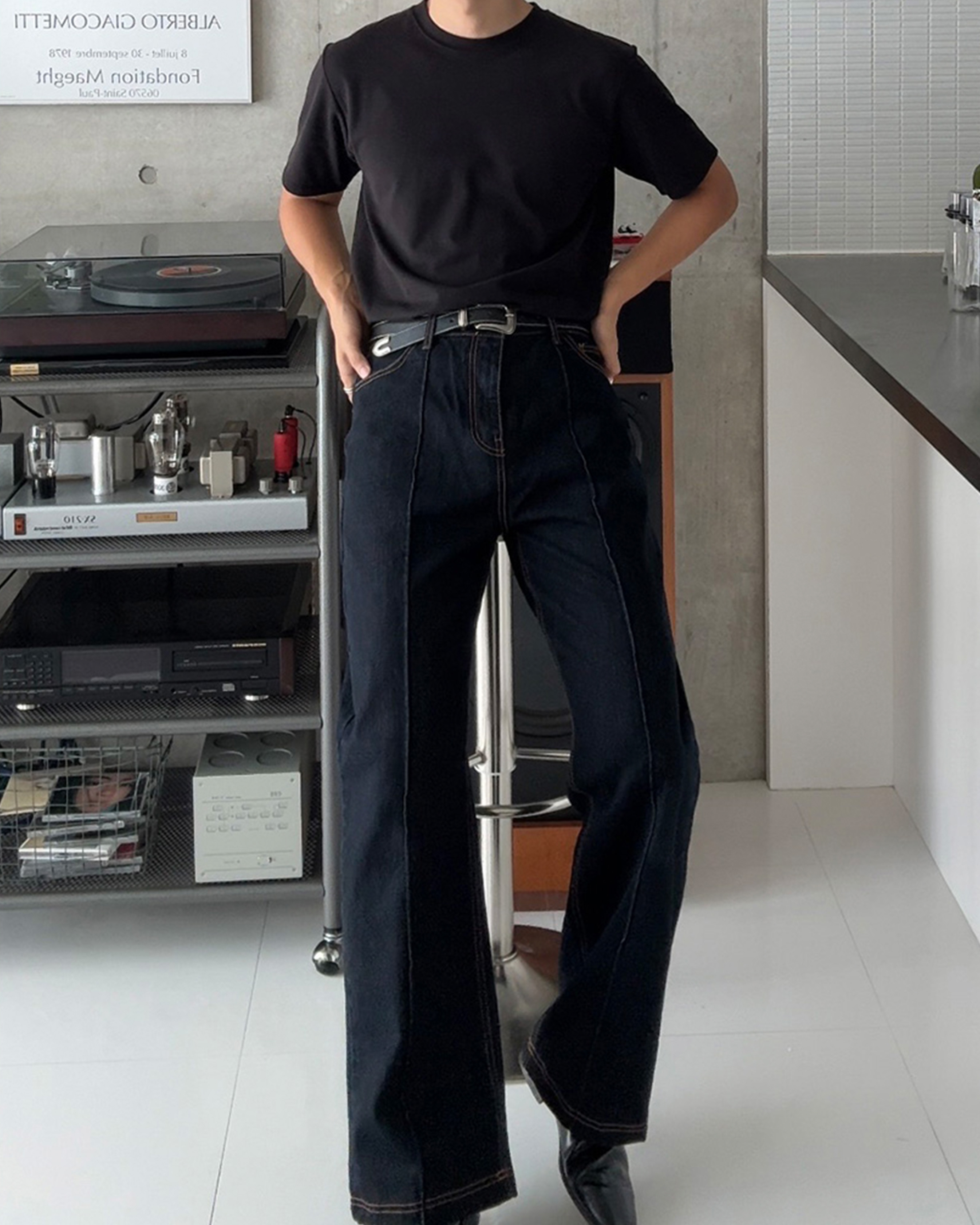 [12回再販](ORIGINAL) ピンタックストレートデニムパンツ (black)