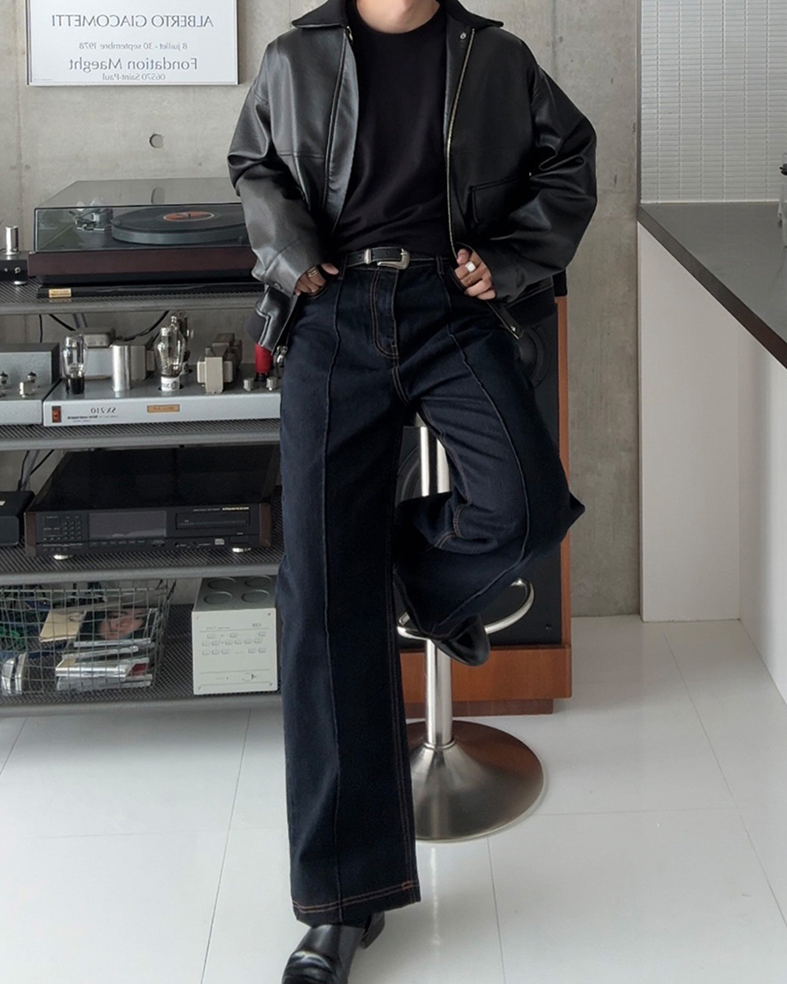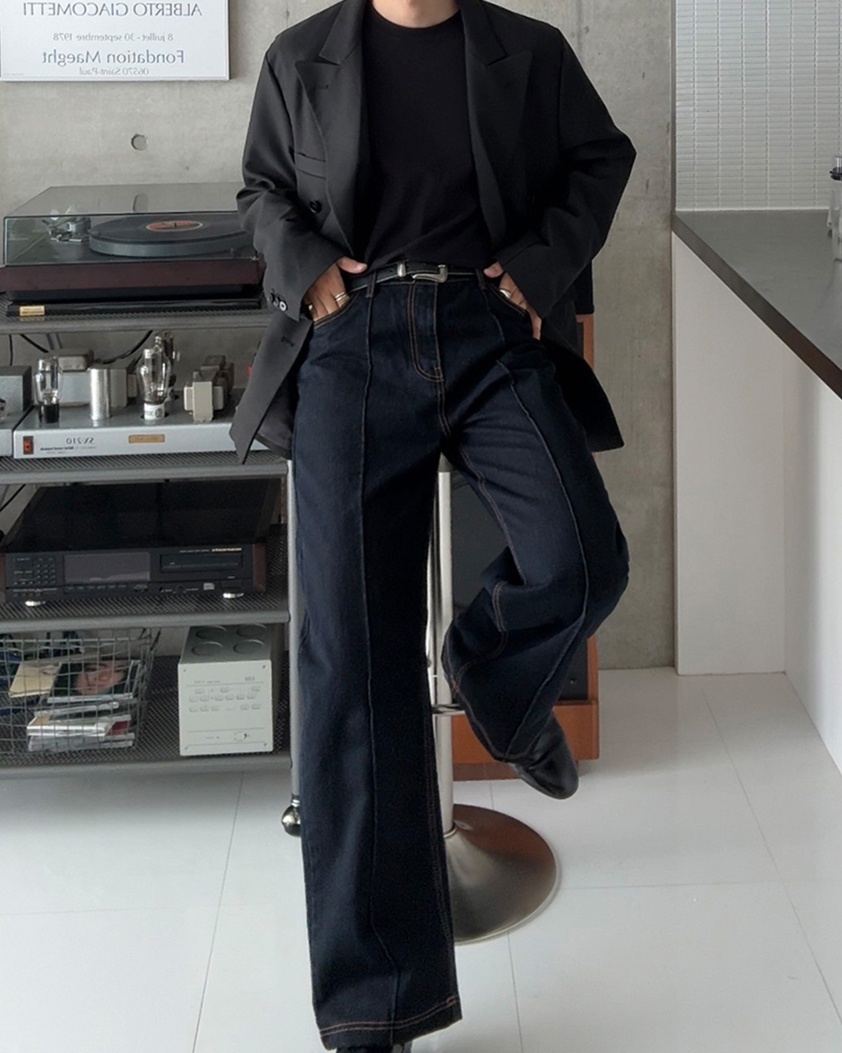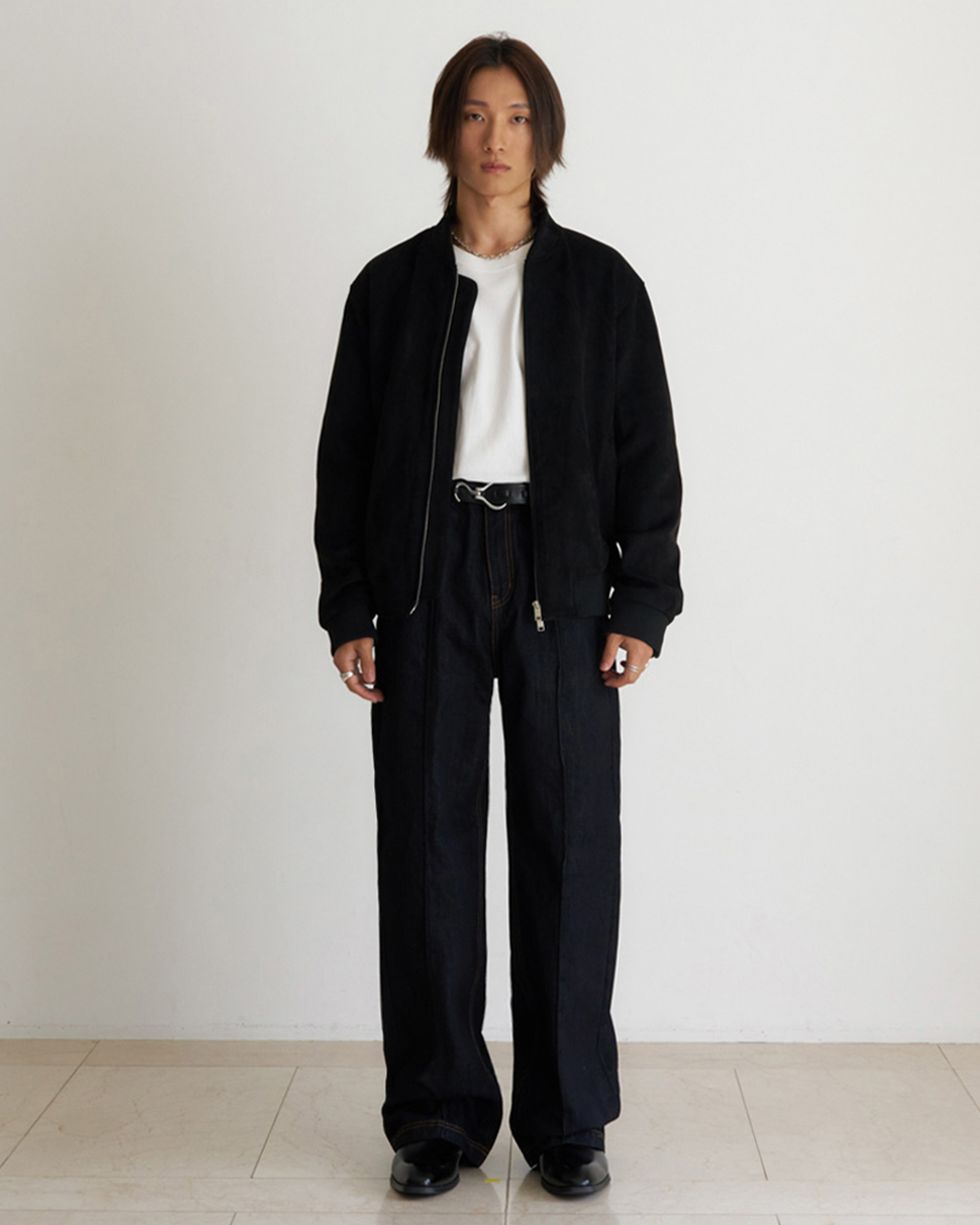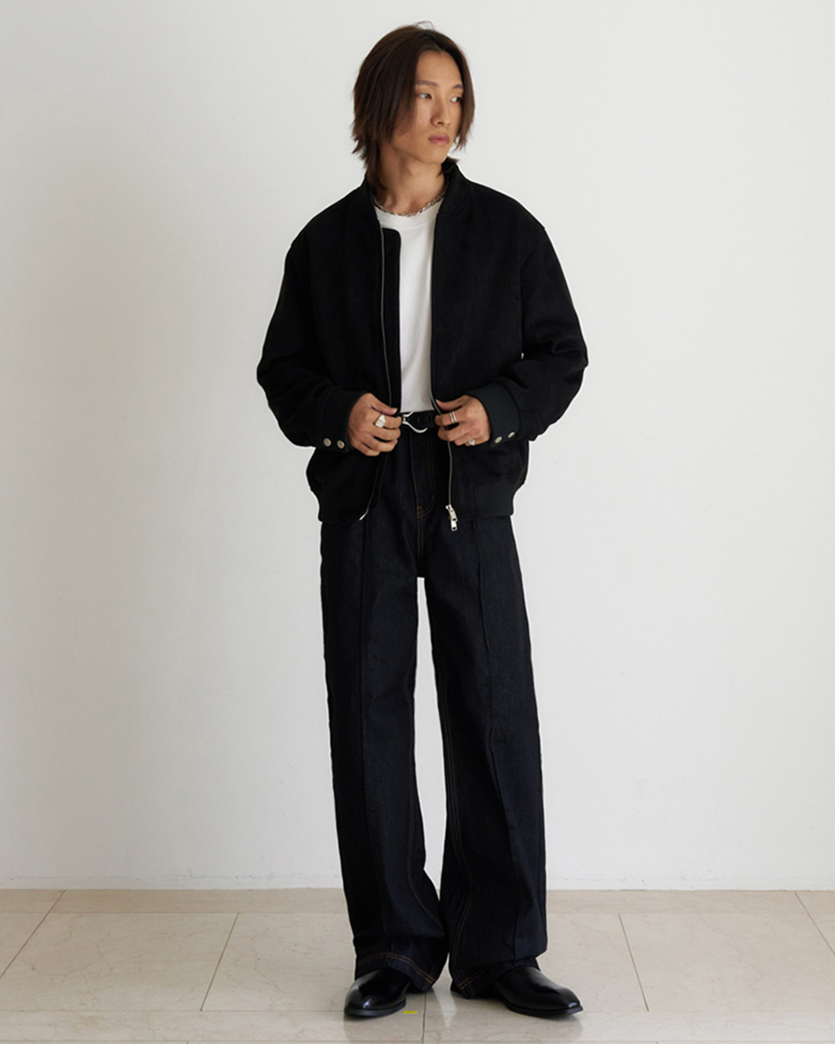 [12回再販](ORIGINAL) ピンタックストレートデニムパンツ (black)