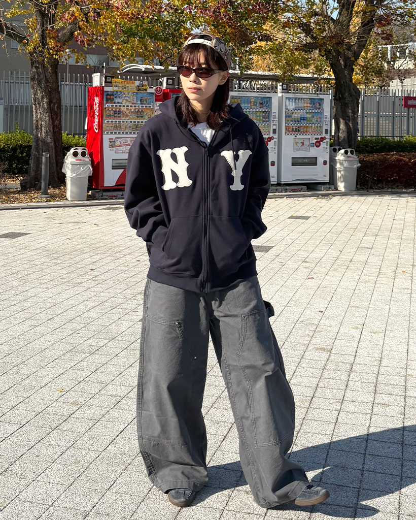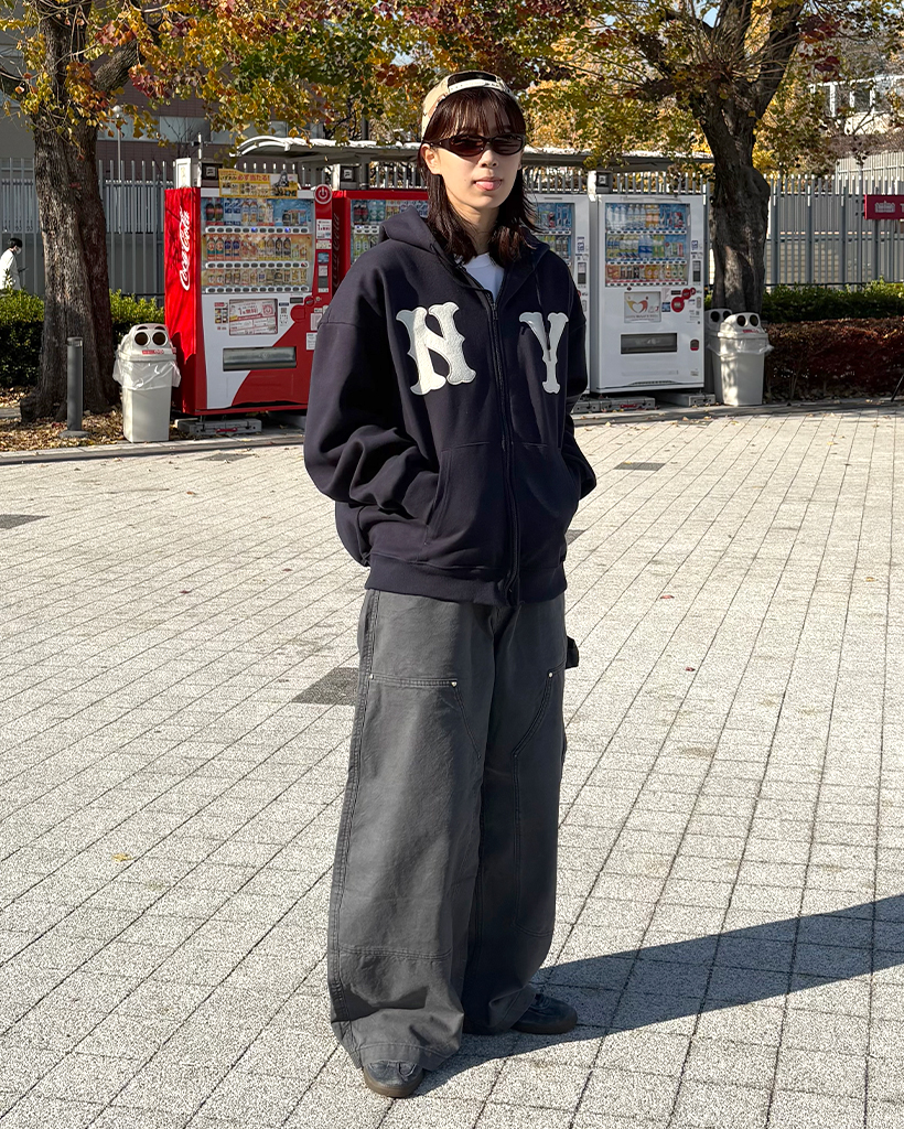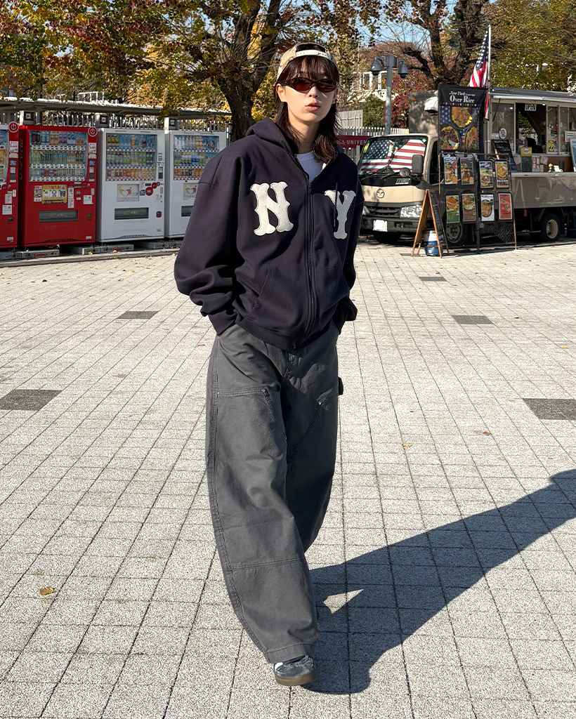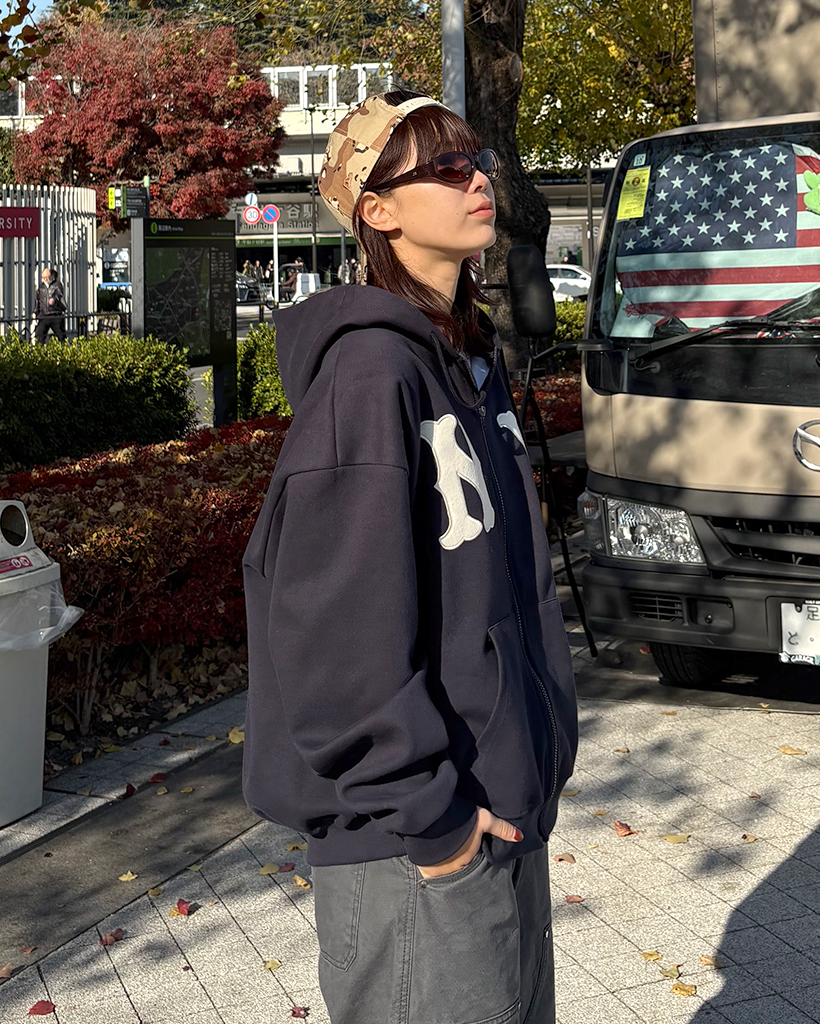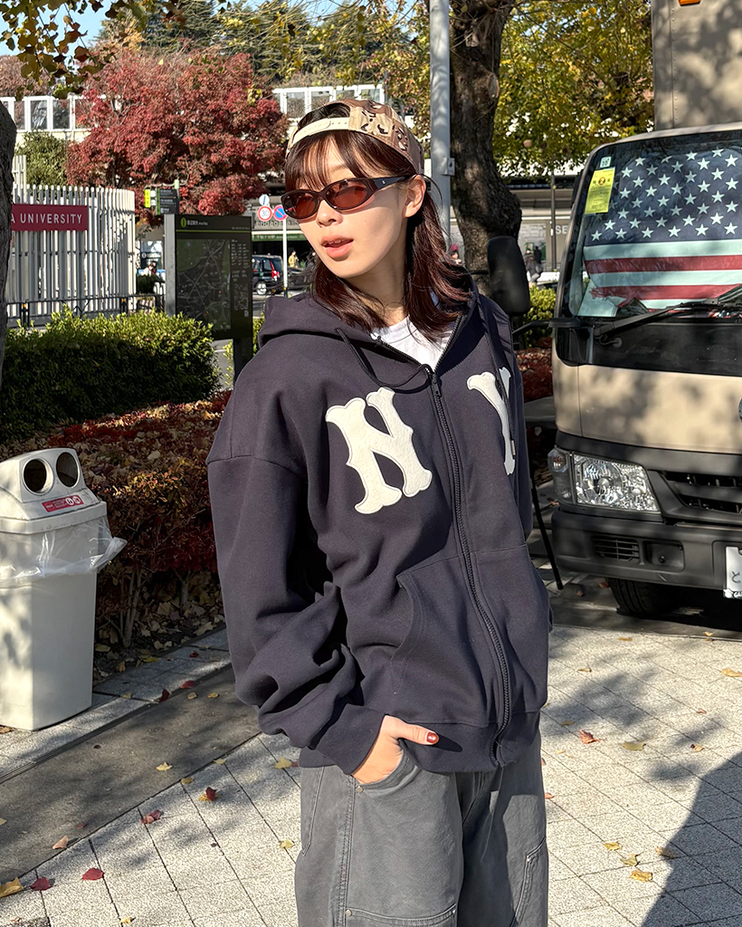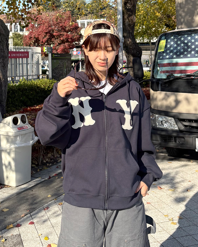 (ユニセックス)ルーズフィットNYフード付きジップアップ