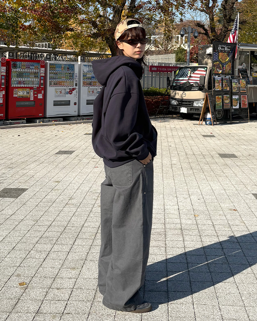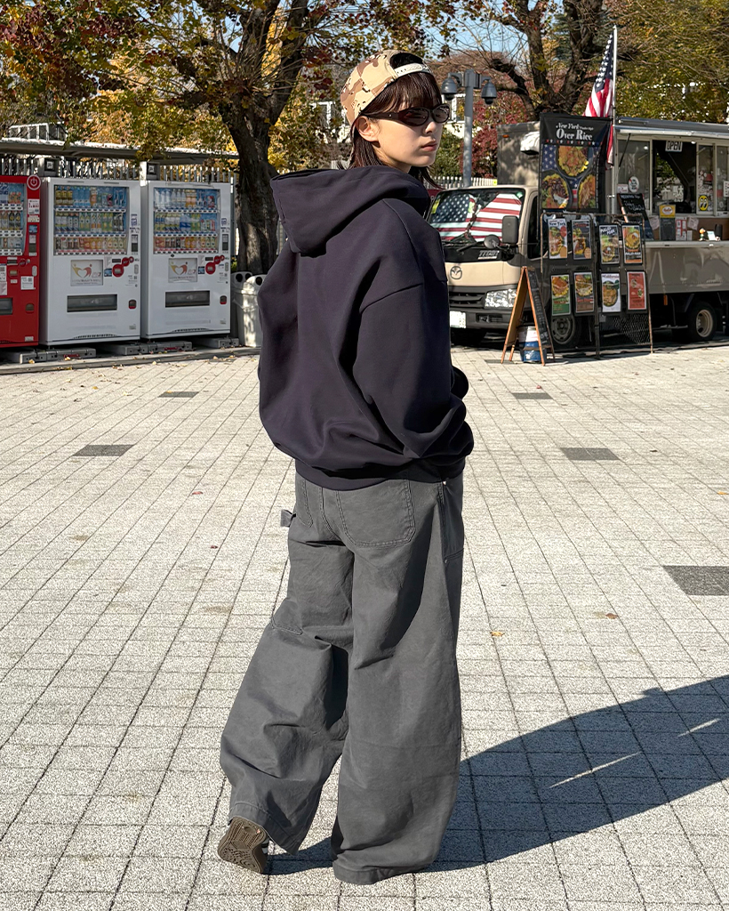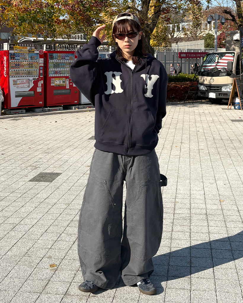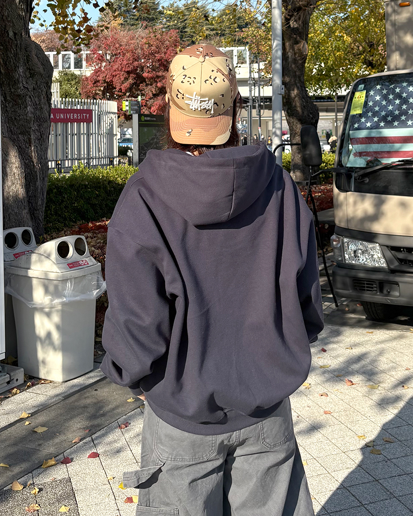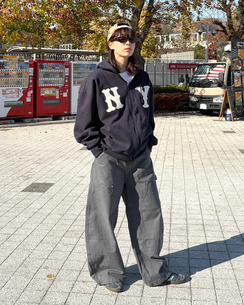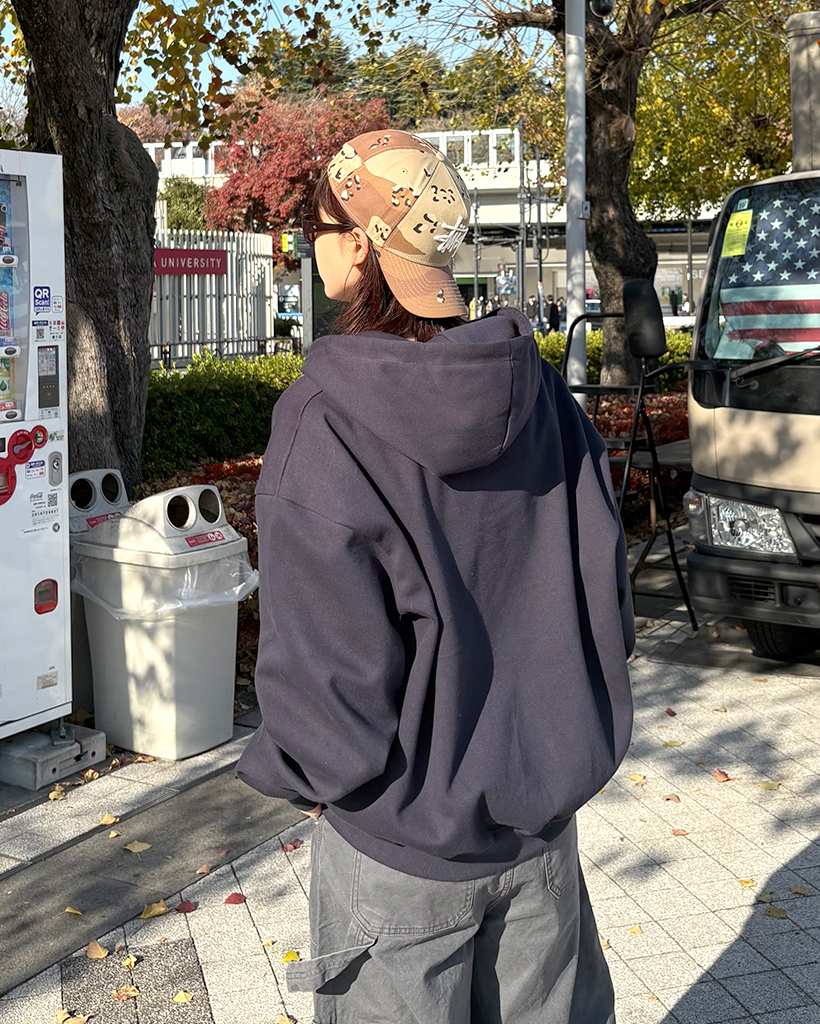 (ユニセックス)ルーズフィットNYフード付きジップアップ
