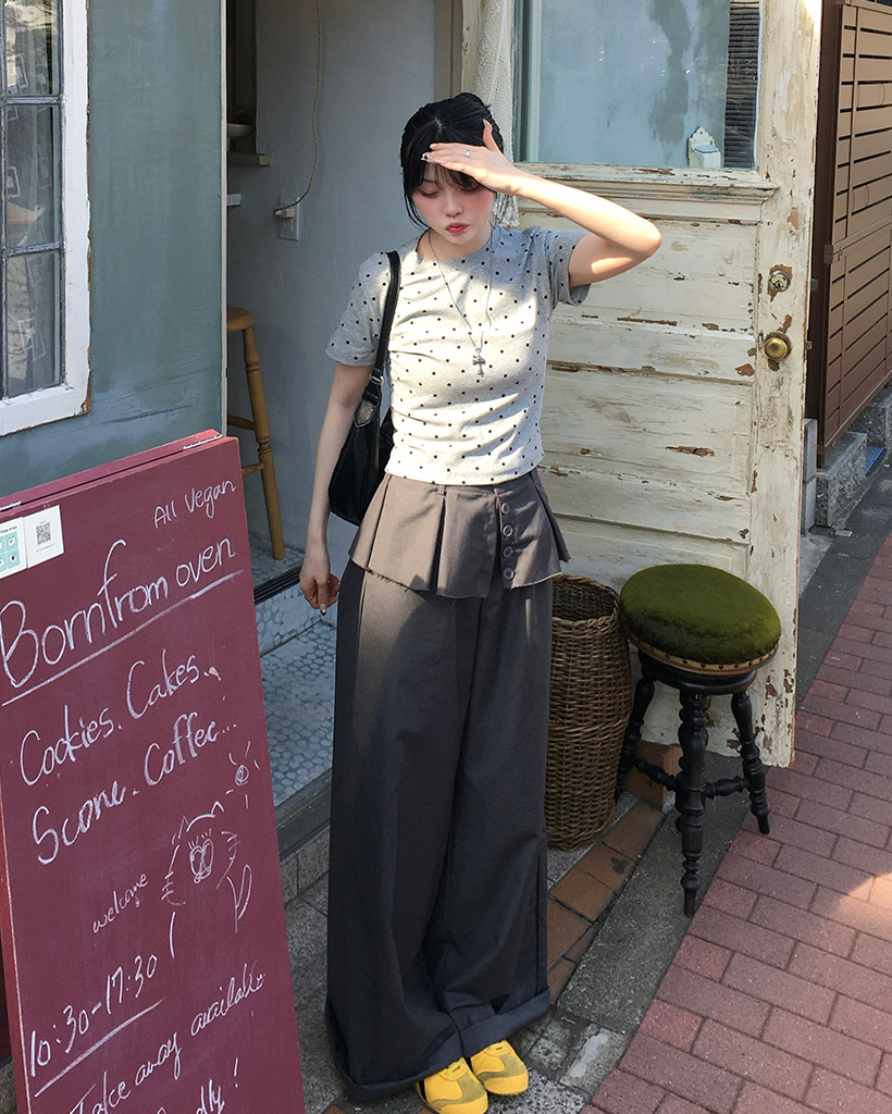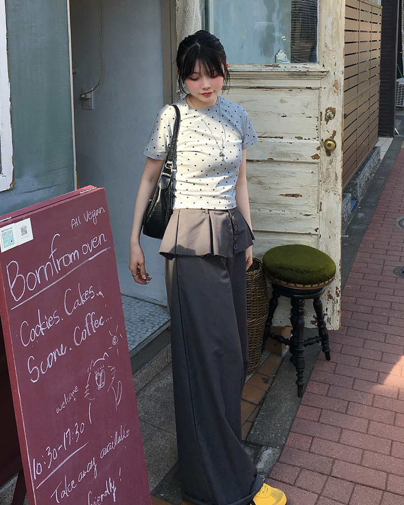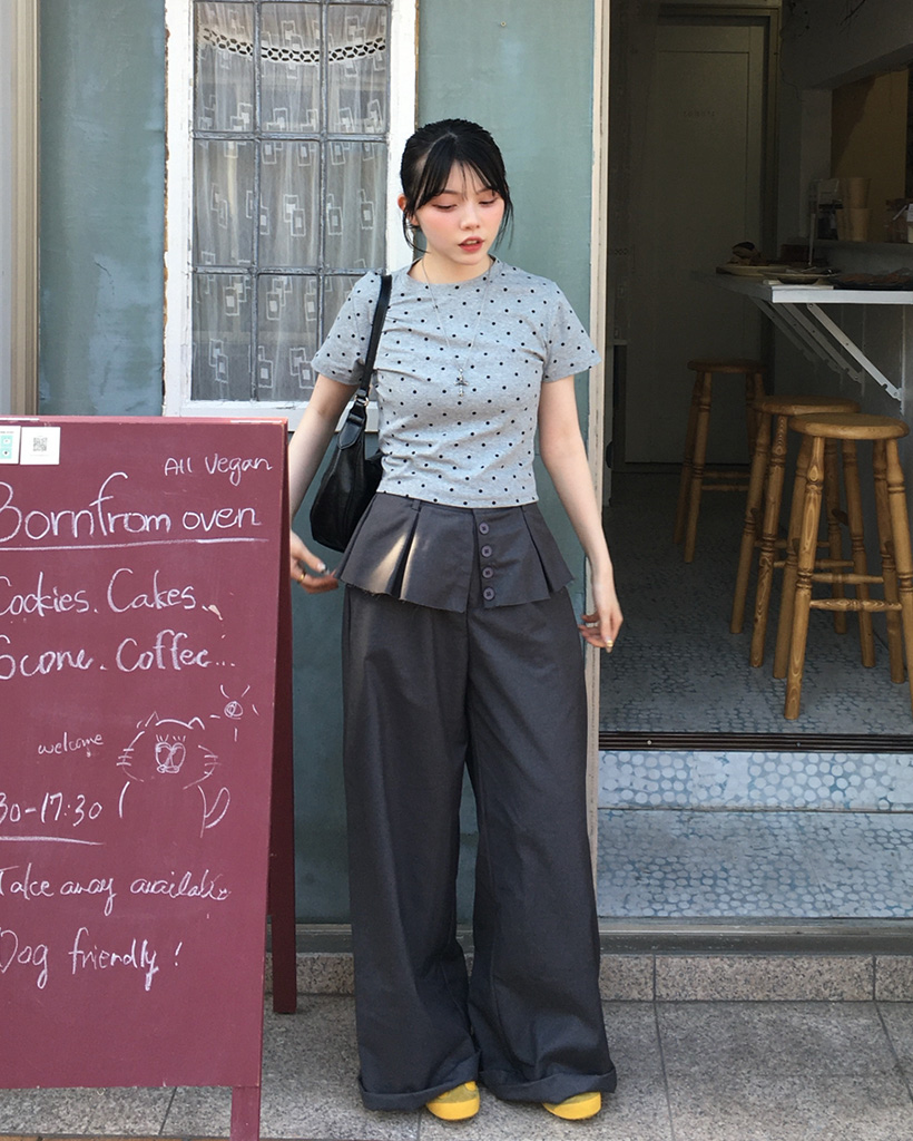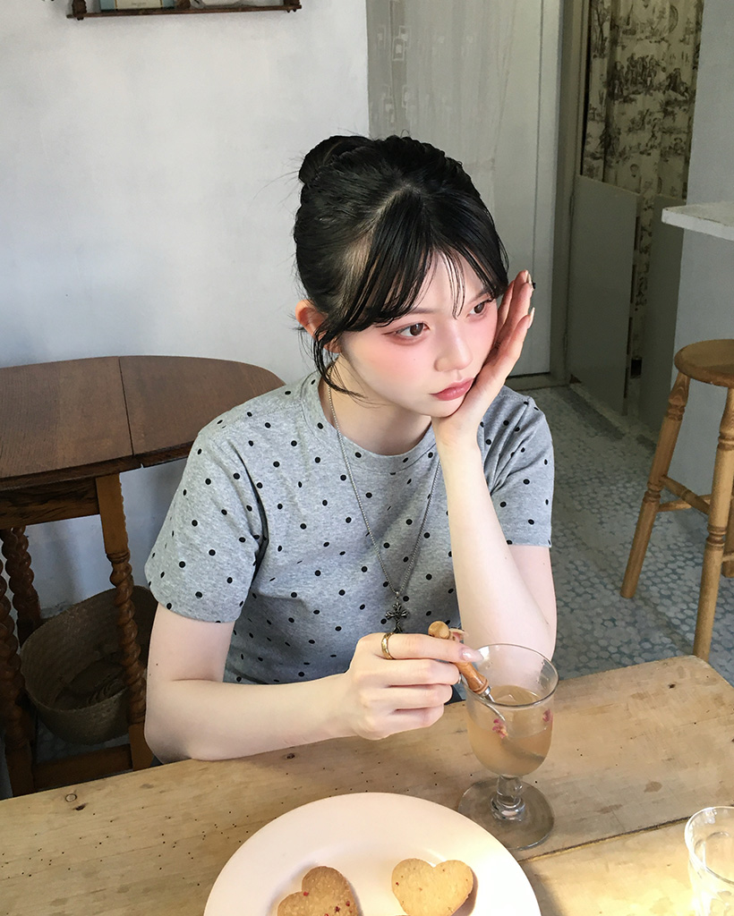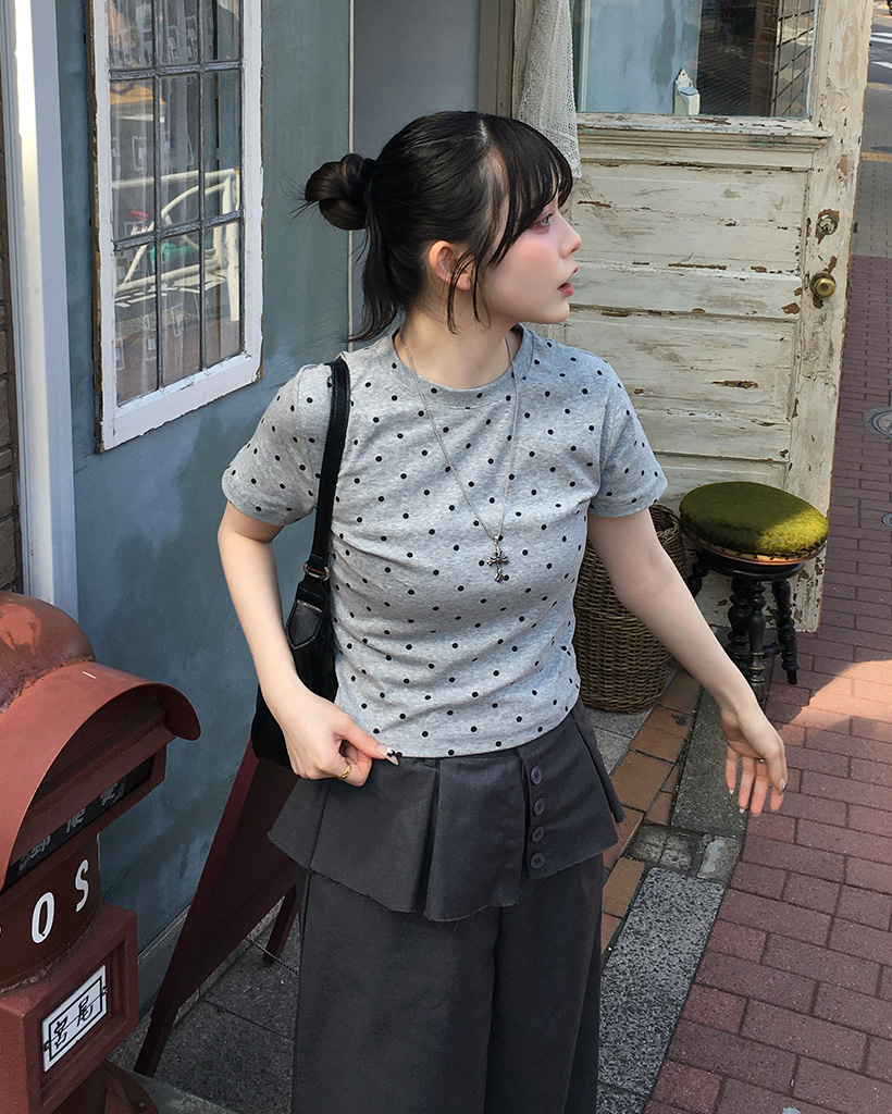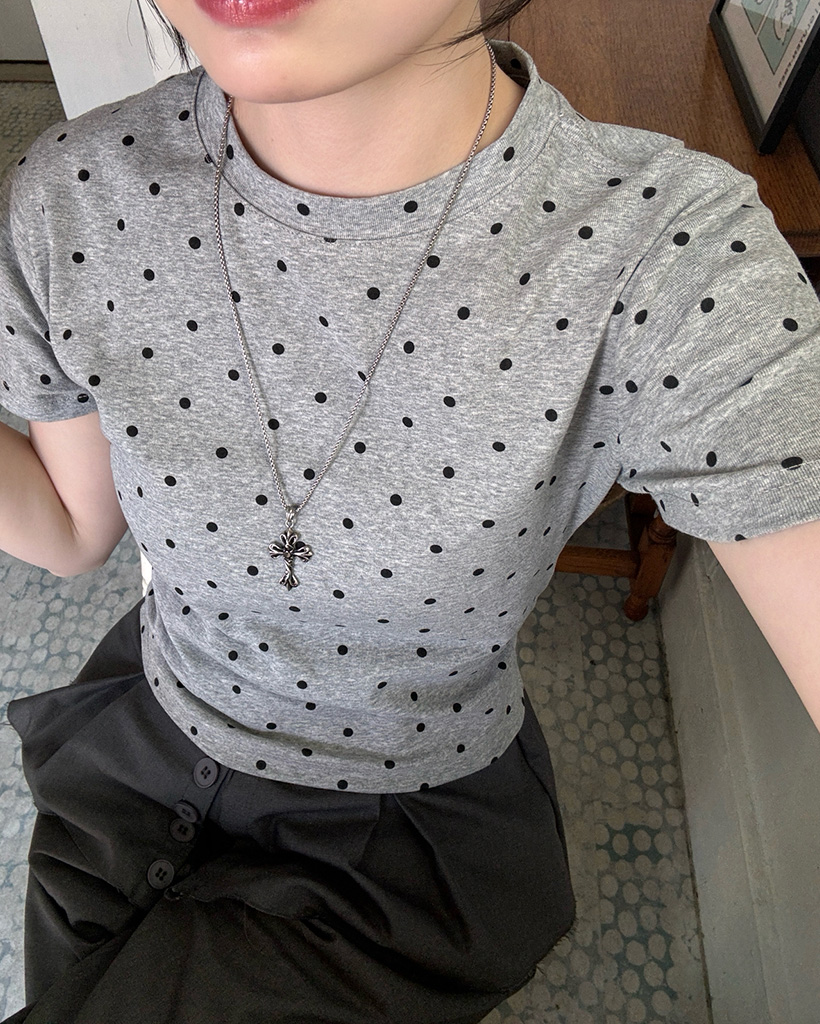 ドットパターンラウンドネックTシャツ