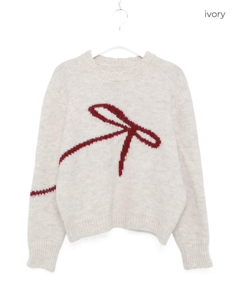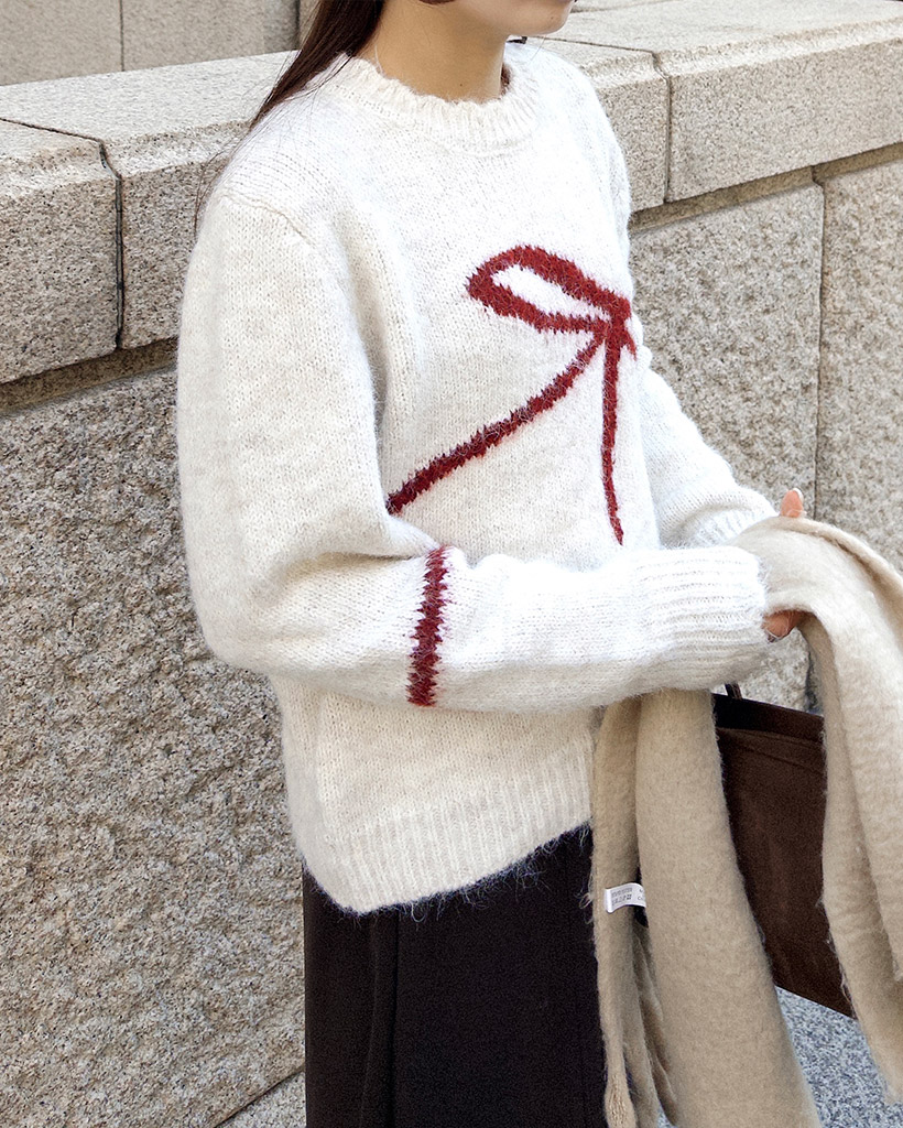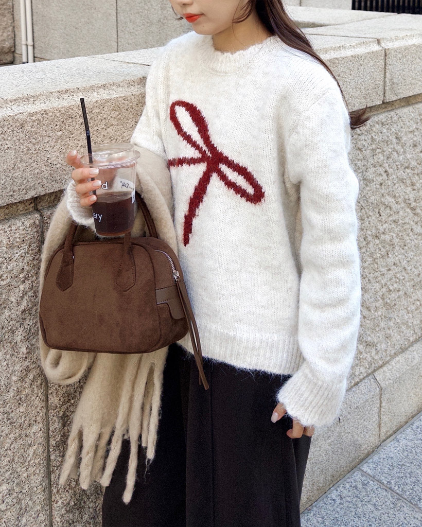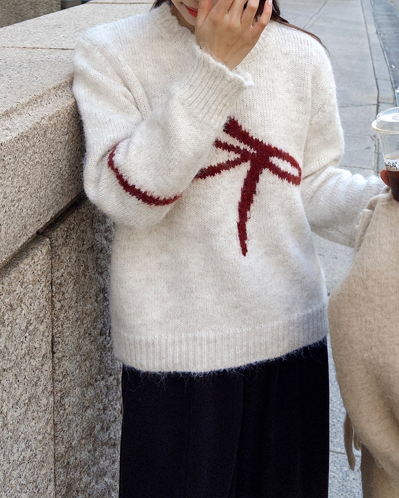 リボンタイポイントニット