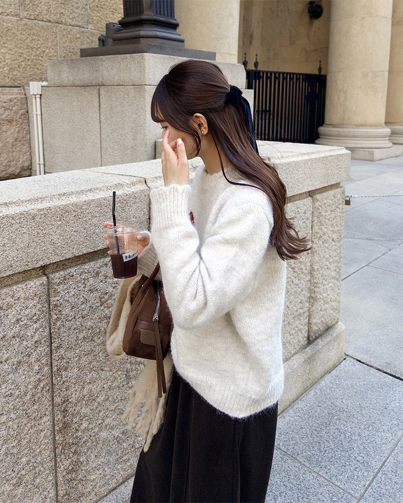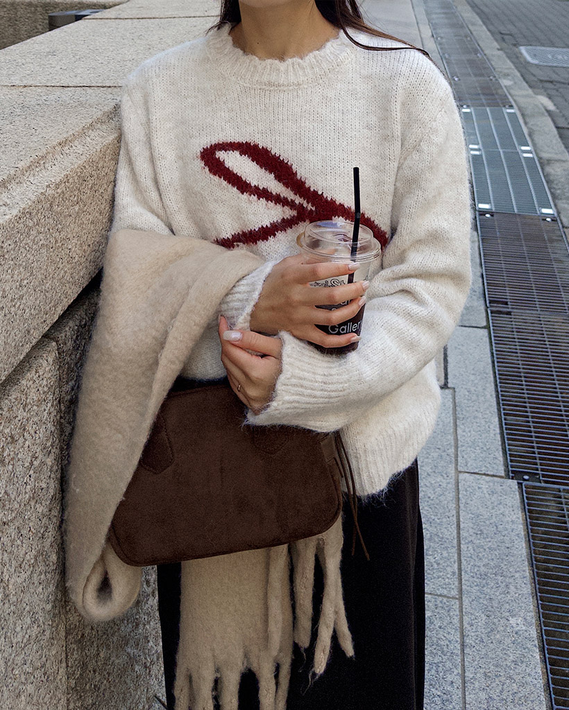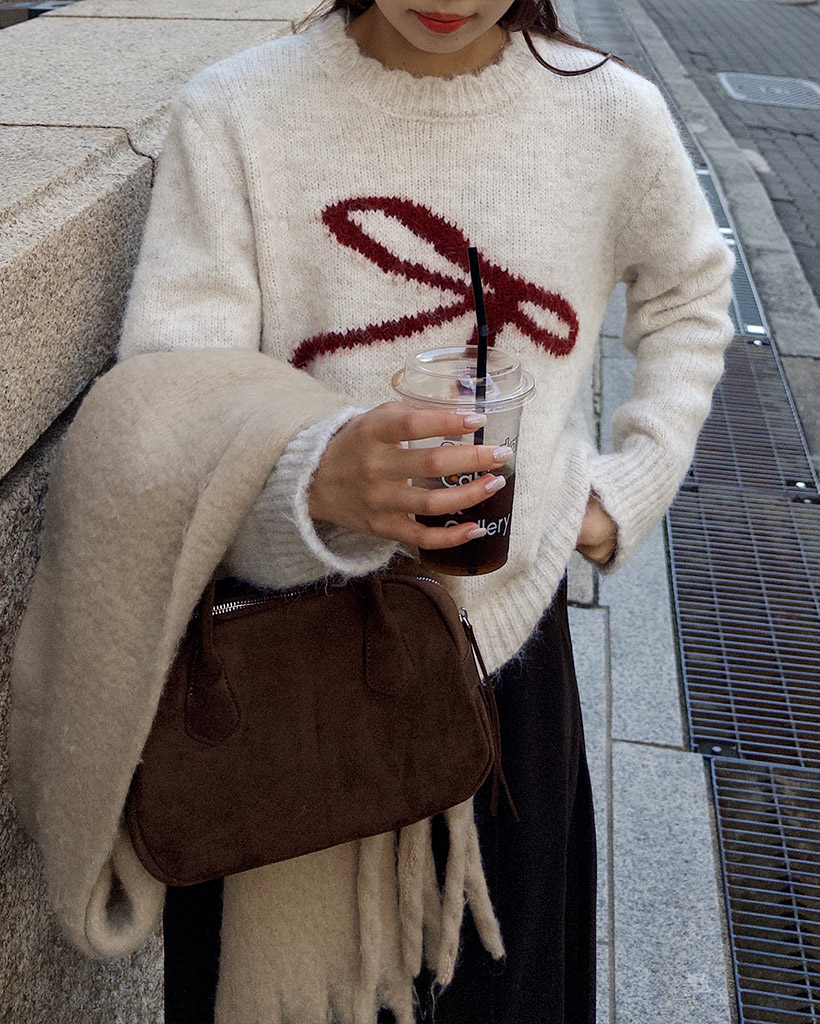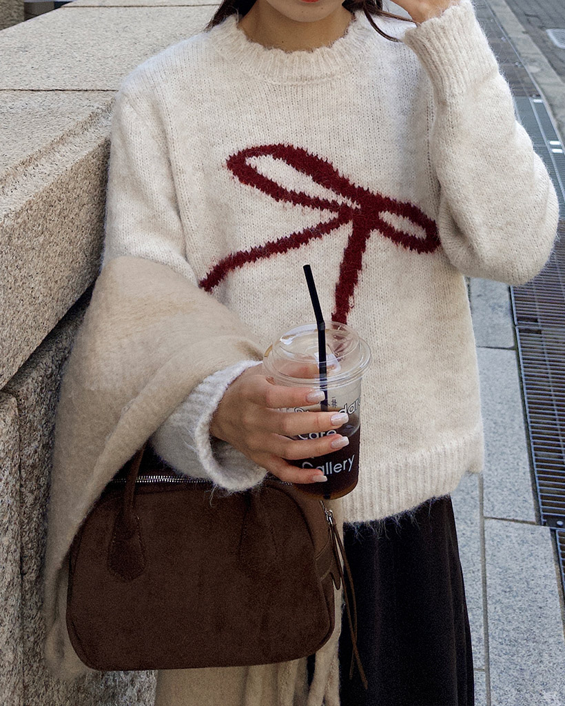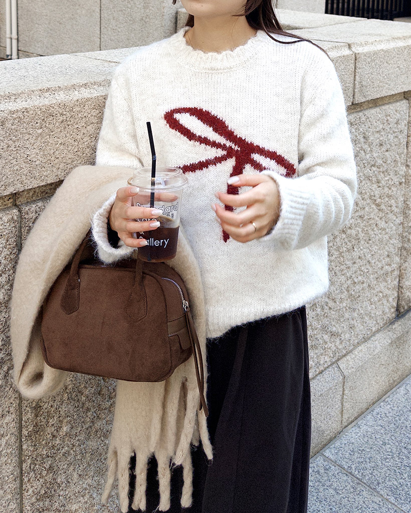 リボンタイポイントニット