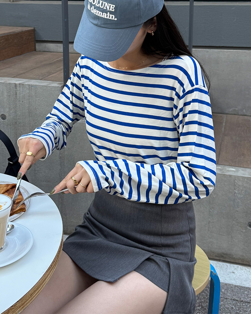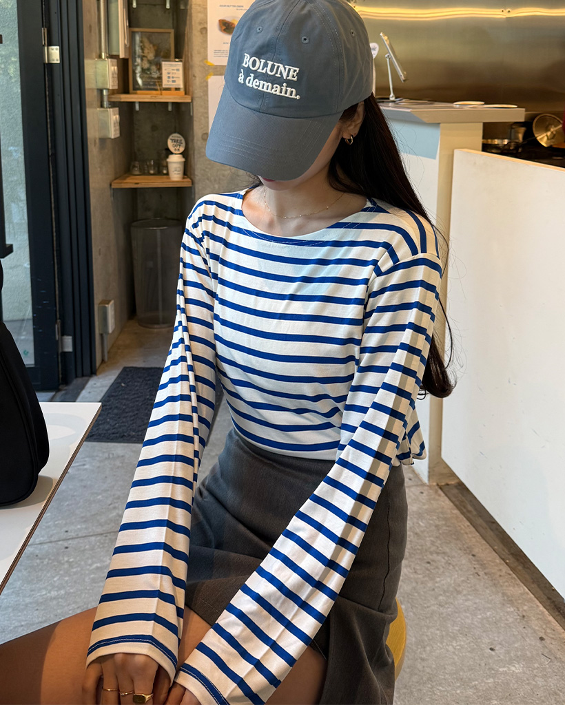 ソフトボートネックボーダー長袖Tシャツ