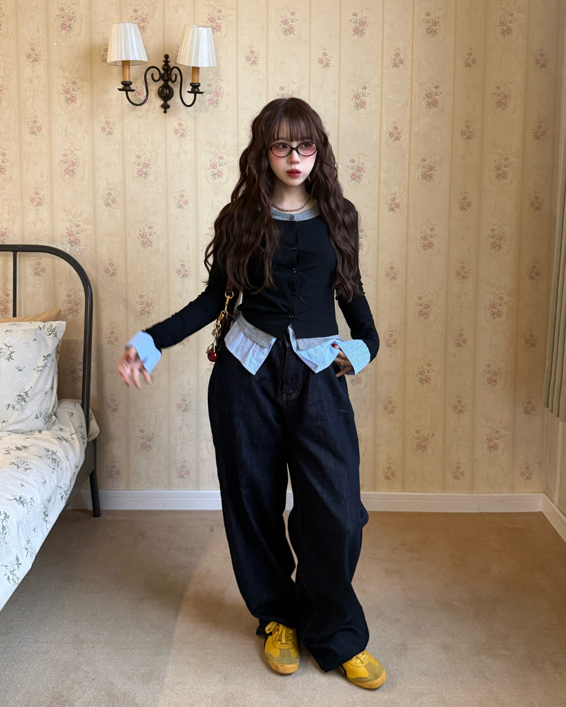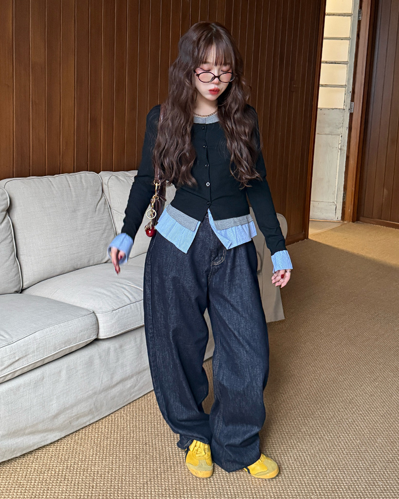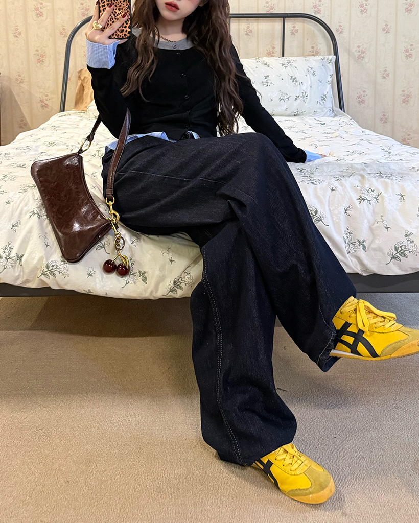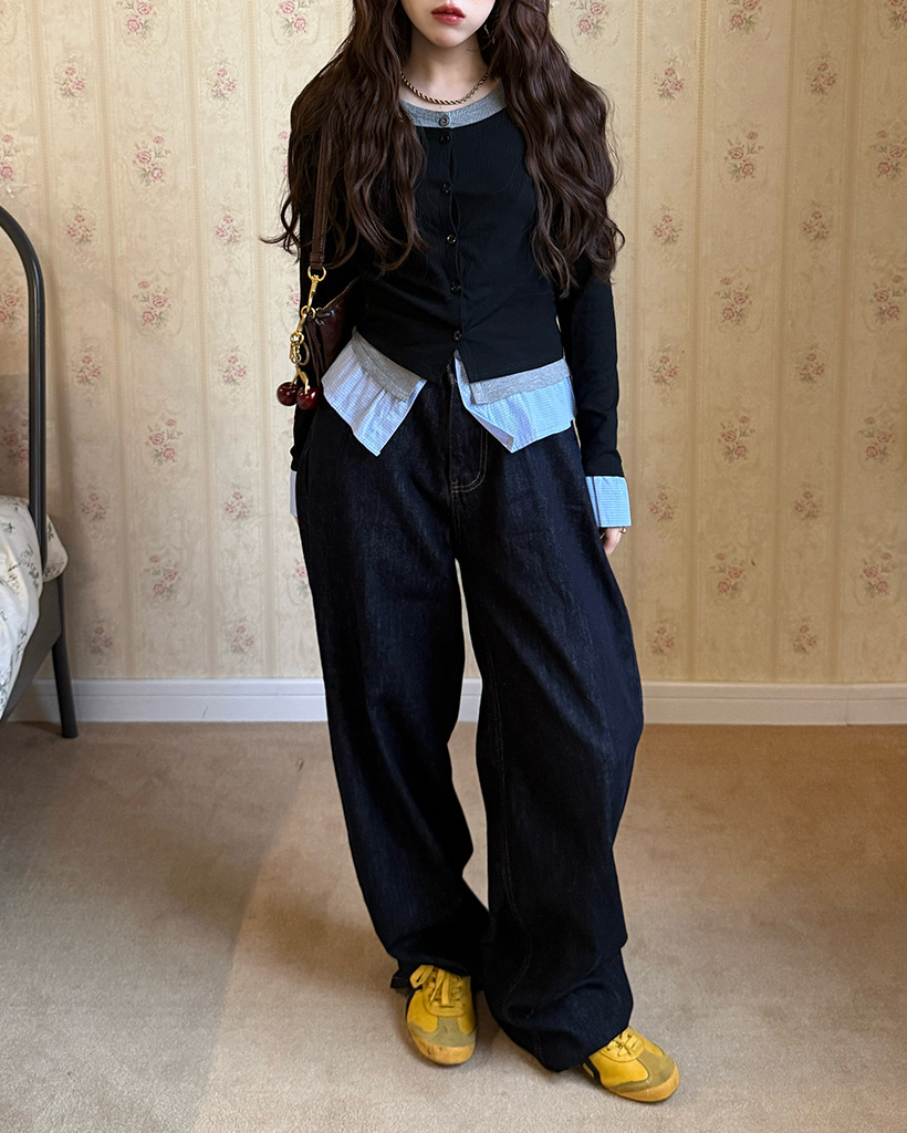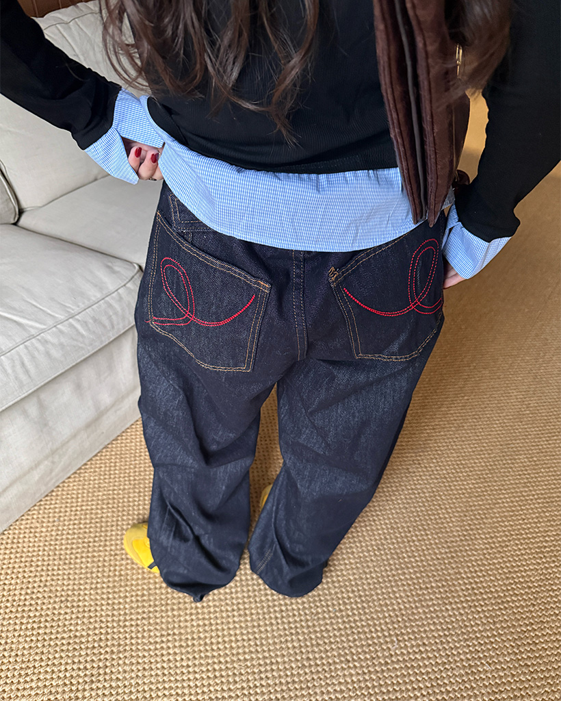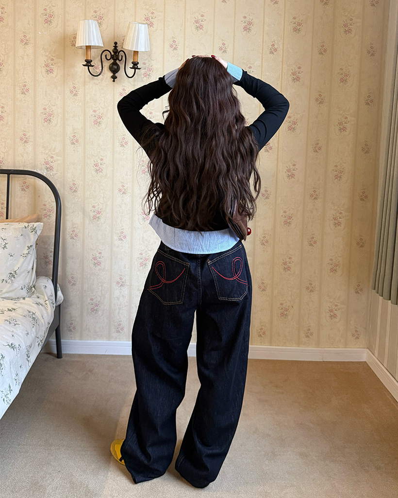 バックリボンポケットデニムワイドパンツ