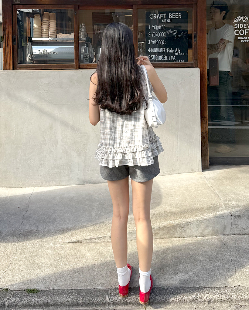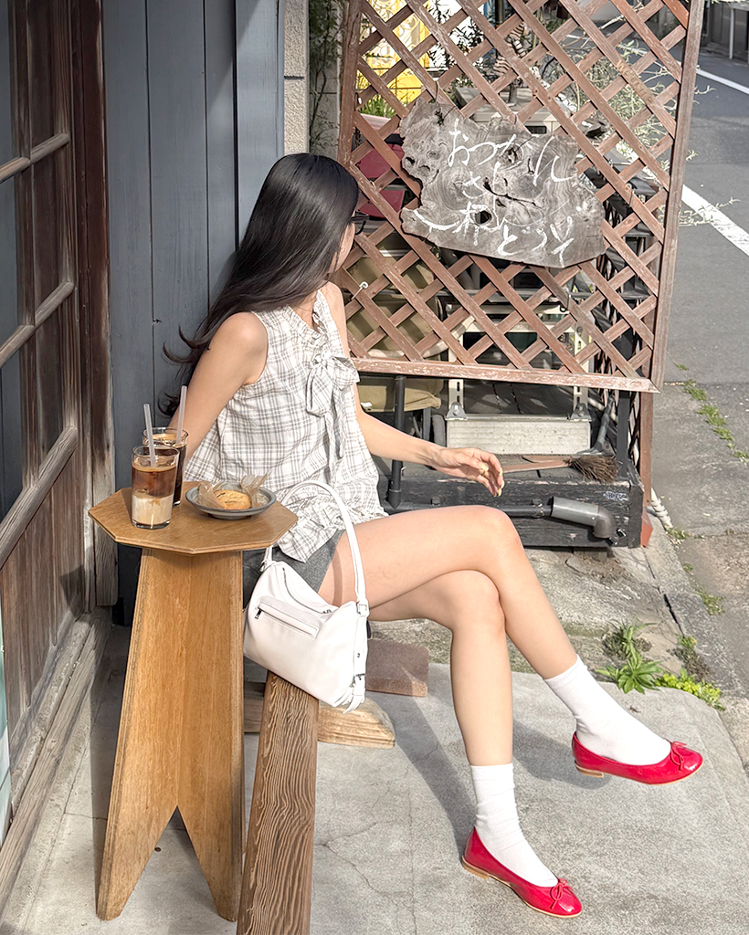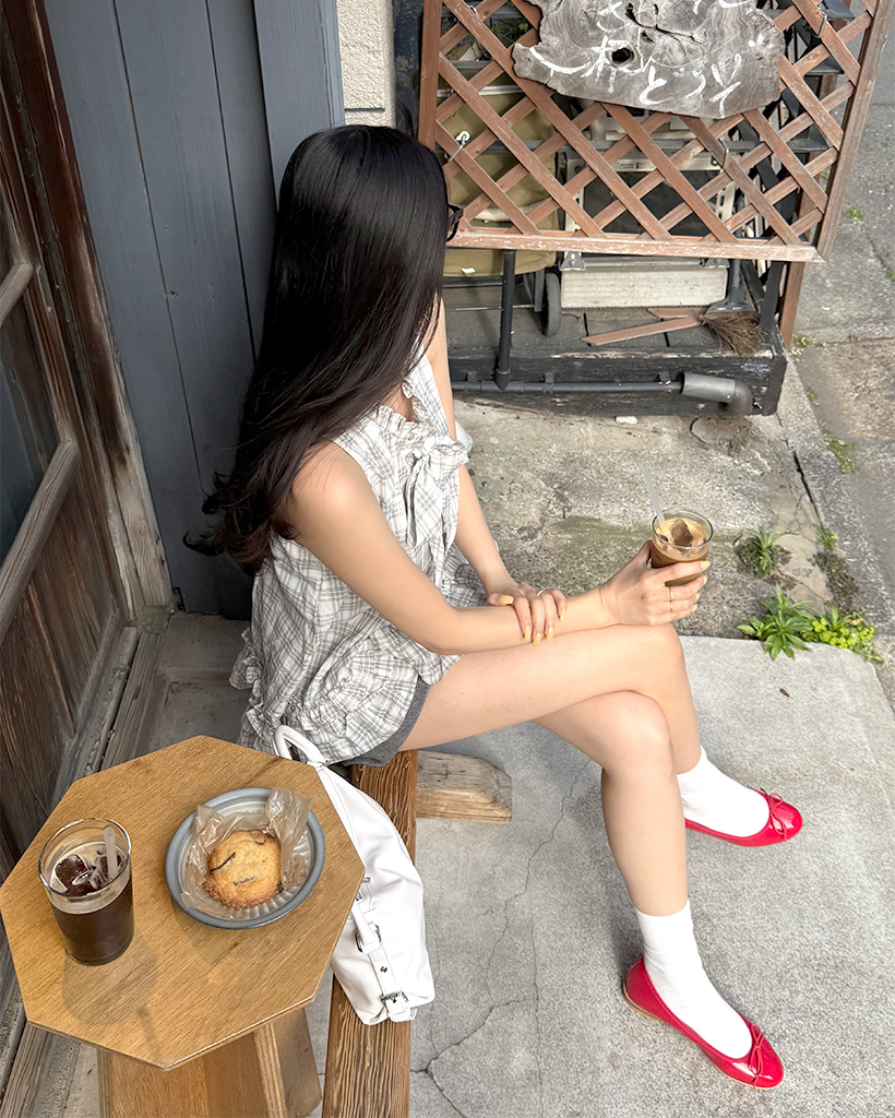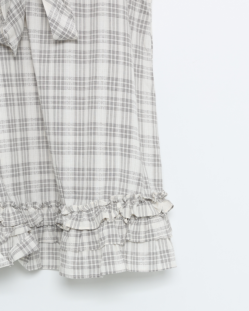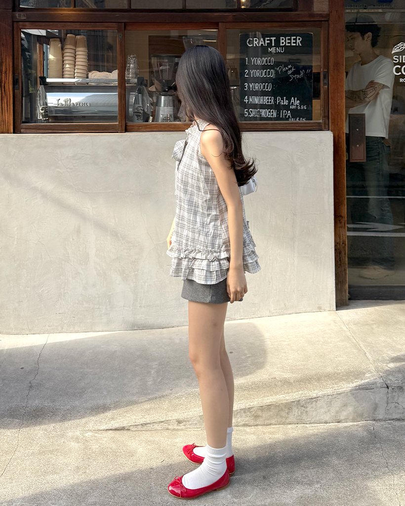 チェックリボンネックポイントノースリーブブラウス