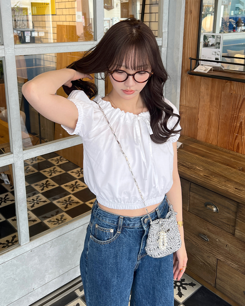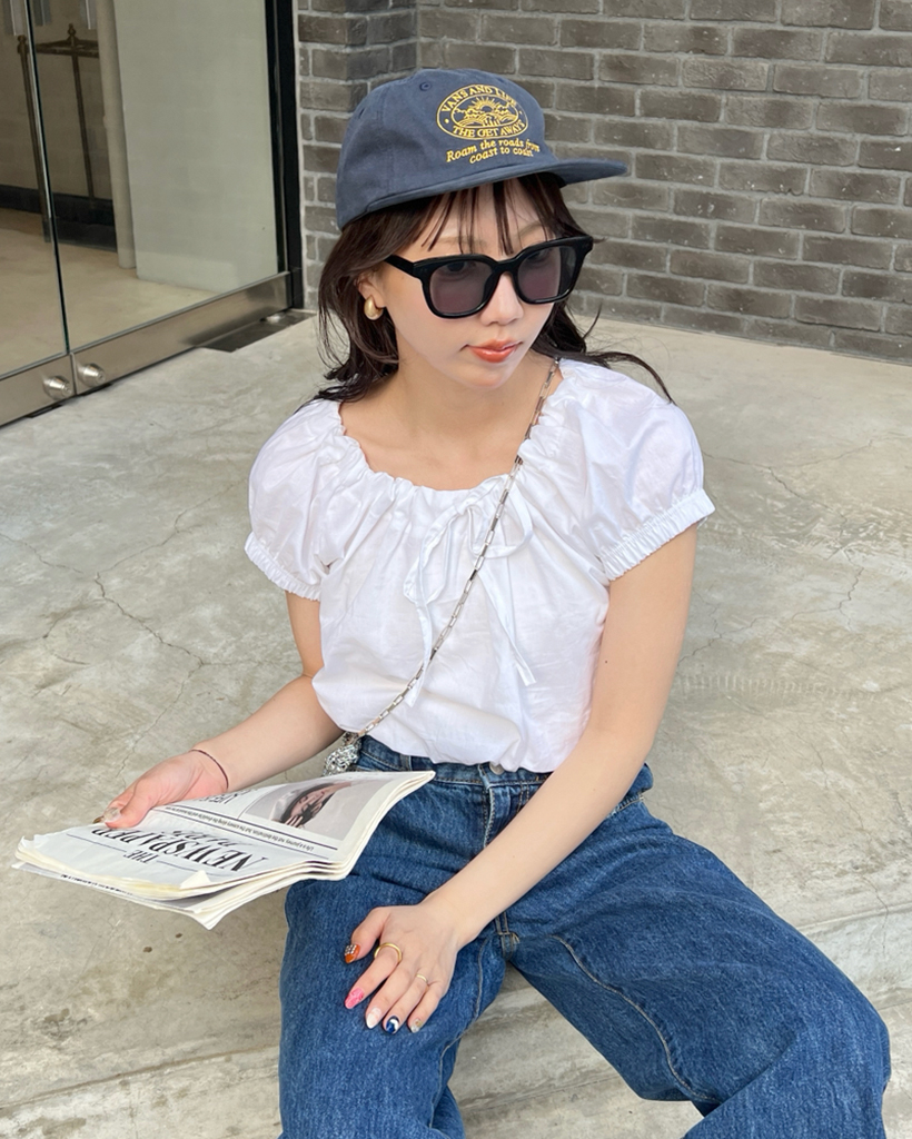 リボンストリングパフ半袖ブラウス