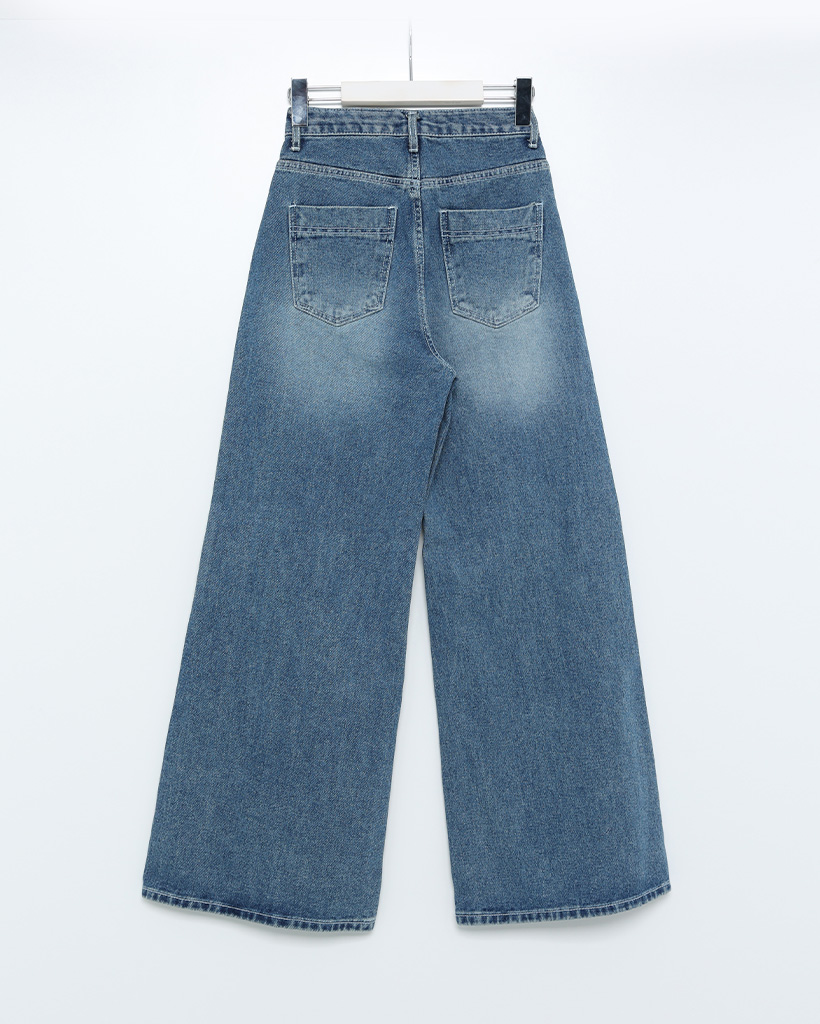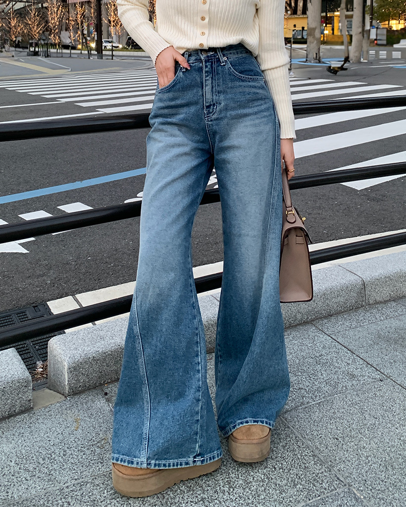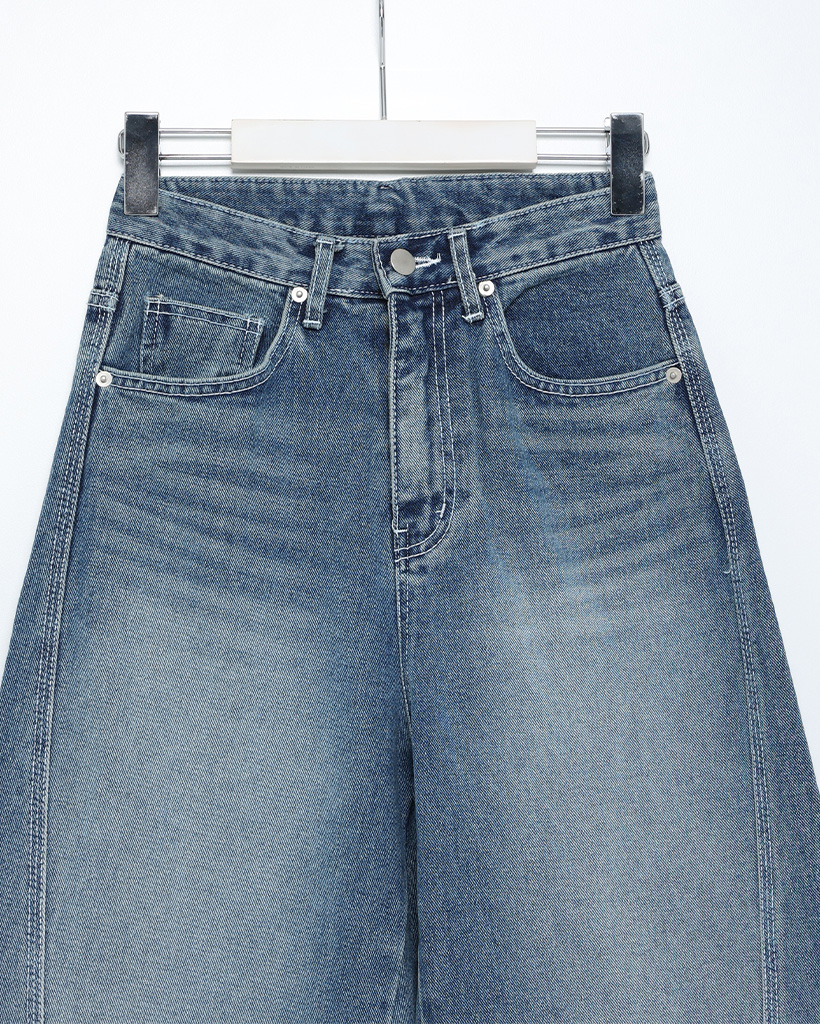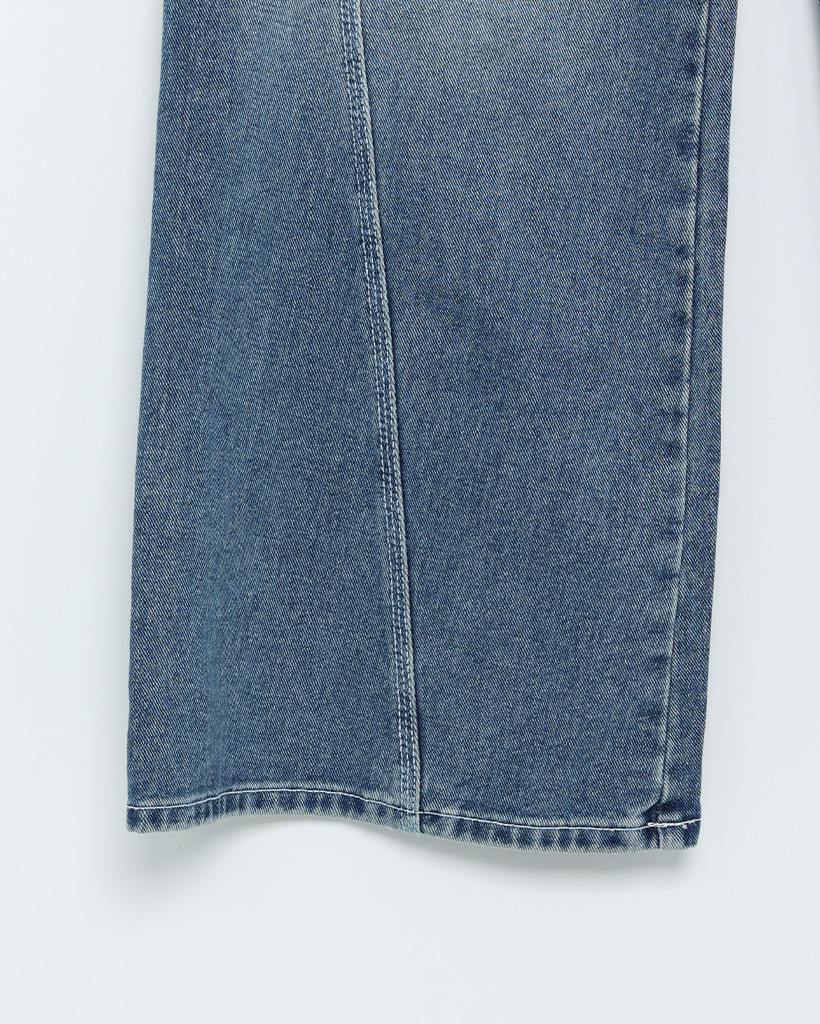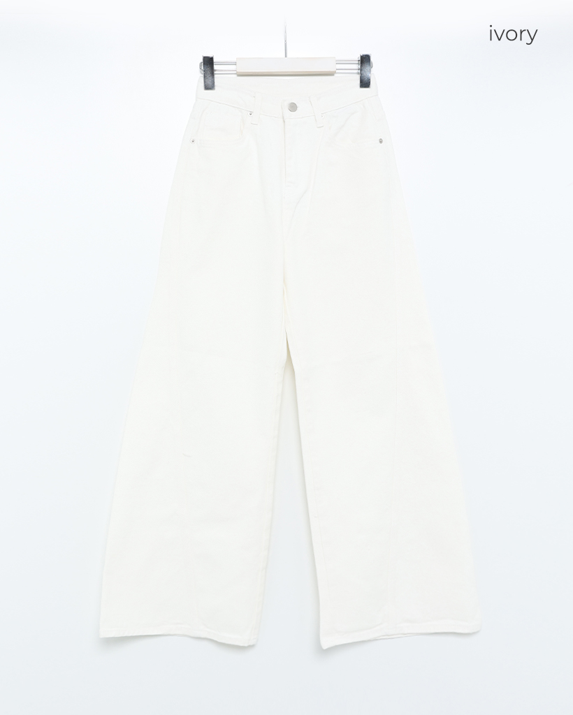 斜線スリットㅏコットンデニムパンツ