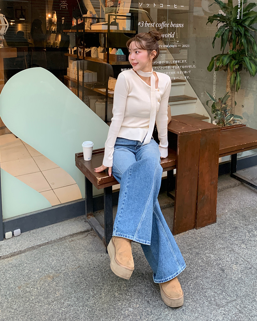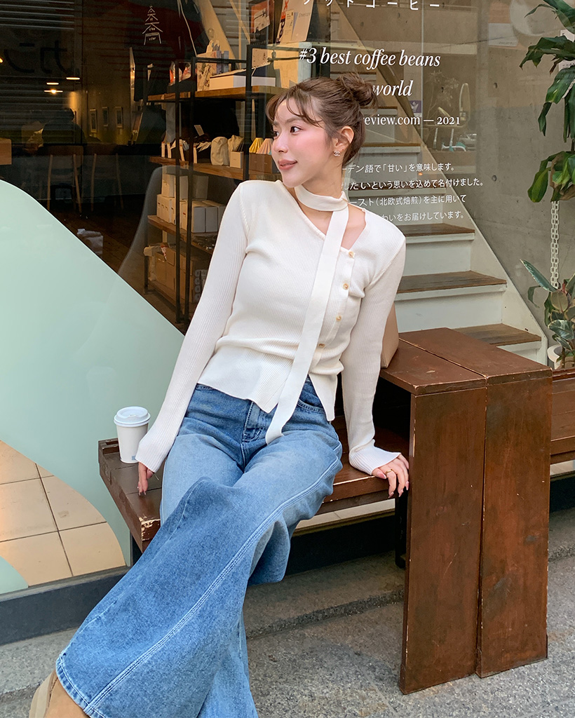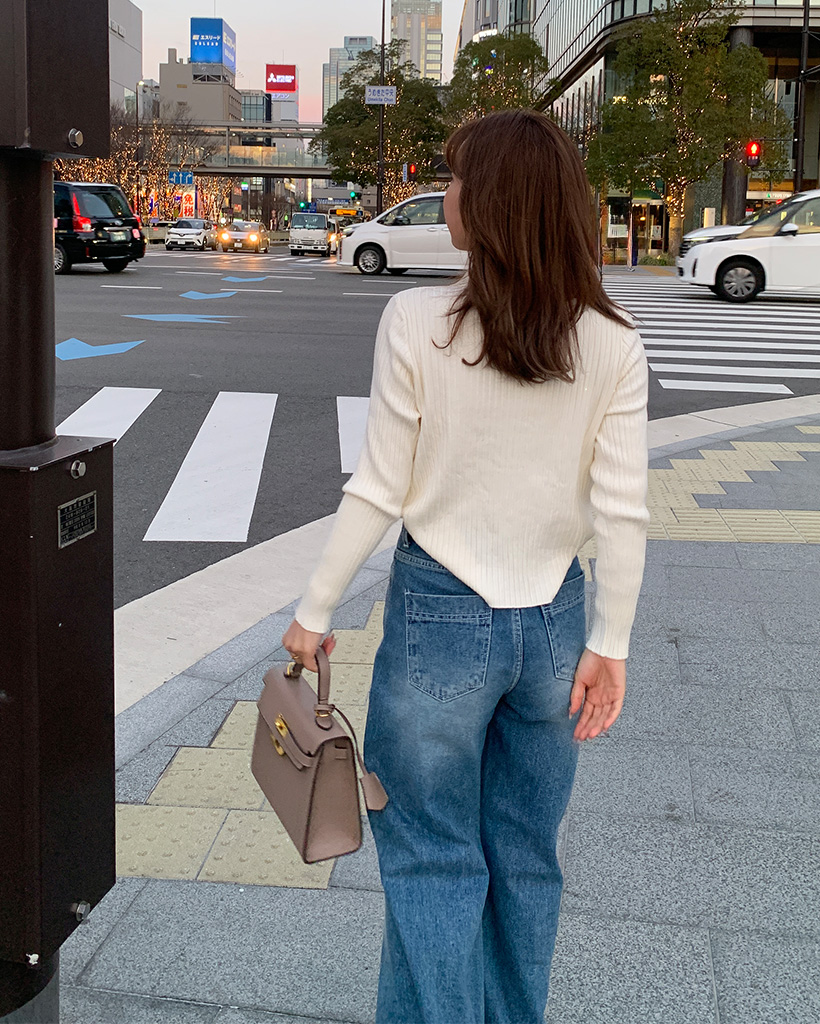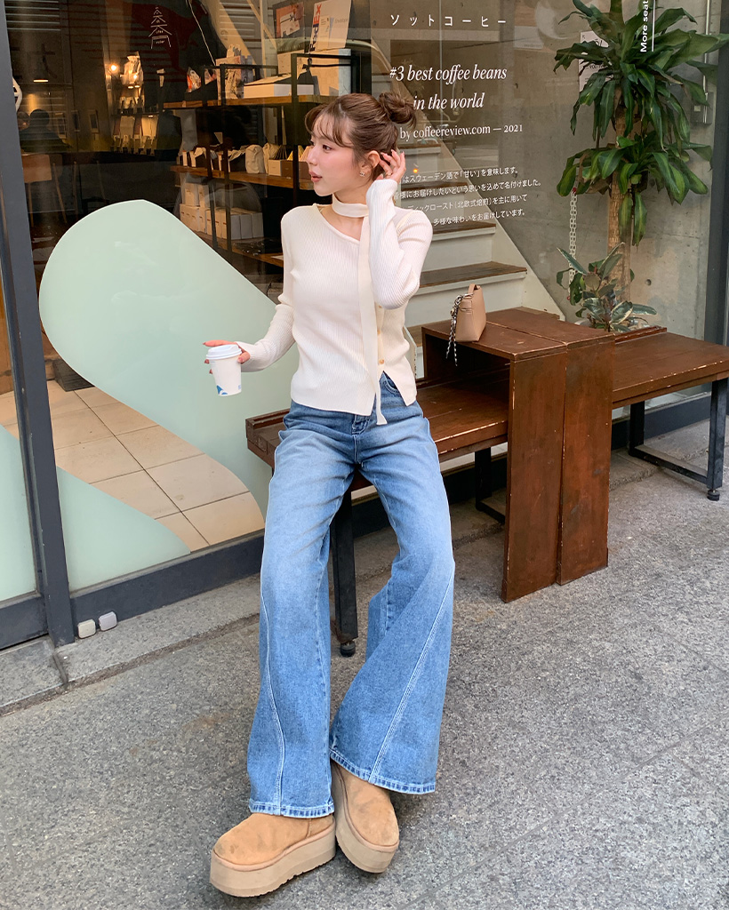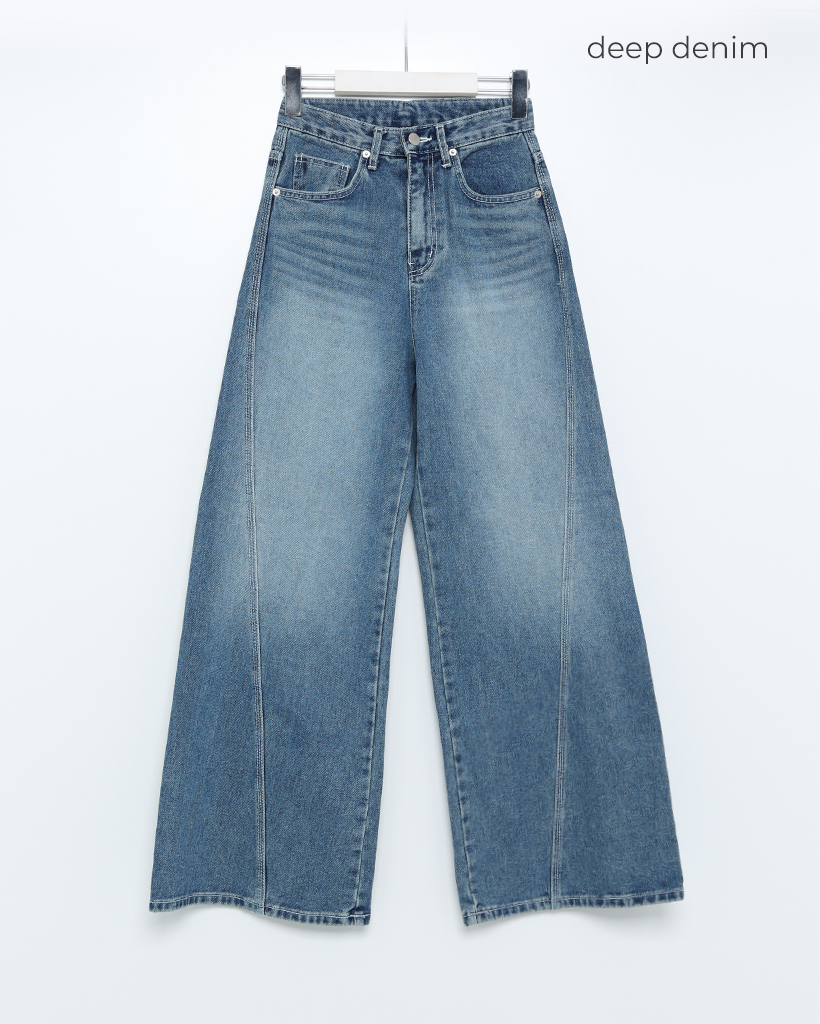 斜線スリットㅏコットンデニムパンツ