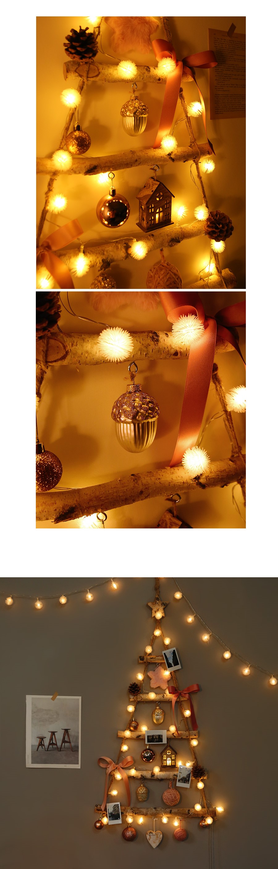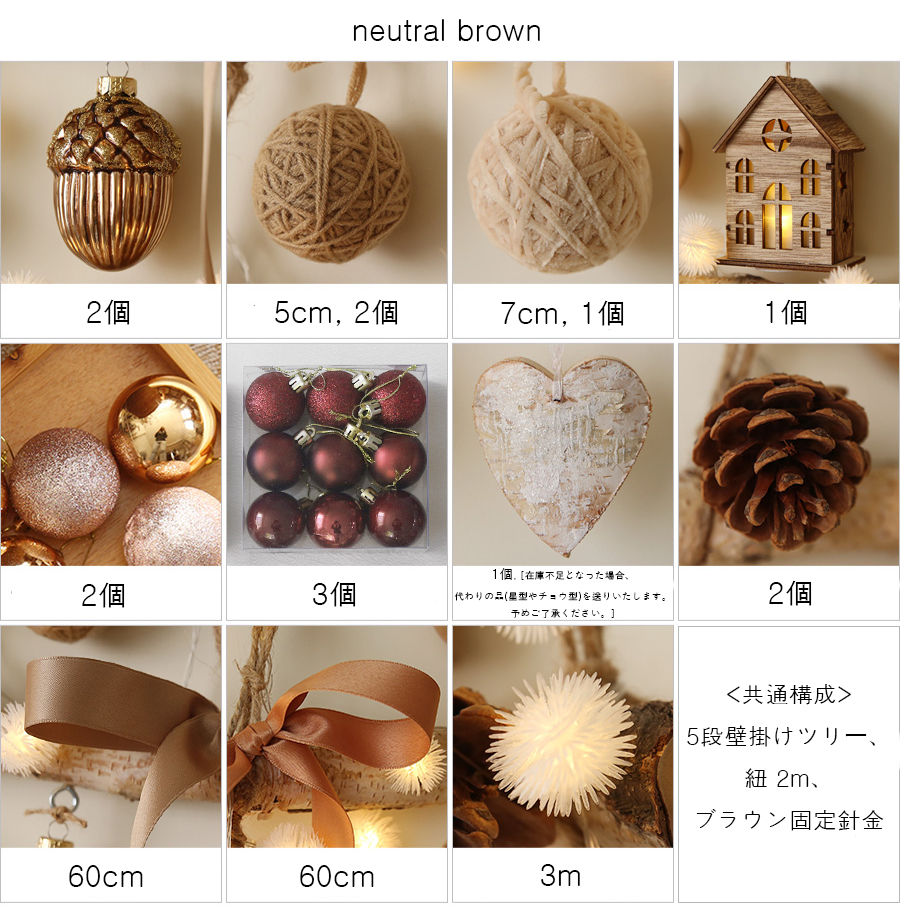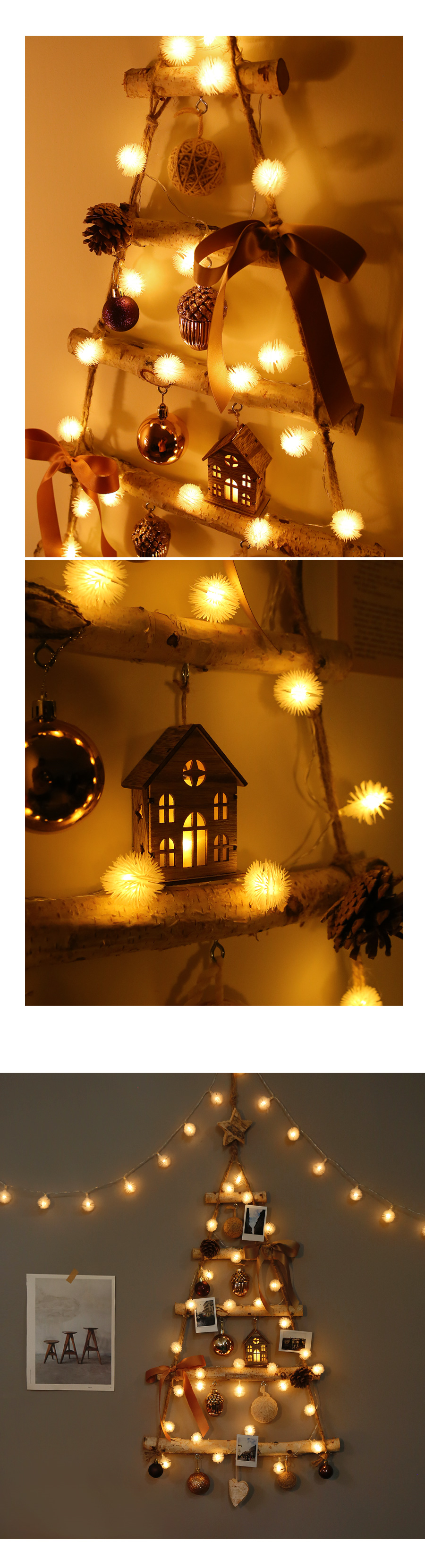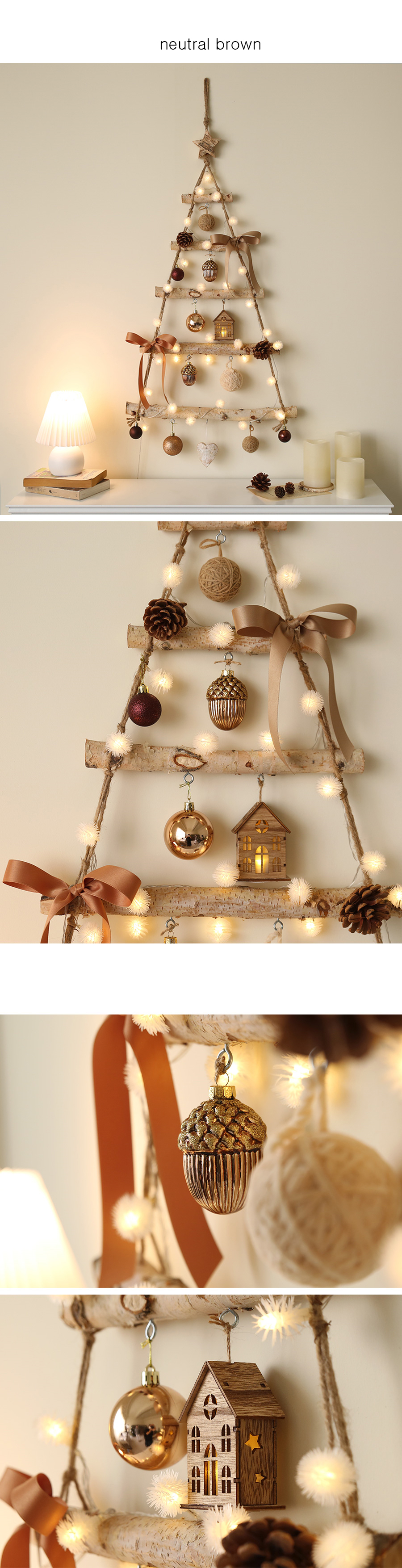 [クリスマス] neutral lovely wood wall tree bulb full set [2 color]