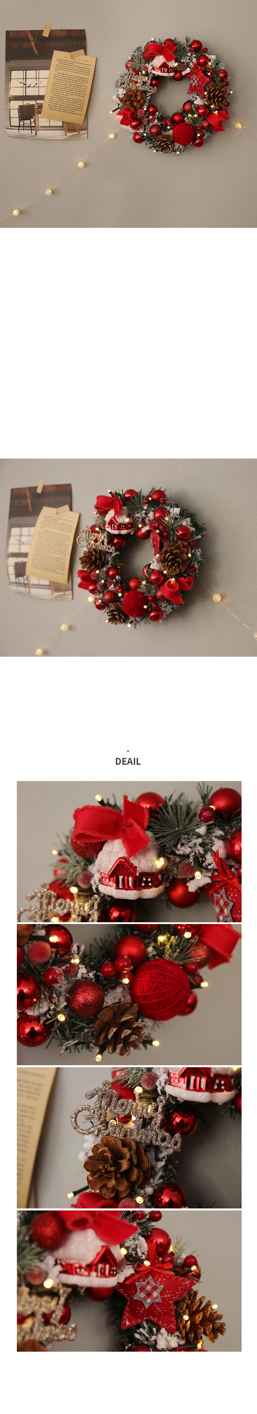 [クリスマス] snow small house red star snowflake wreath + light bulb set
