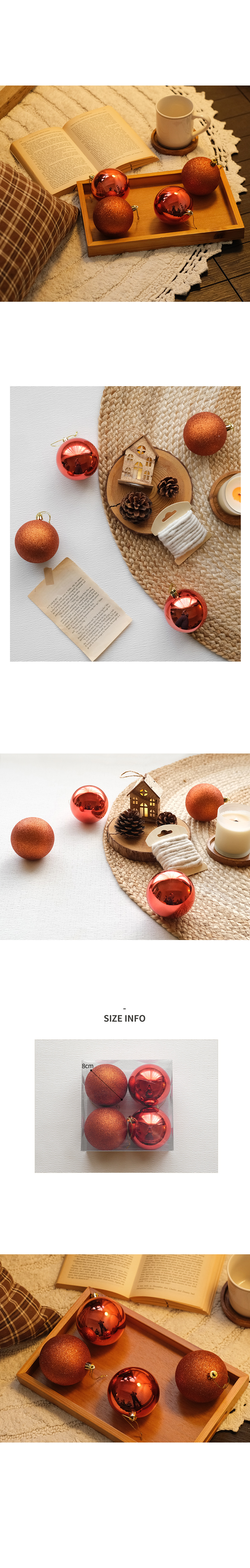 [クリスマス] 8cm christmas mix ball (4p set) - brick red