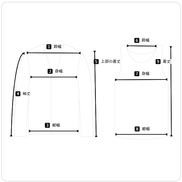 9 着丈 | 50 19.5 | 51 20 |