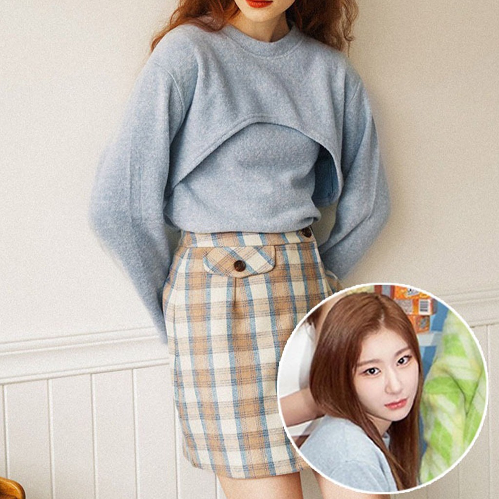 Bolero + Vest Layered Sweater ( Pastel Blue )