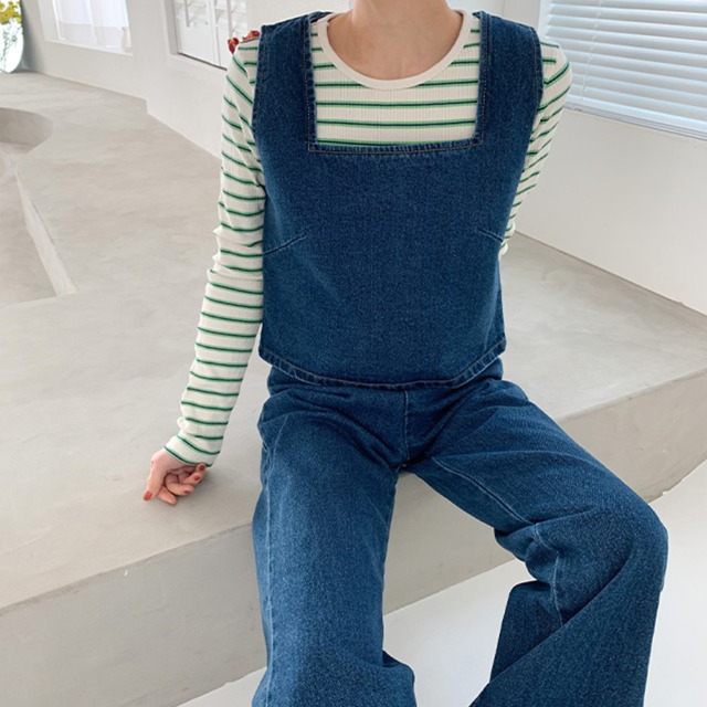 デニムノースリーブトップス