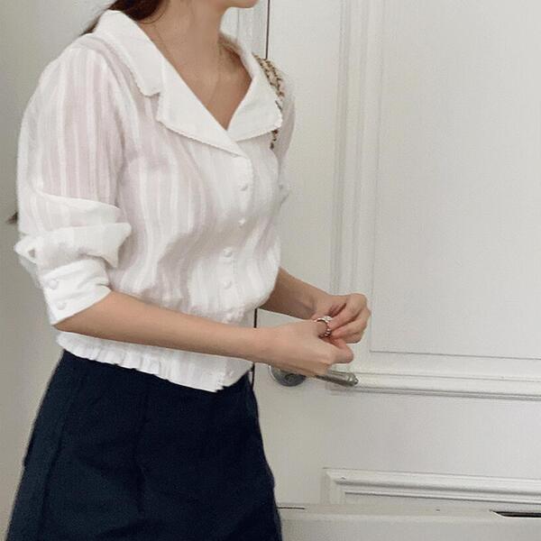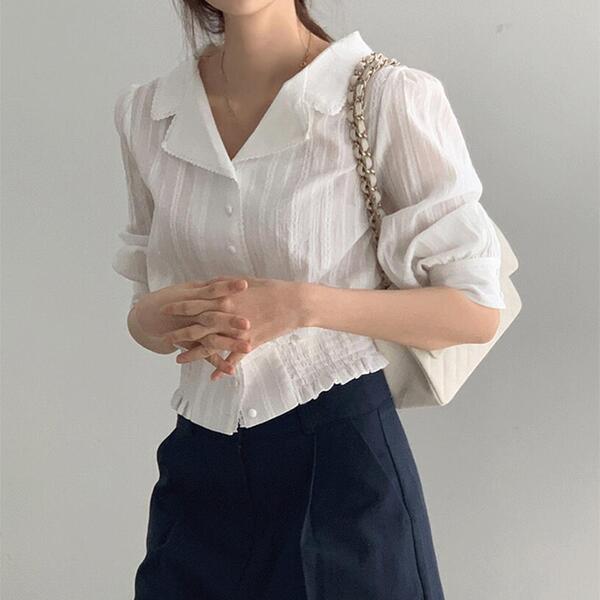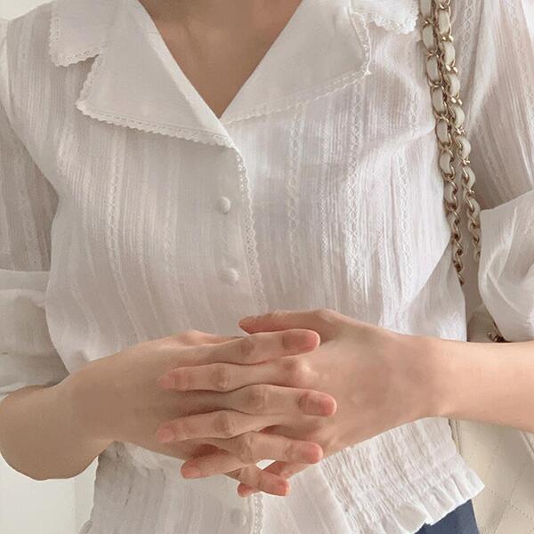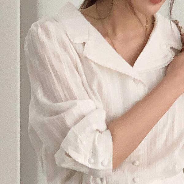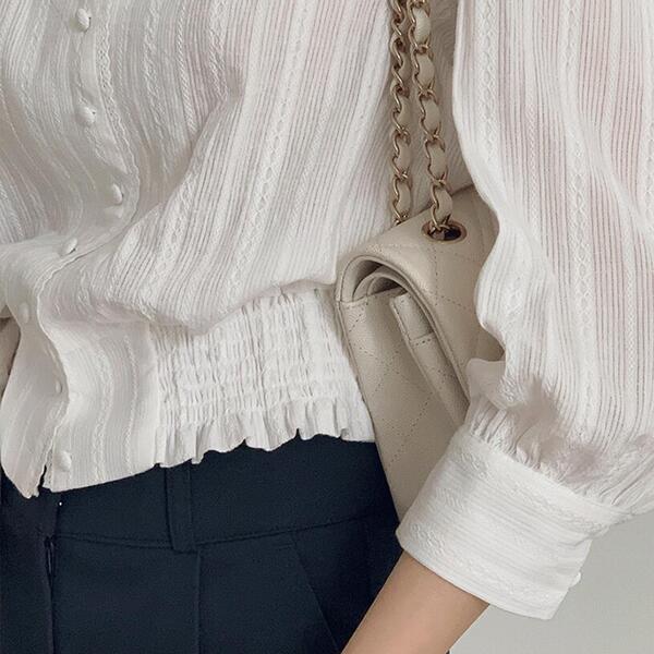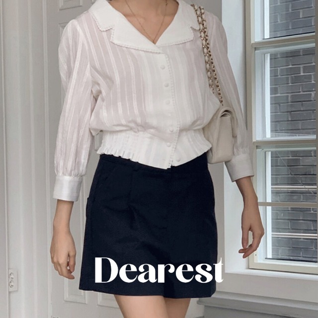 [Dearest] 裾シャーリングフロントボタンブラウス(アイボリー)