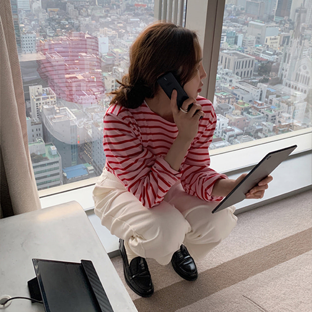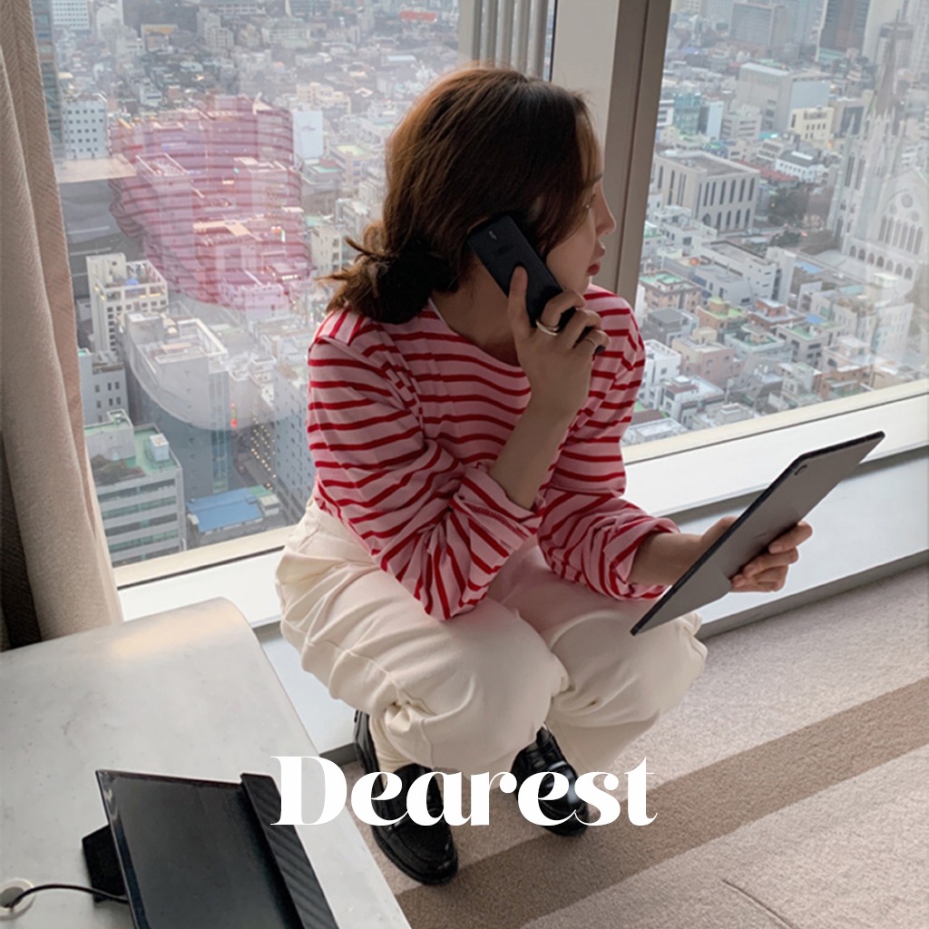 [Dearest] シンプルボーダーTシャツ(ピンクレッド)