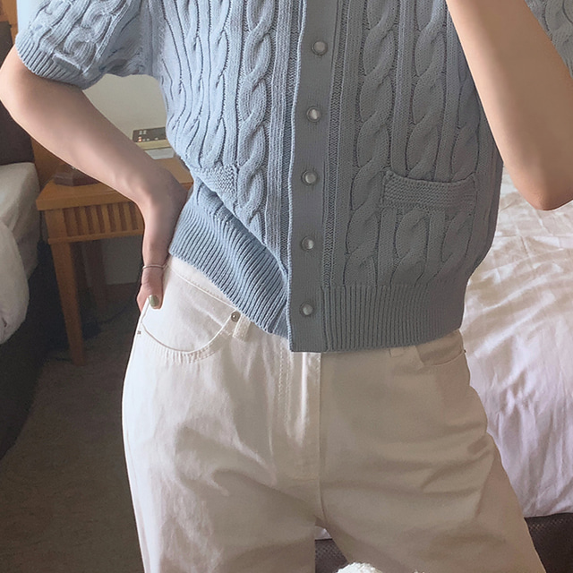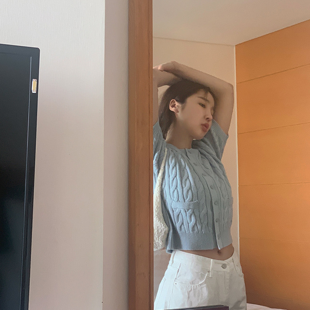니트 특유의 부함없이 날렵한 맵시를 느끼실수있는 반팔가디건이에요.