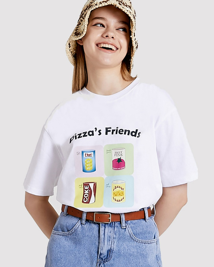Women's/PIZZA FRIEND T SHIRT_WHITE