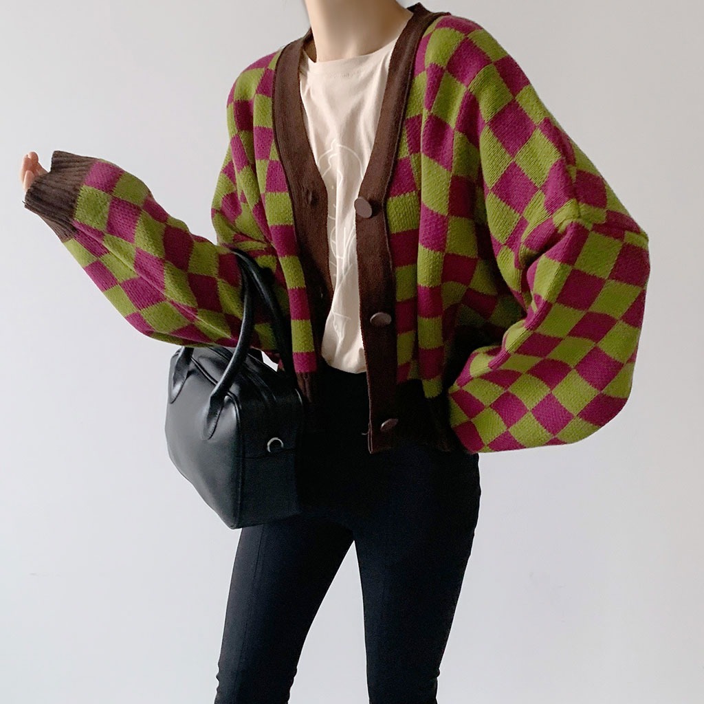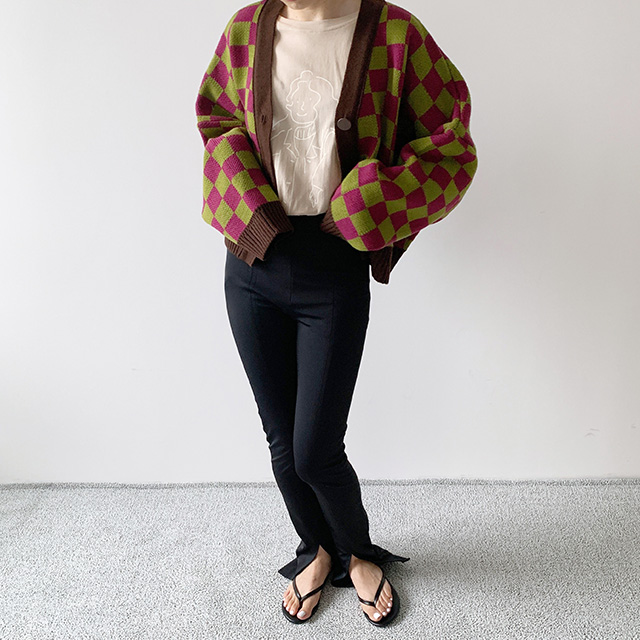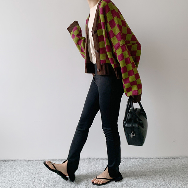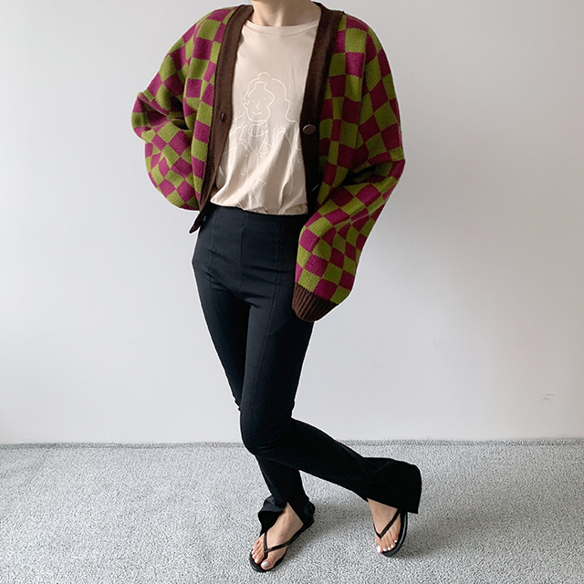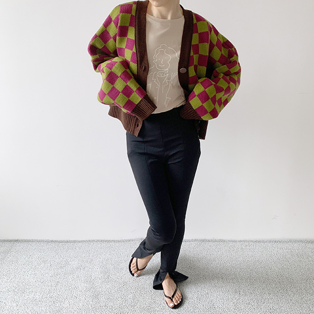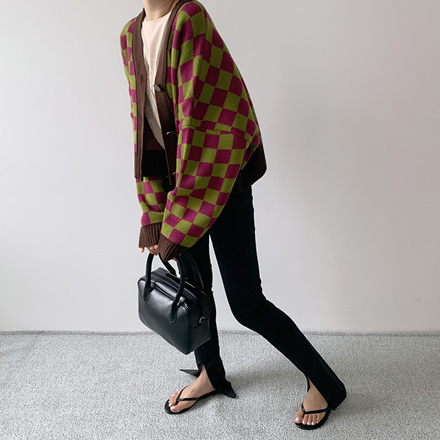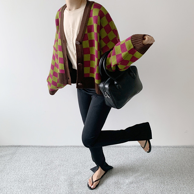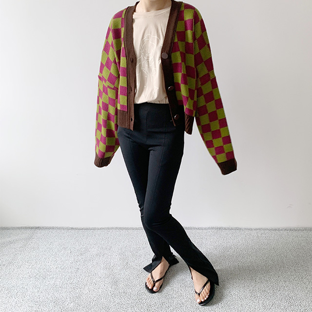 チェックカーディガン