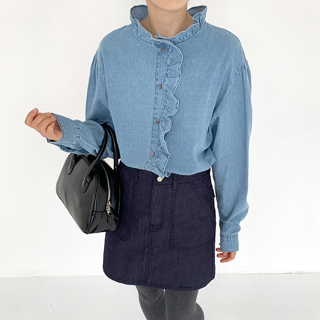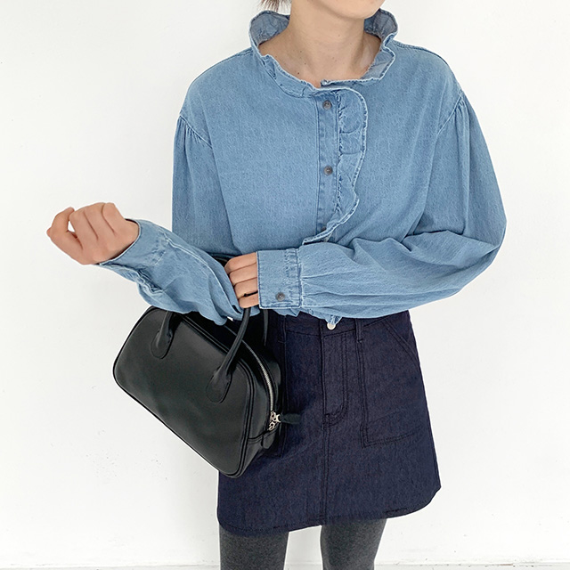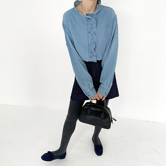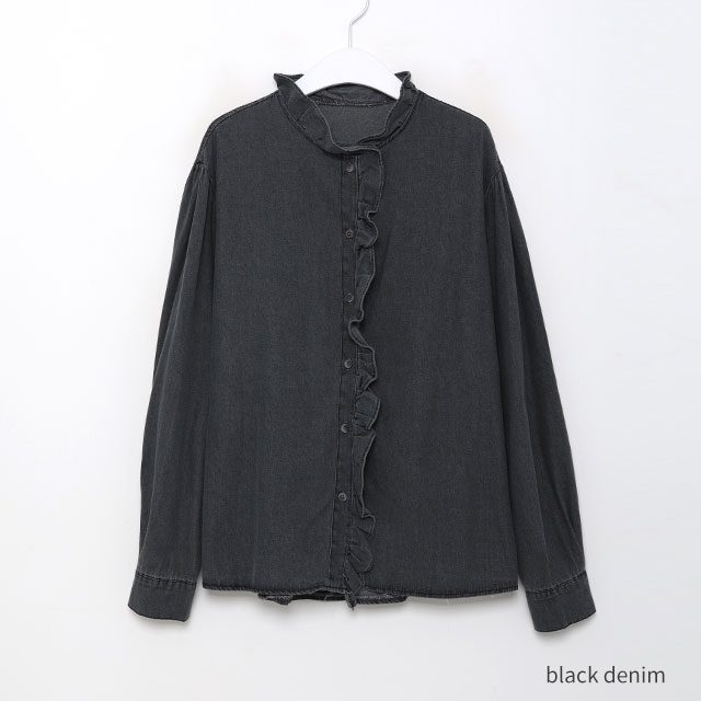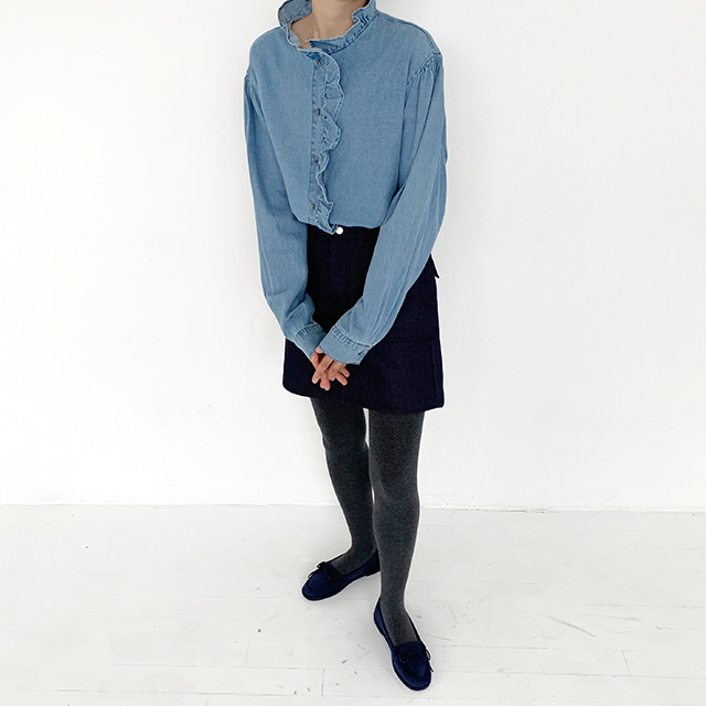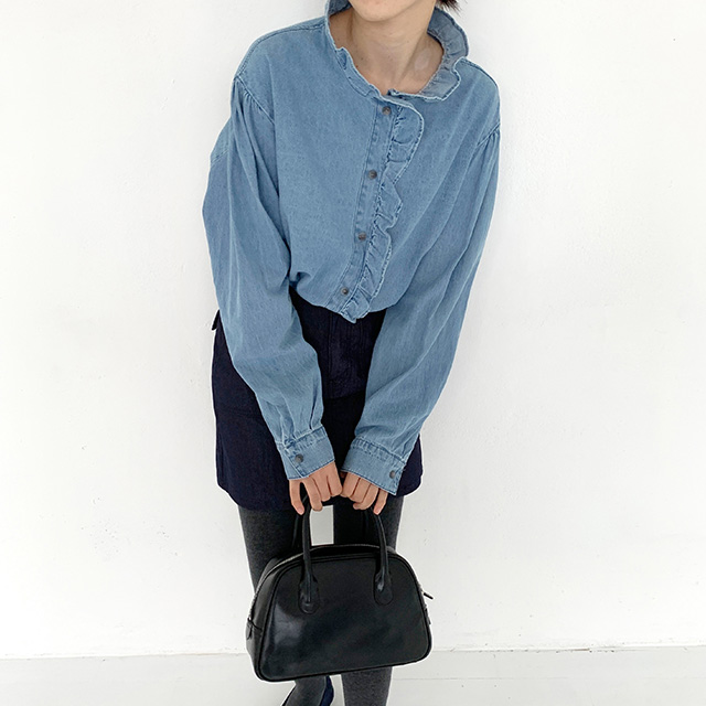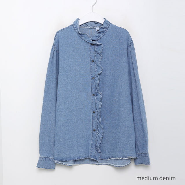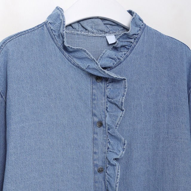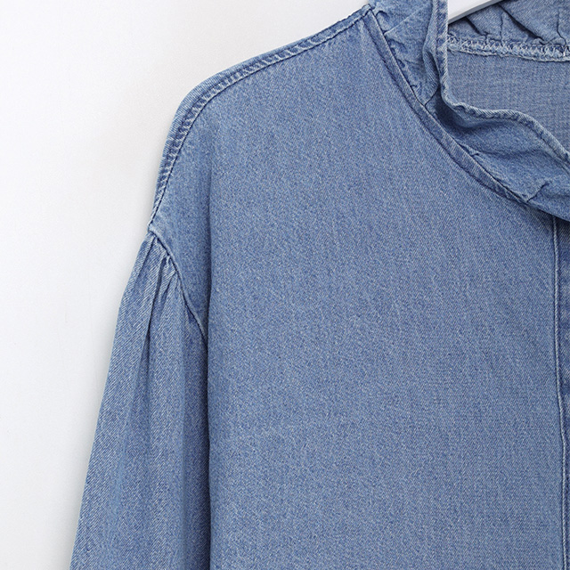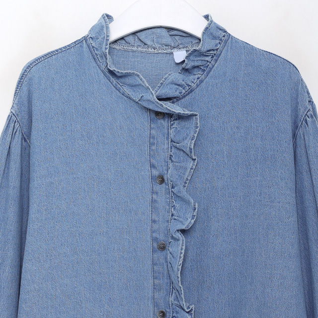 フリルデニムブラウス