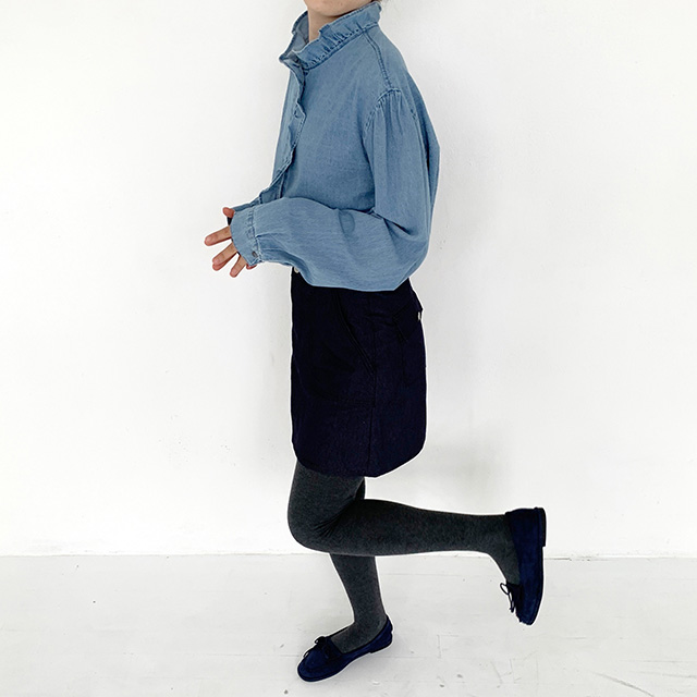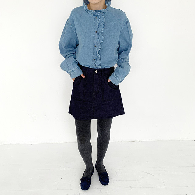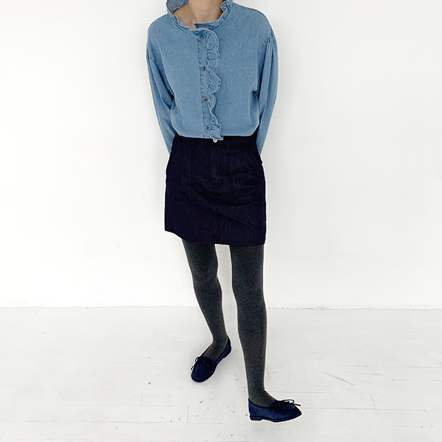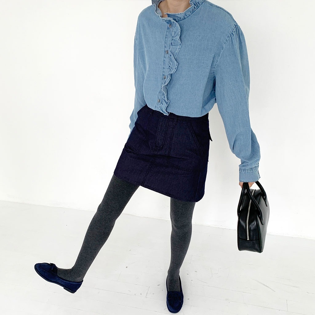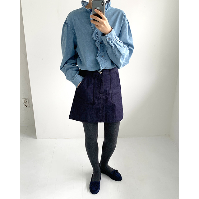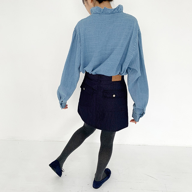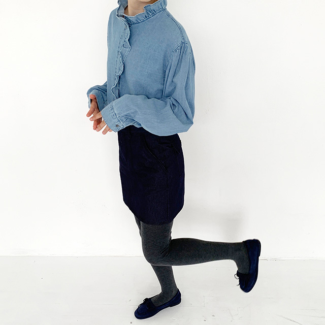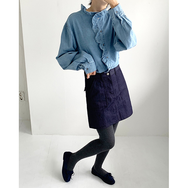 フリルデニムブラウス