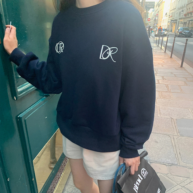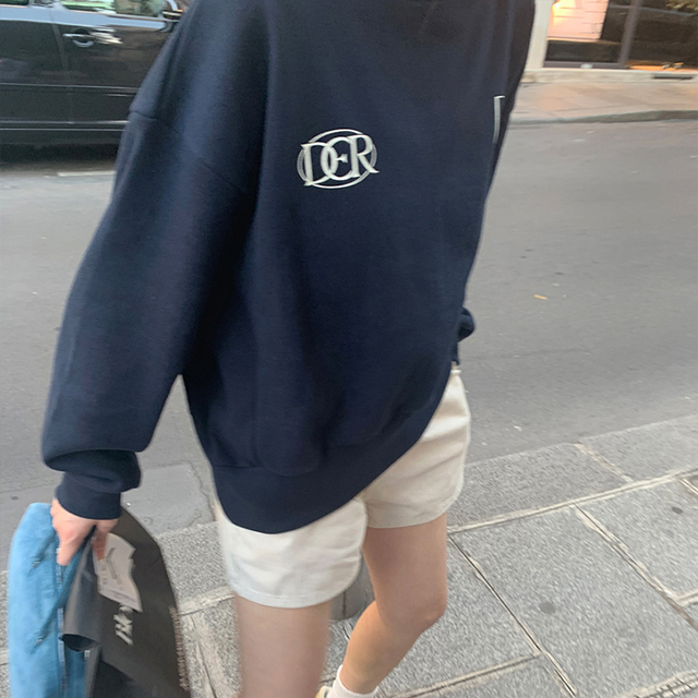 [Dearest] ネイビー レタリング ラウンド ネック スウェットシャツ
