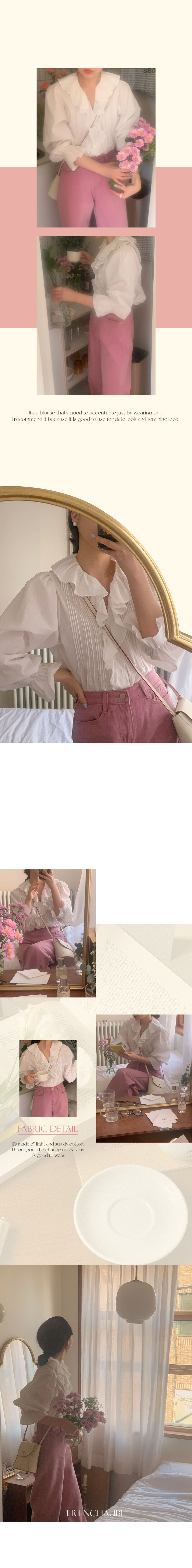 秋のフリルピンタックルーズフィットコットンブラウス(3color)
