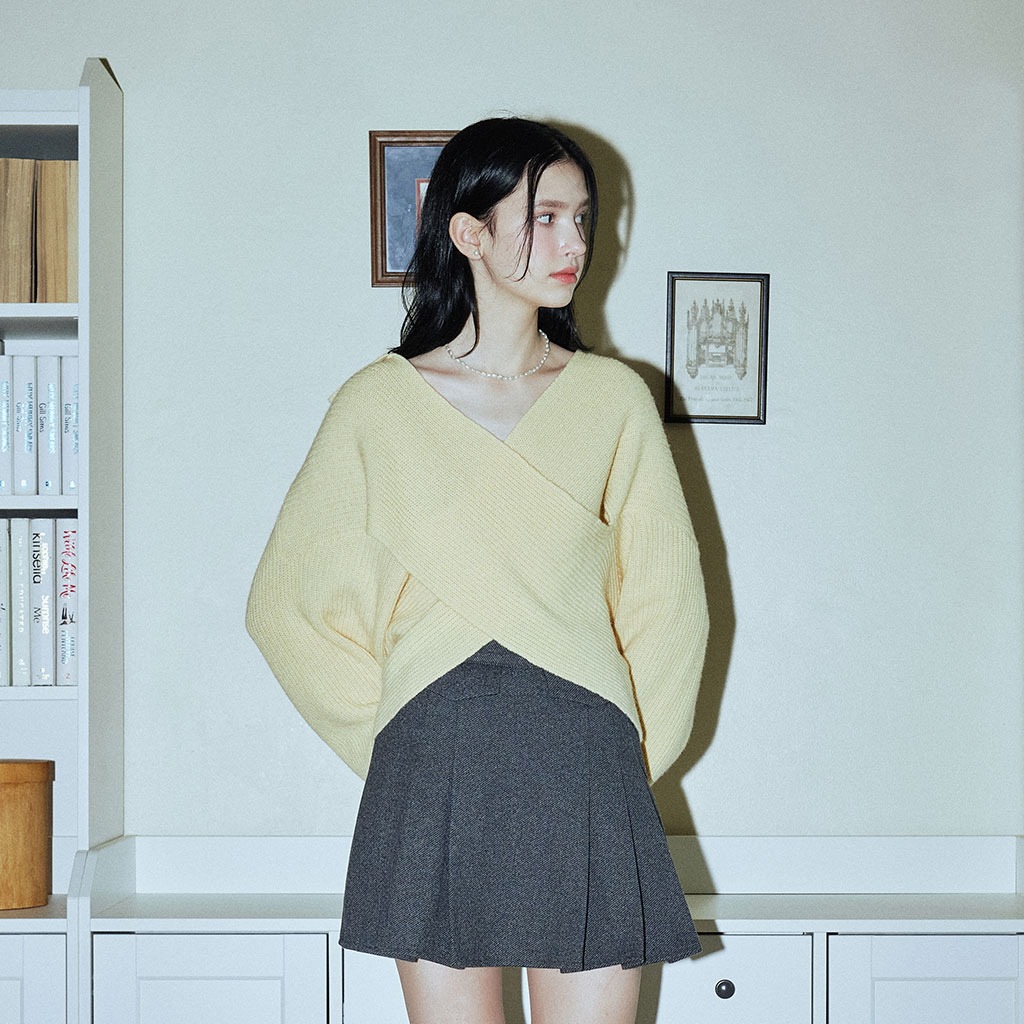 Twisted Flow Wool Collar Sweater ( Yellow )