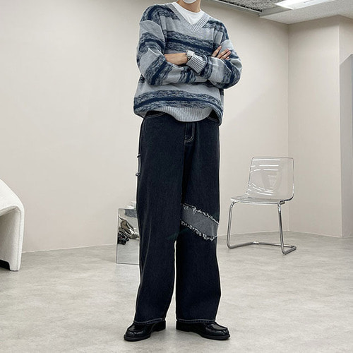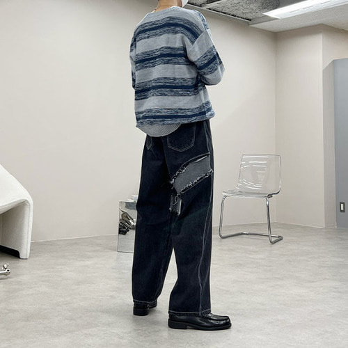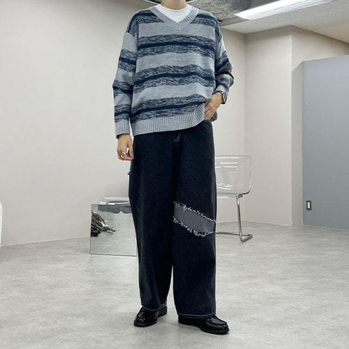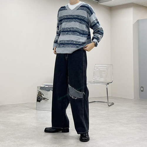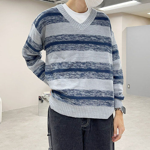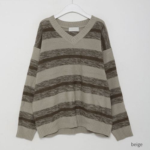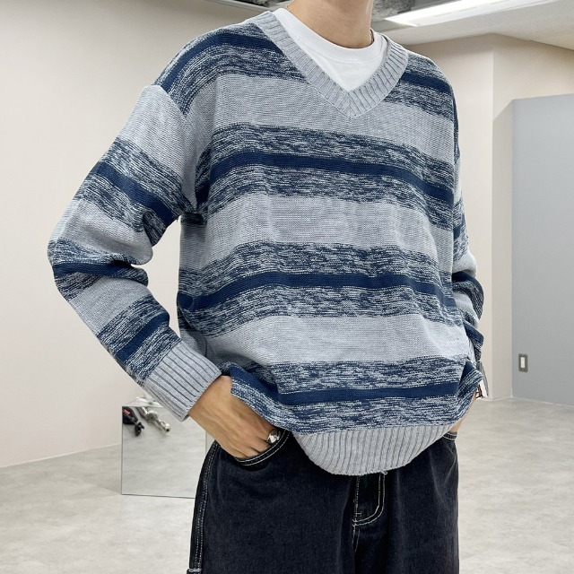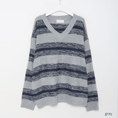 ボーダーVネックニット