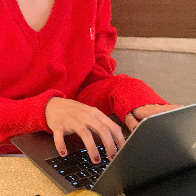 [Dearest] バストロゴウール混紡ニット(レッド)