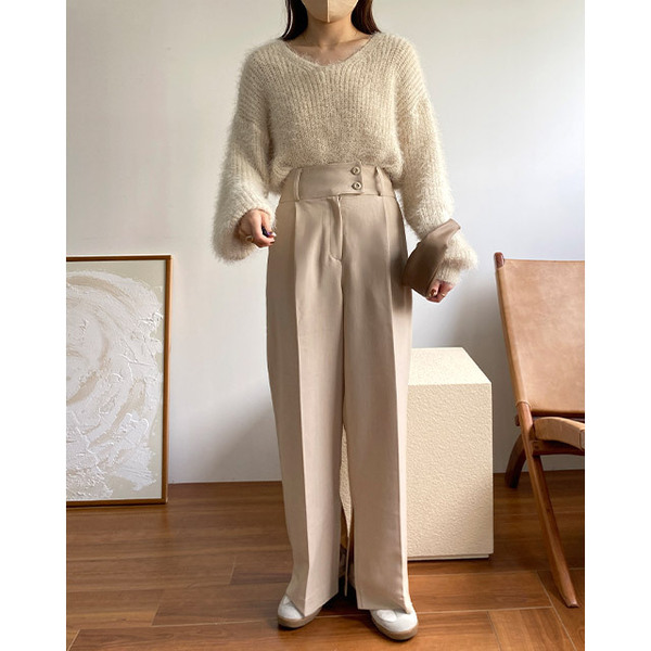 beige- polyester 72% + rayon 18% + wool5% + span5%" - サイズ : S, M