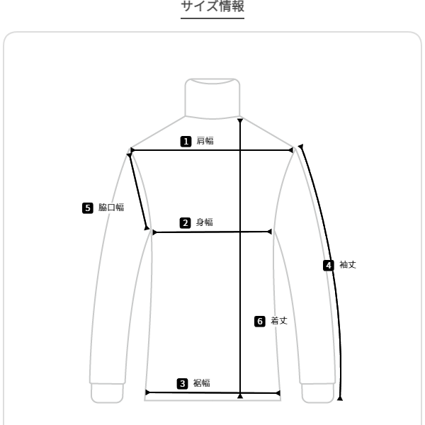 6 着丈 | 64 25 | 66 26 | 68 27 | 70 27.5 |
