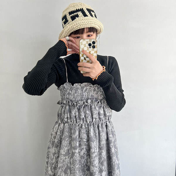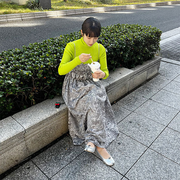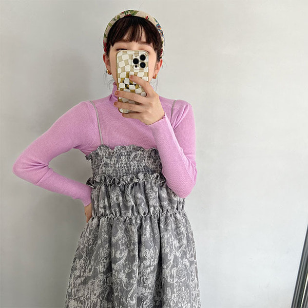 (ORIGINAL) ジャガード シャーリングチューブドレス