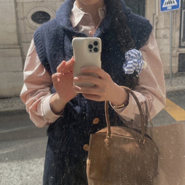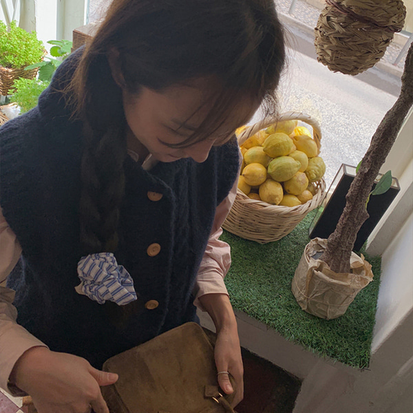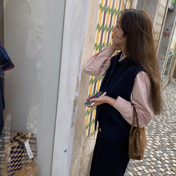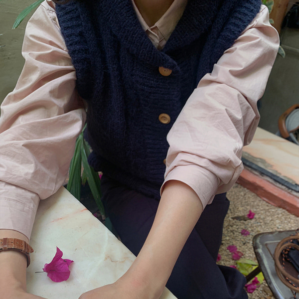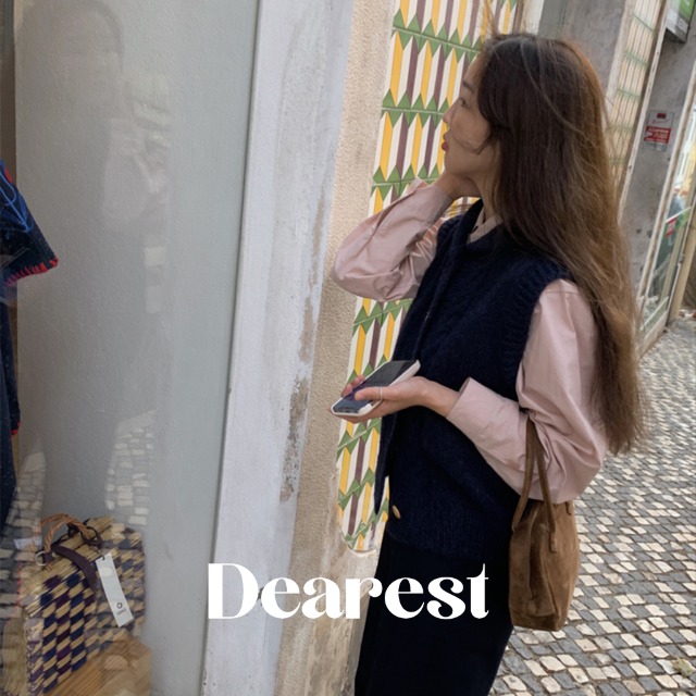 [Dearest] ショールカラーフロントボタンニットベスト(ネイビー)